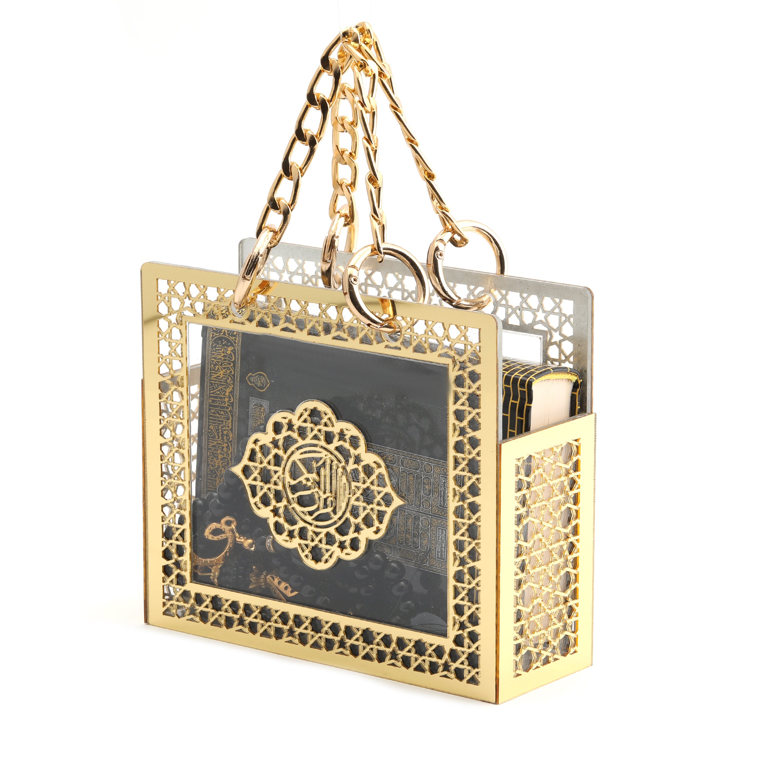 - Çanta kutu içerisinde 8x12 Cm Küçük Cep Bilgisayar Hatlı Kuran-ı Kerim, 99 luk 6 ml Vavlı İnce Tesbih ile beraber sunulur.