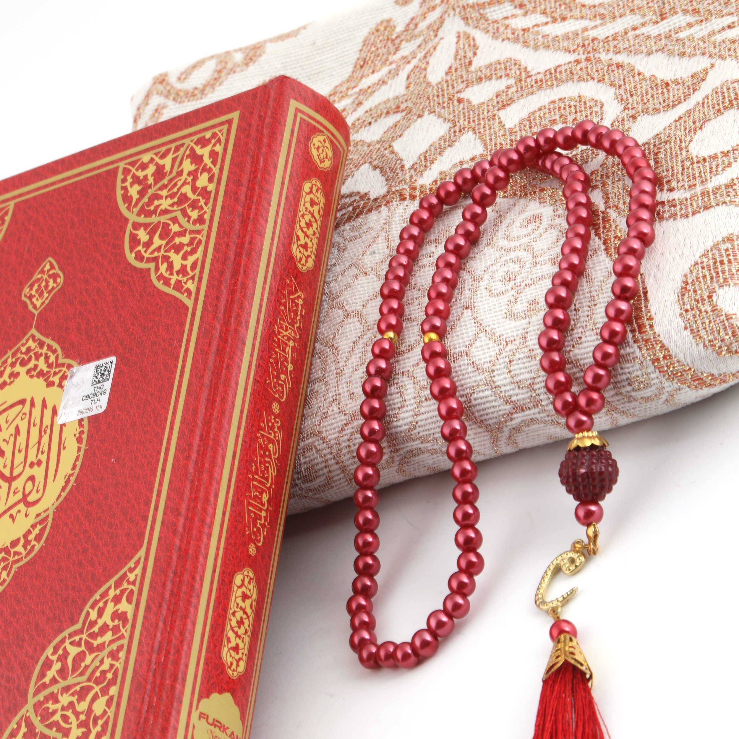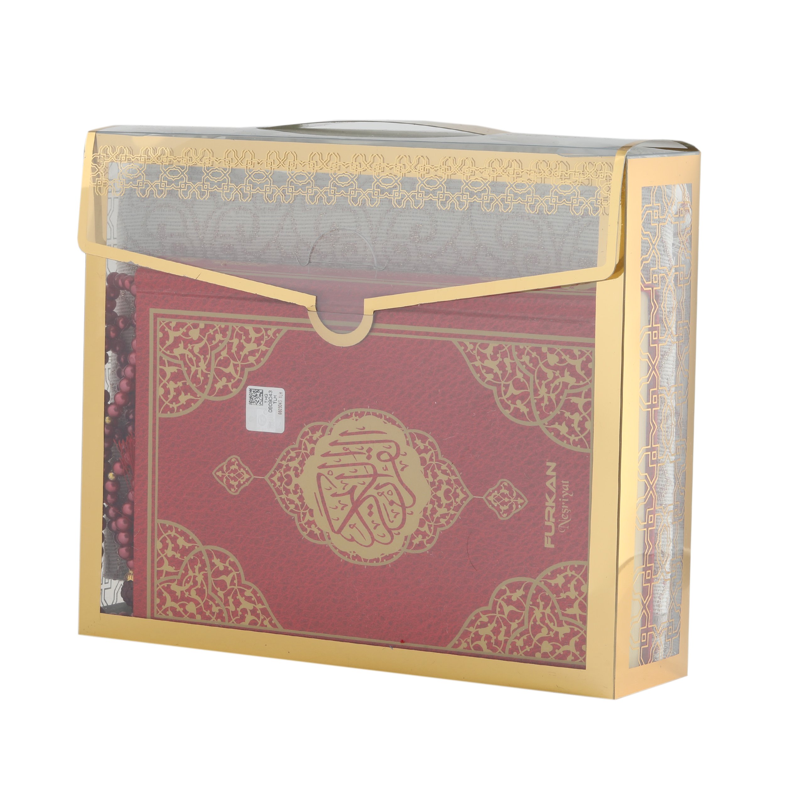 - Asetat kutu içerisinde 14x20 Cm Hafız Boy Ofset Bilgisayar Hatlı Kuran-ı Kerim ,70x110 Cm Simli Tafta Seccade, 99'luk 6 mm Vavlı İnci Tesbih ile beraber sunulur.