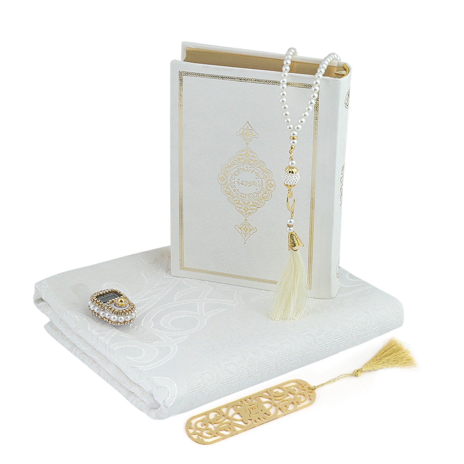 Hediyelik Kuran-ı Kerim Seccade Tesbih Zikirmatik Seti Krem