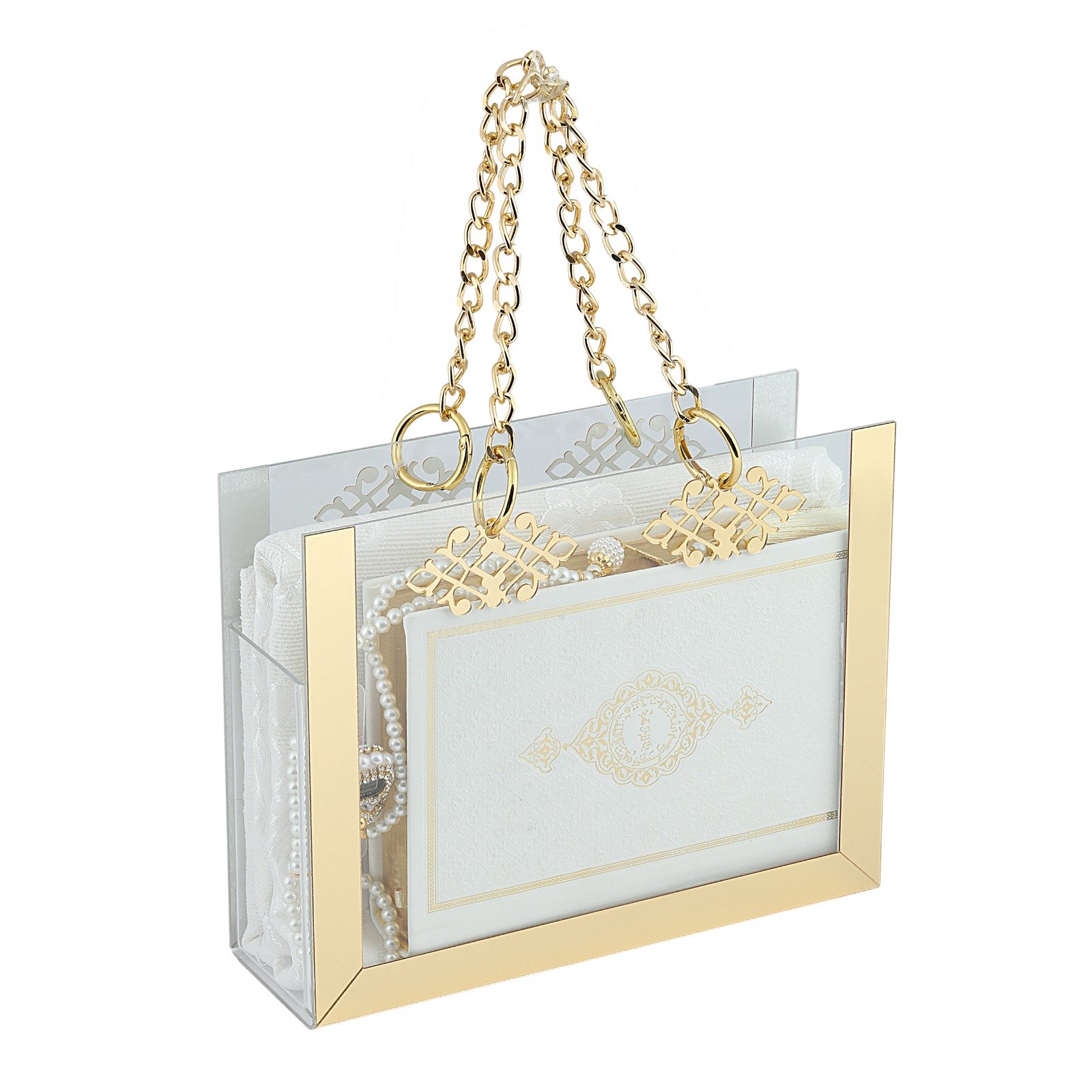 - Çanta kutu içerisinde 99'luk 6 mm Vavlı İnci Tesbih, 17x25 cm Orta Boy Termo Deri Kuran-Kerim,70x110 Pamuk Tafta Seccade,Taşlı Zikiramtik ve Kitap Ayracı ile beraber sunulur.