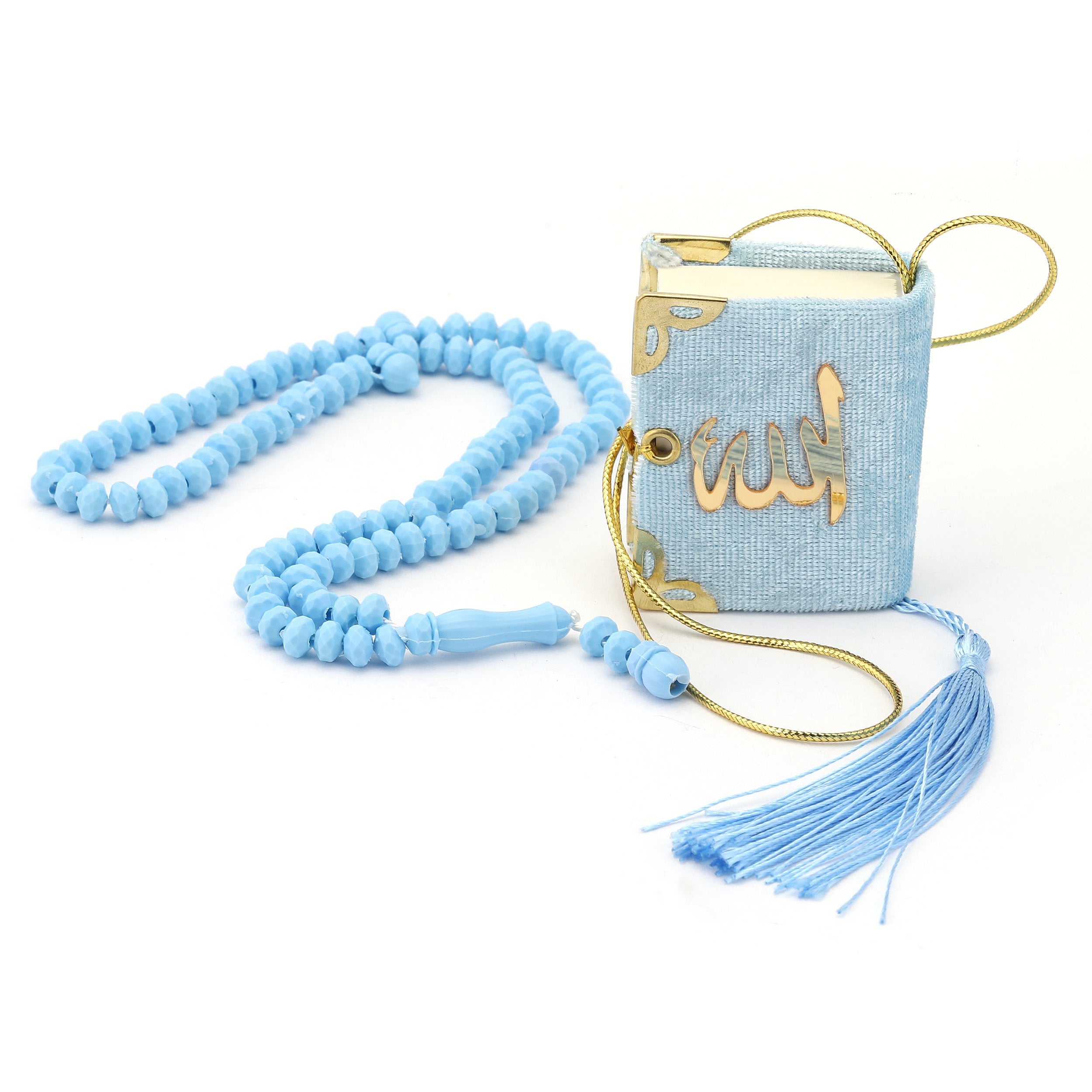 - Asetat kutu içerisinde 5x6 Cm Mini Kuran'ı Kerim Otosüs ve 99'luk 7 mm Kokulu Zümrüt Tesbih ile beraber sunulur.