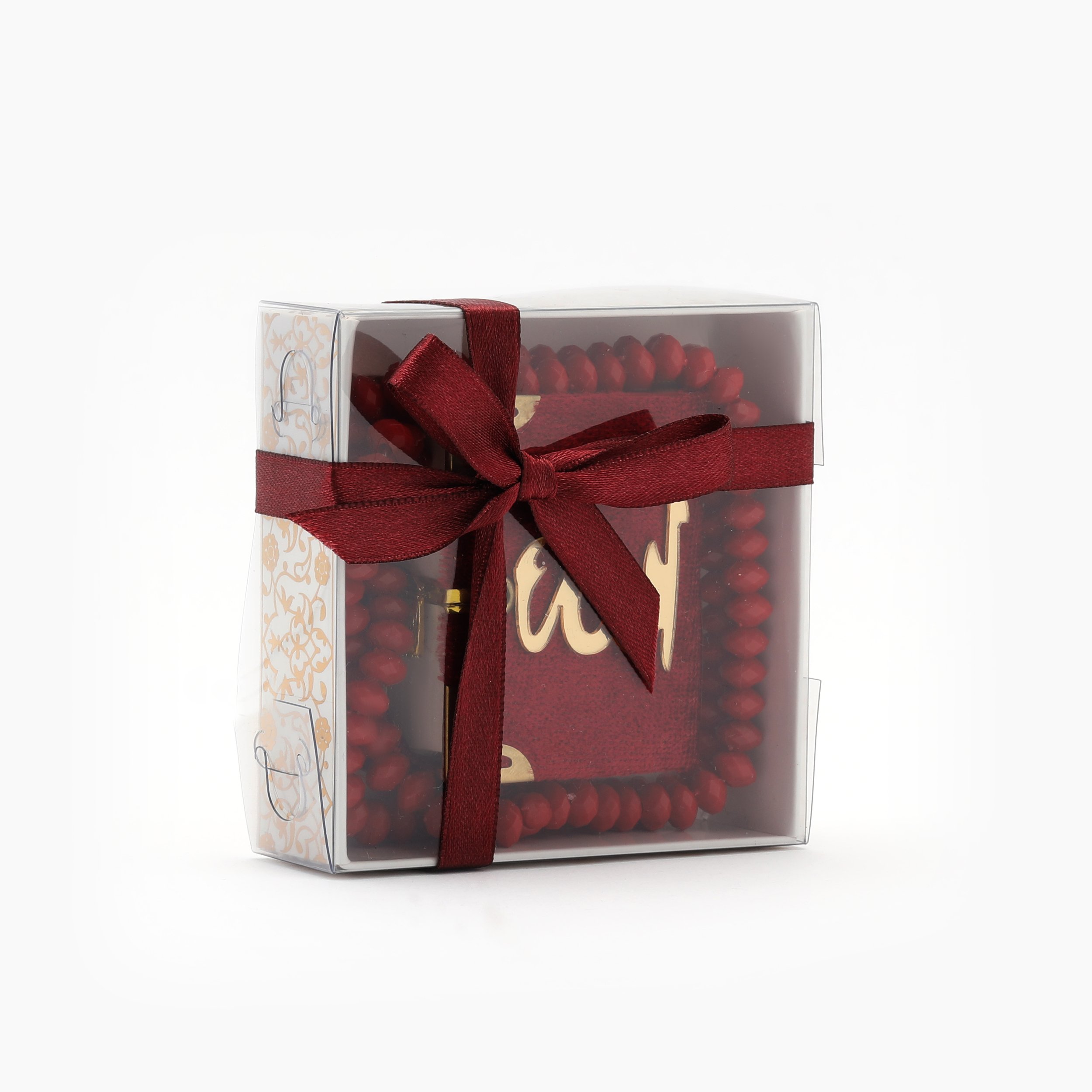 Hediyelik Mini Kuran-ı Kerim Tesbih Seti Bordo
