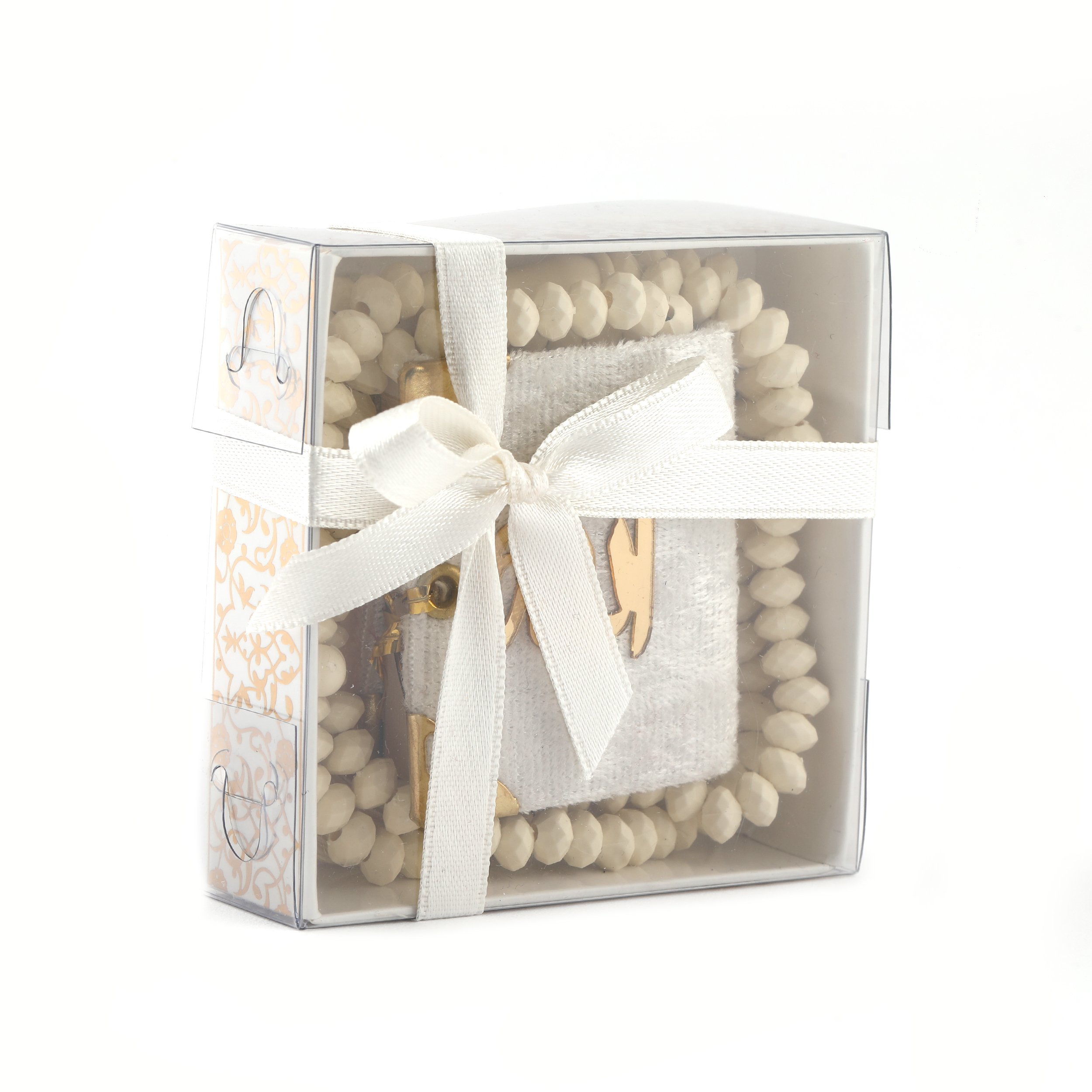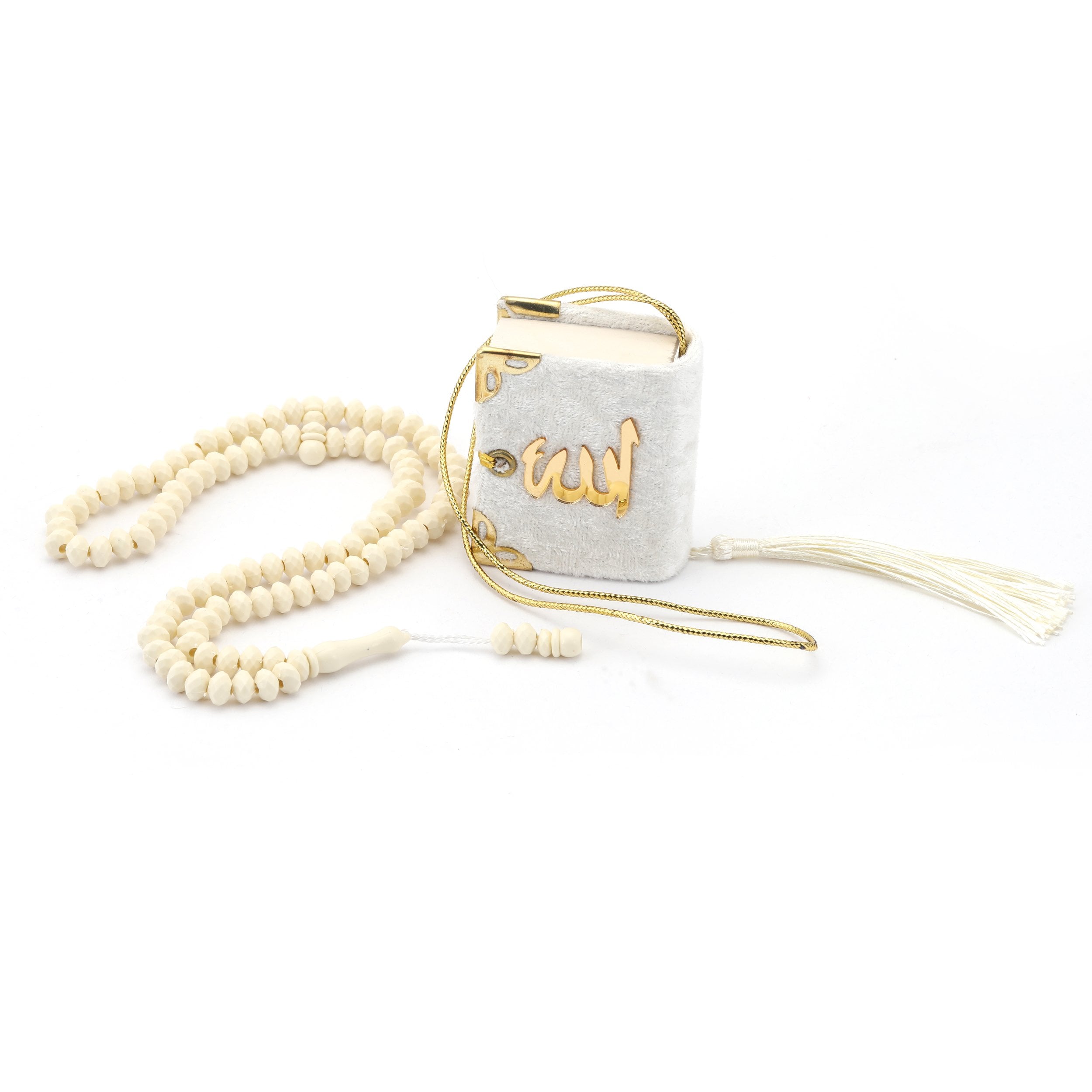 Hediyelik Mini Kuran-ı Kerim Tesbih Seti Krem