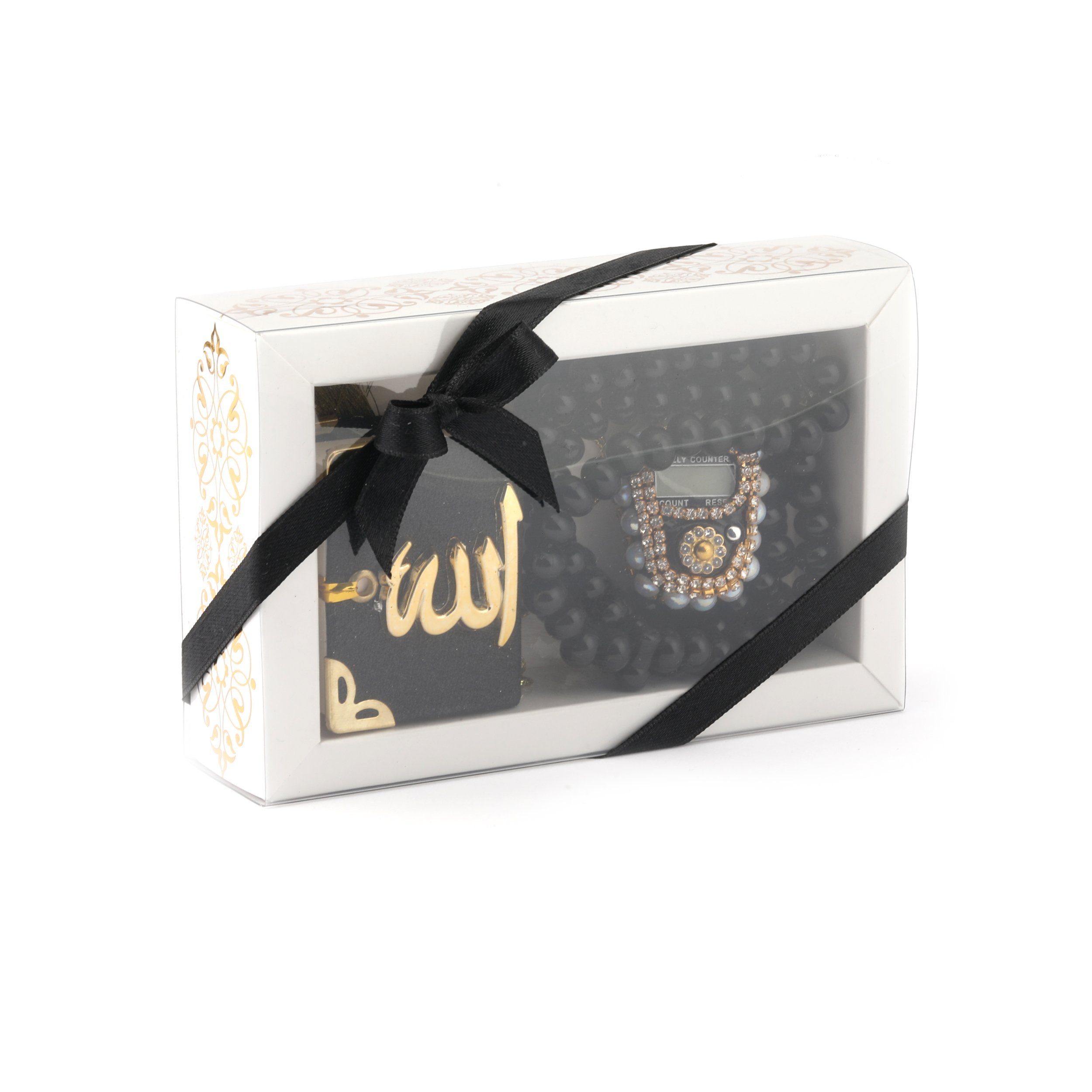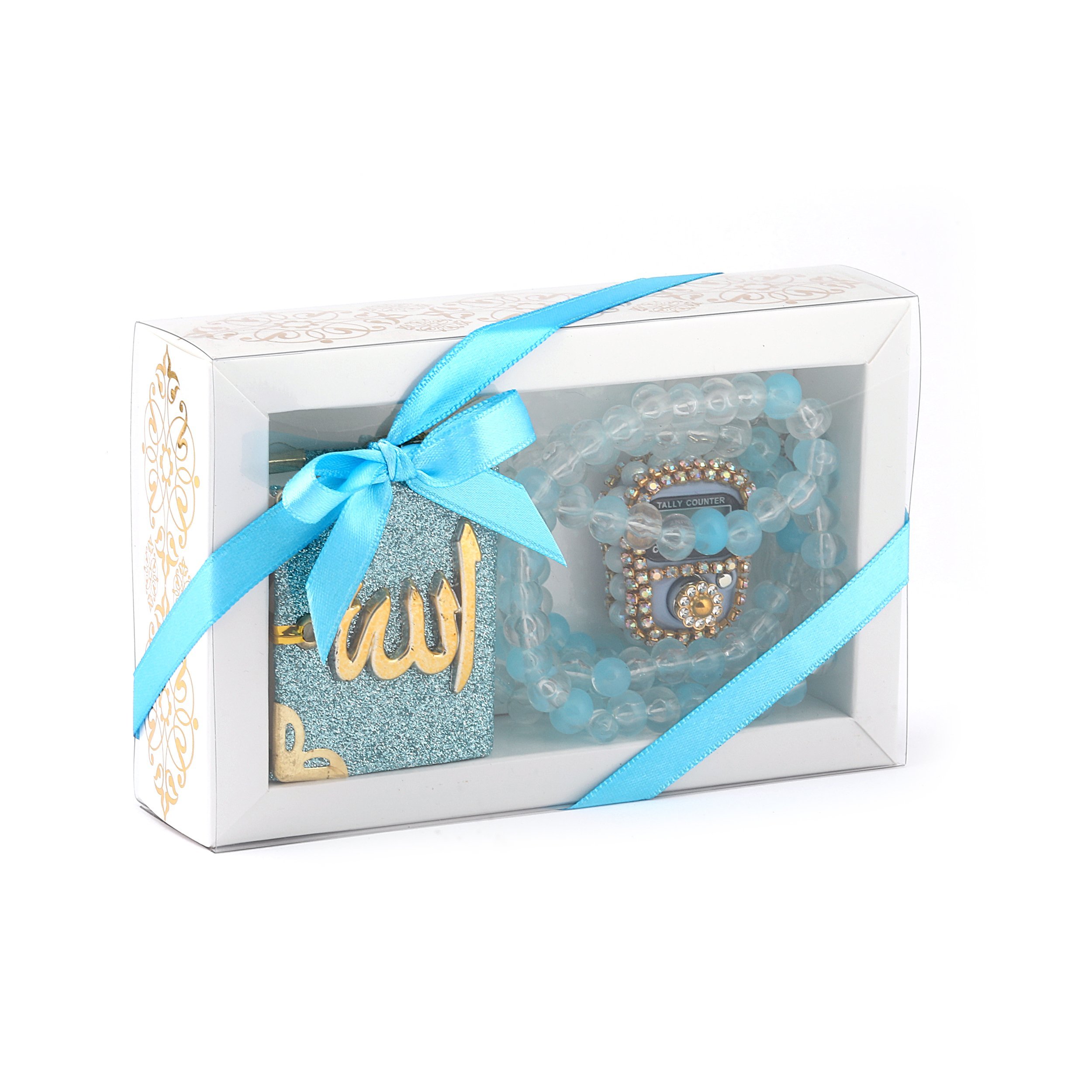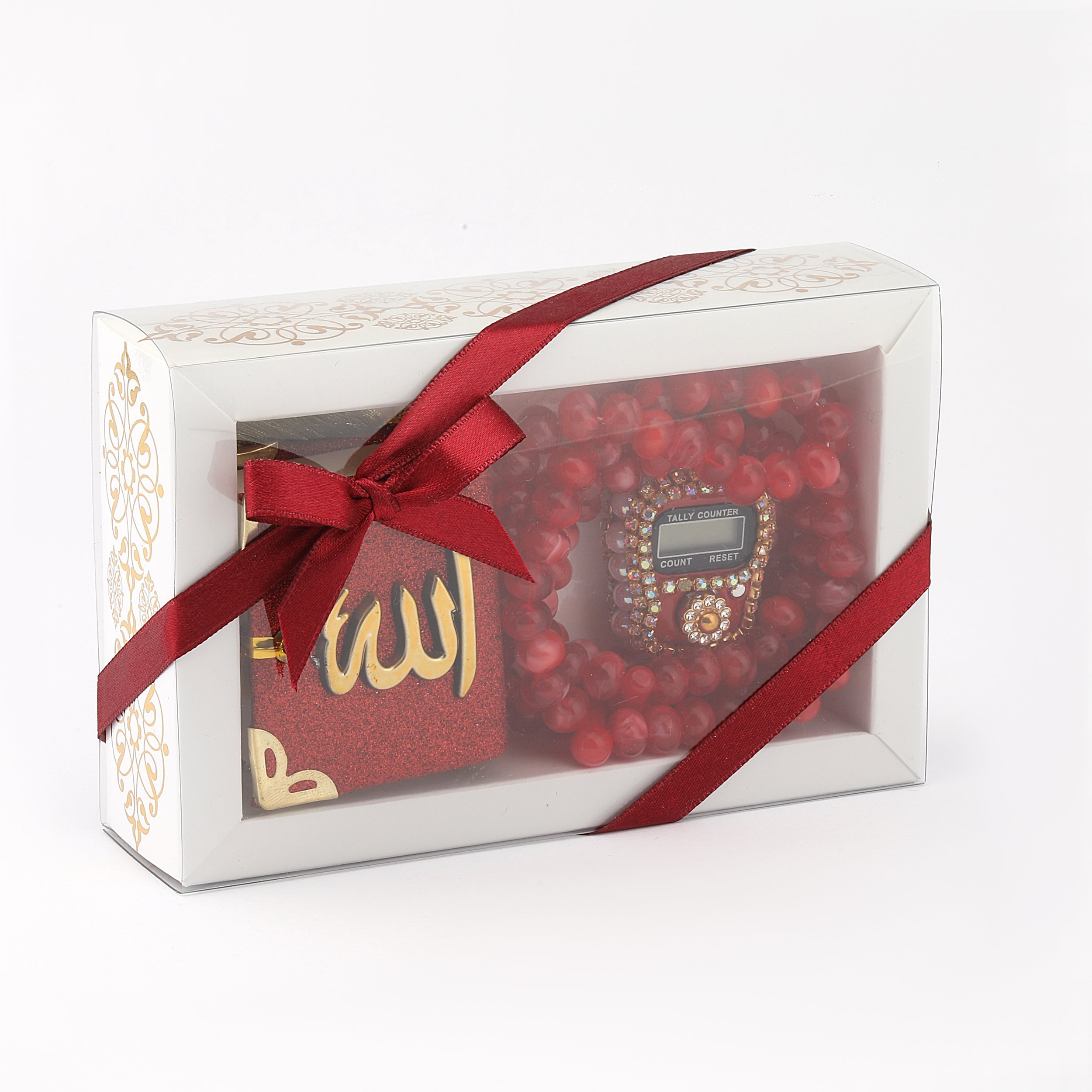 - Asetat kutu içerisinde taşlı zikirmatik, kadife tam mini simli Kuran-ı Kerim otosüs ve 99'luk 10 mm zincirli tesbih ile beraber sunulur.