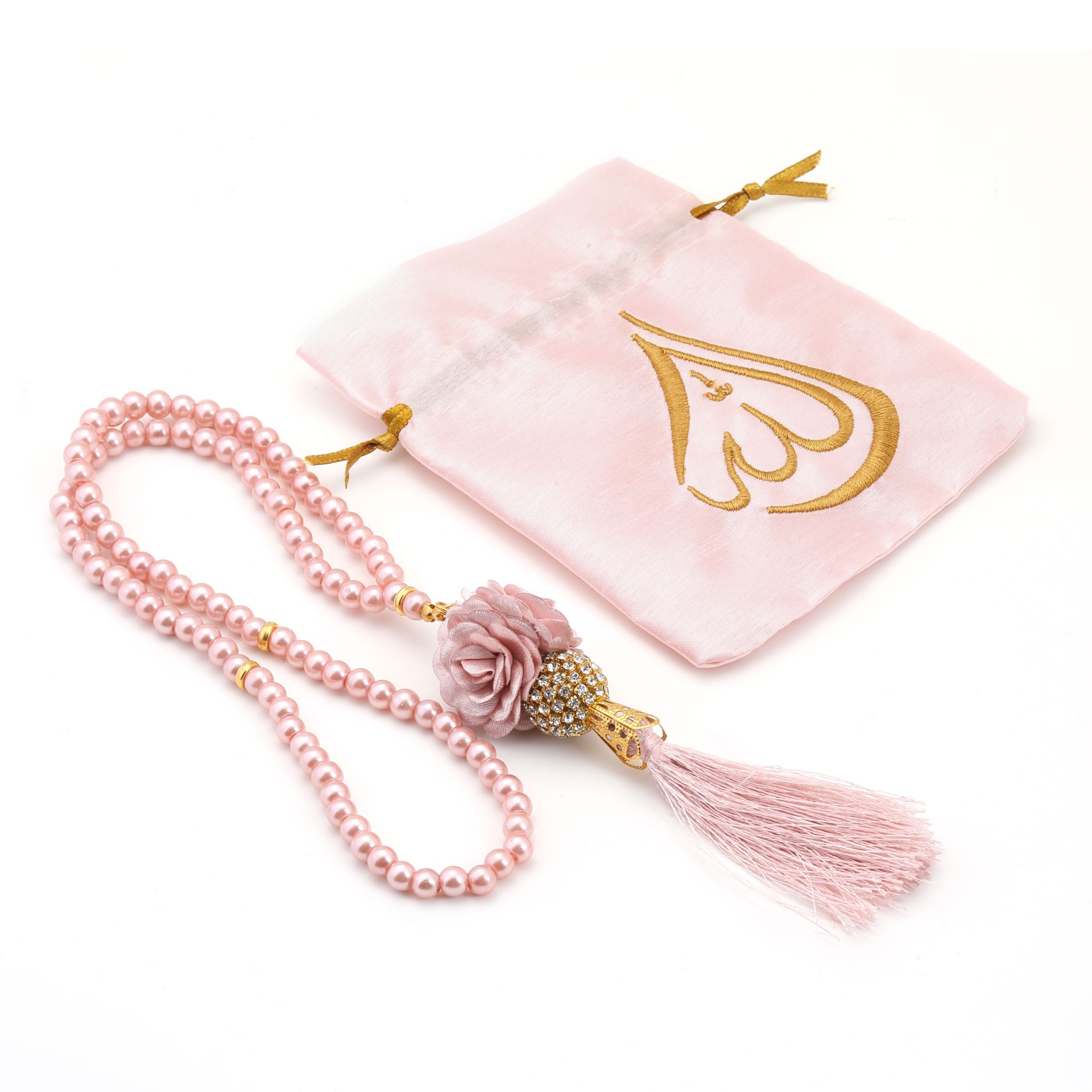 - Asetat kutu içerisinde 99'luk 6 mm Tasarım Güllü Toplu Tesbih ve 10x12 cm Nakışlı Tesbih Kesesi ile beraber sunulur.