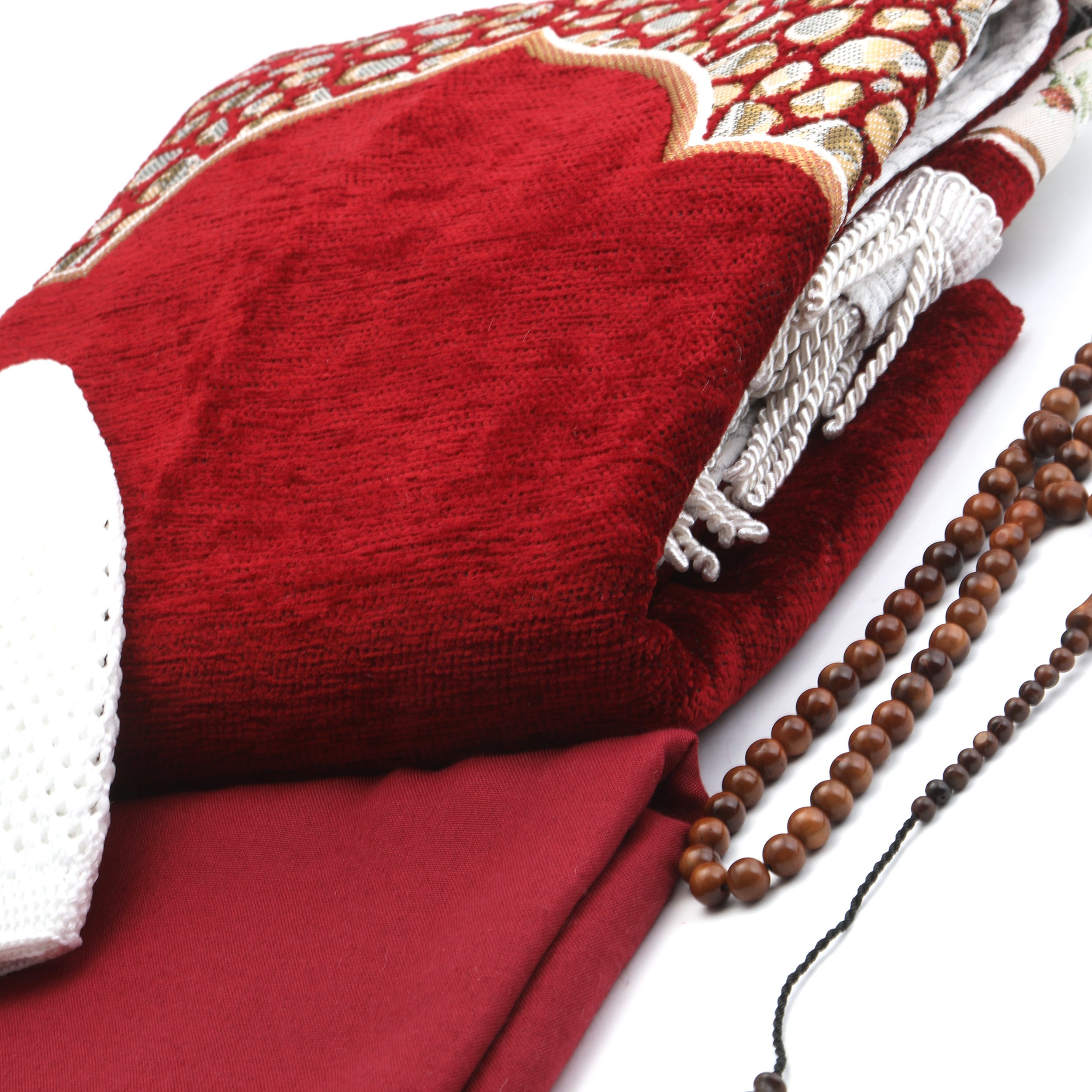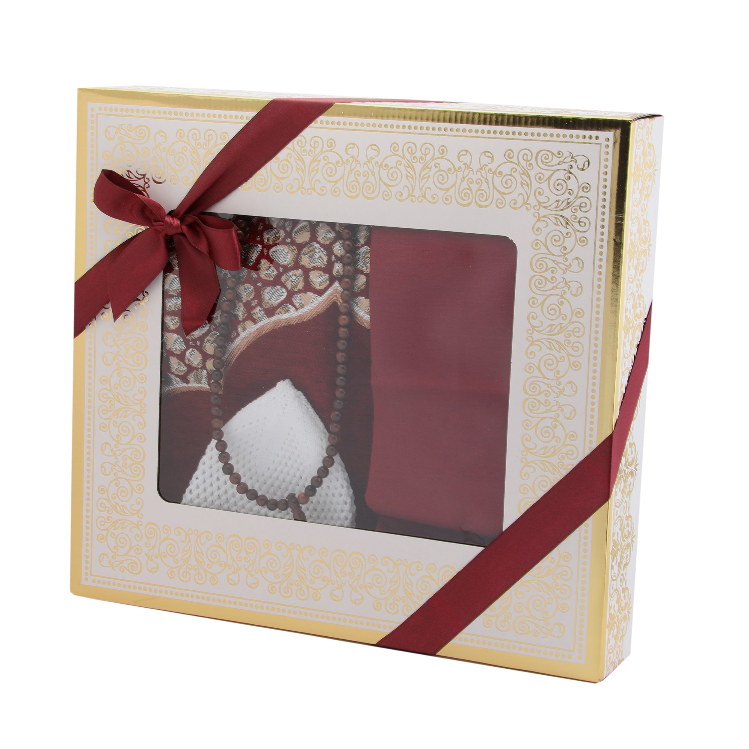 Hediyelik Seccade Eşarp Tesbih Takke Seti Bordo