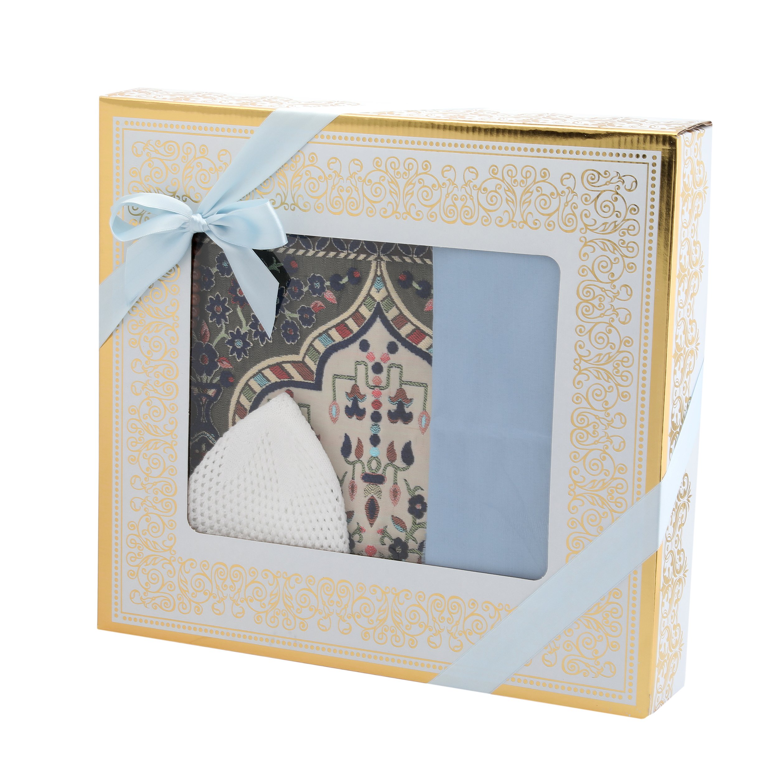 Hediyelik Seccade Eşarp Tesbih Takke Seti Mavi
