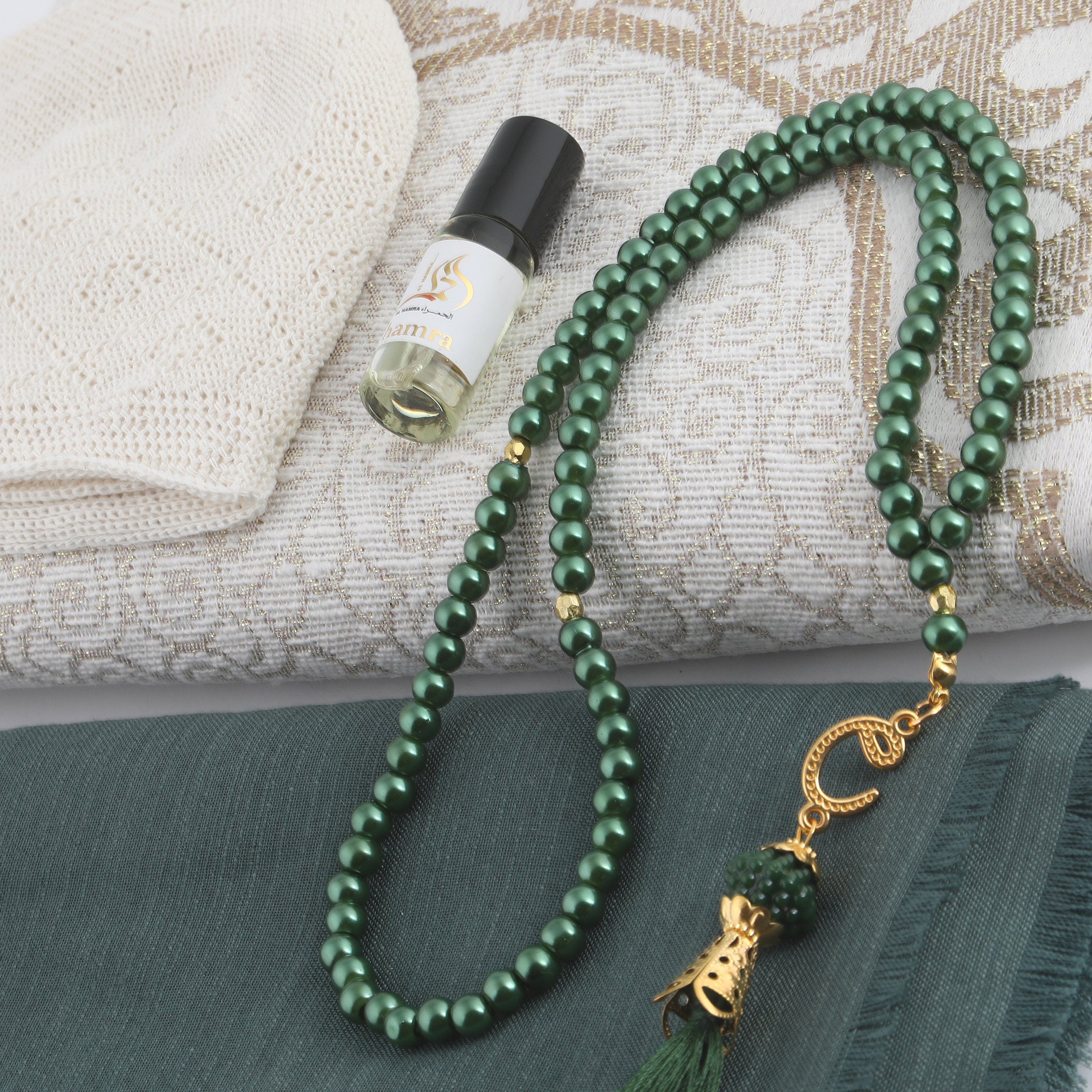 Hediyelik Seccade Eşarp Tesbih Takke Ve Esans Seti Yeşil