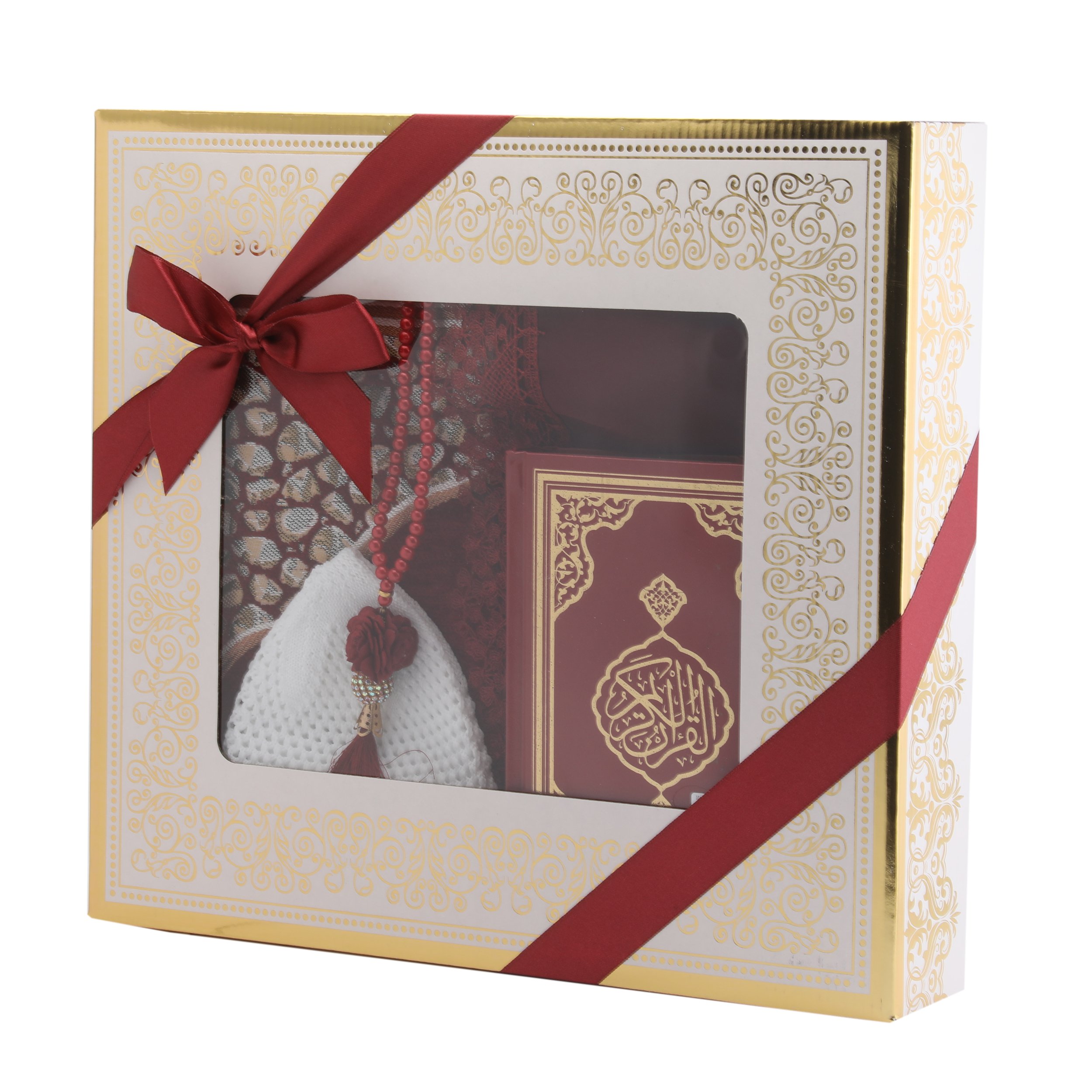 Hediyelik Seccade Kuran-ı Kerim Mevlid Örtüsü Tesbih Takke Seti Bordo