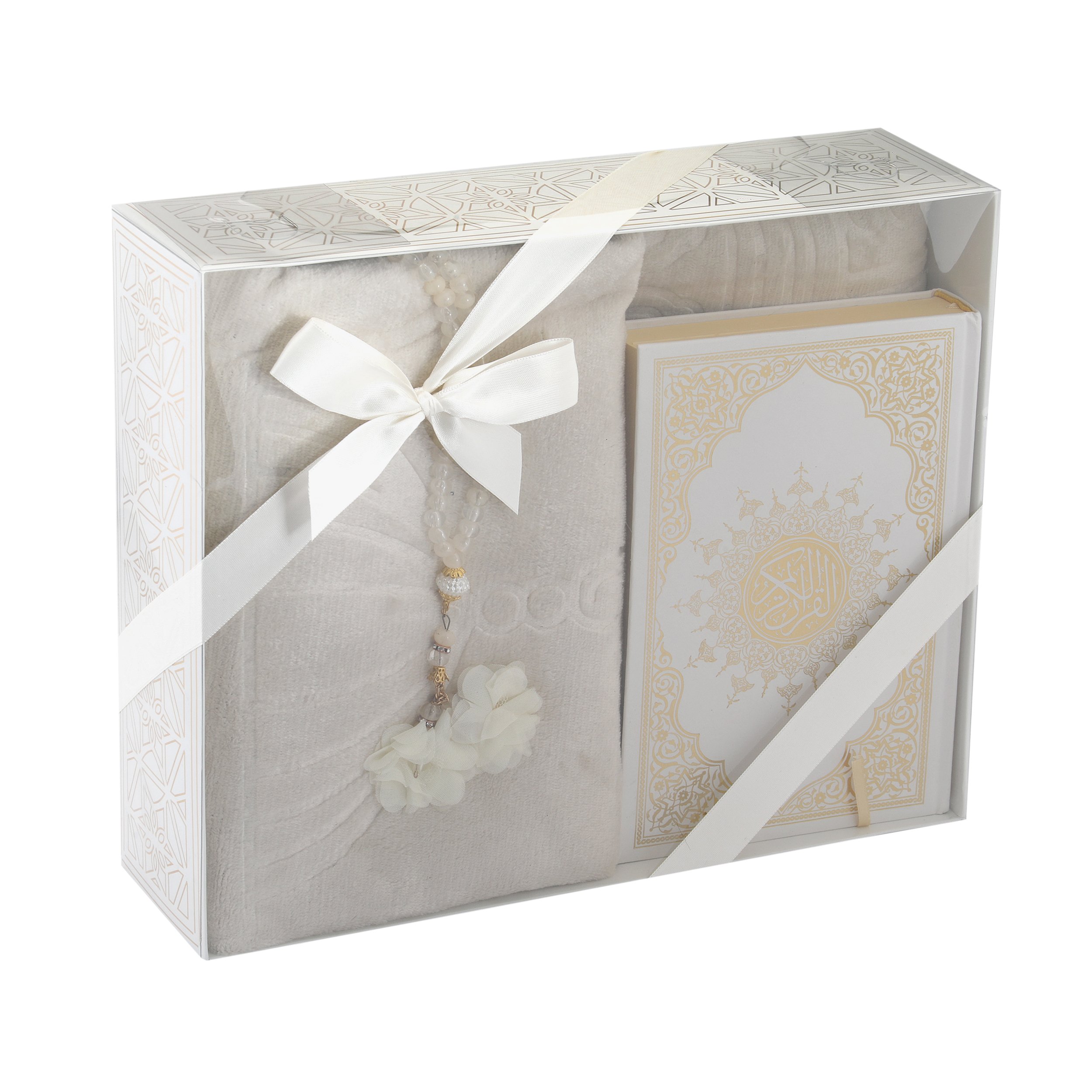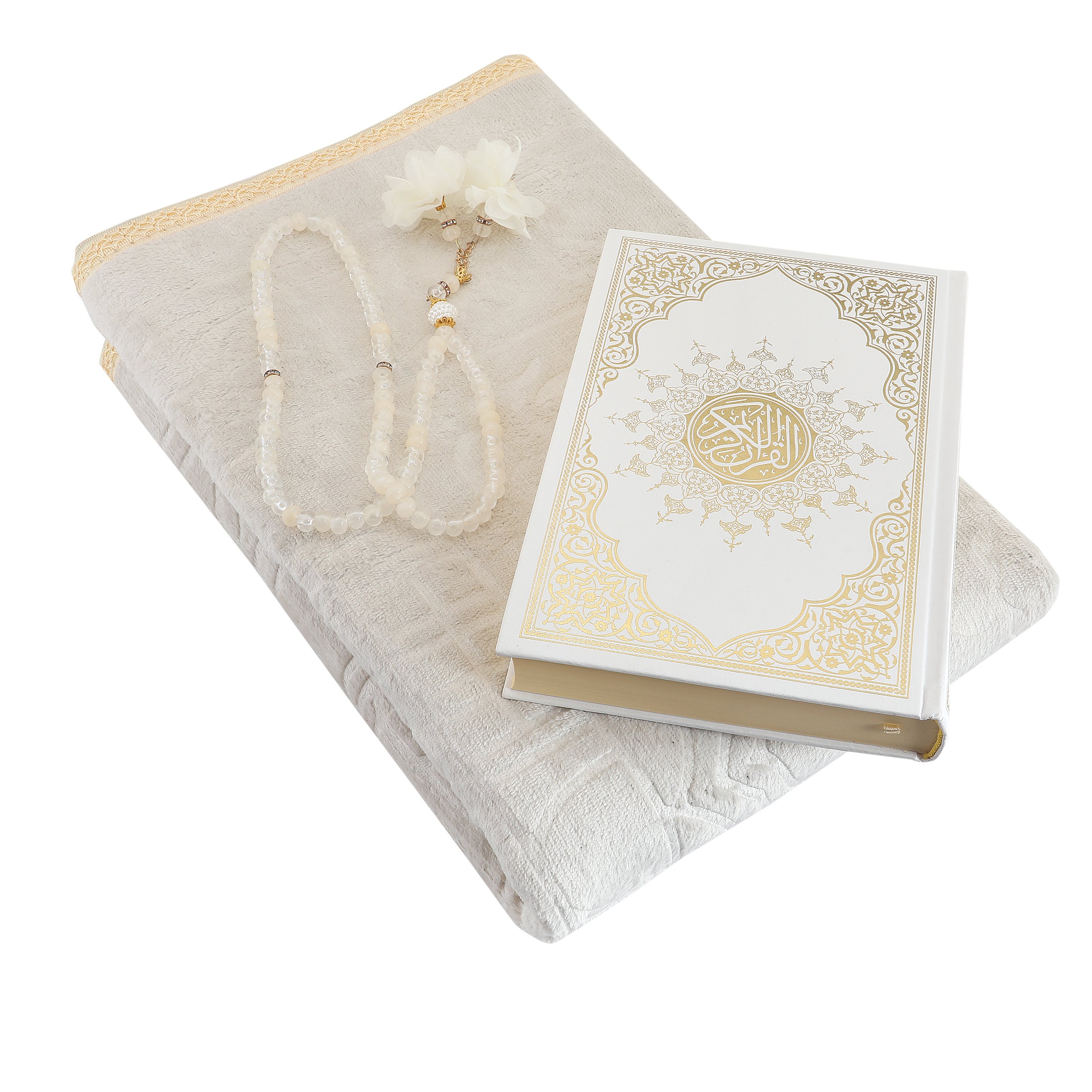 Hediyelik Seccade Kuran-ı Kerim Tesbih Seti Krem
