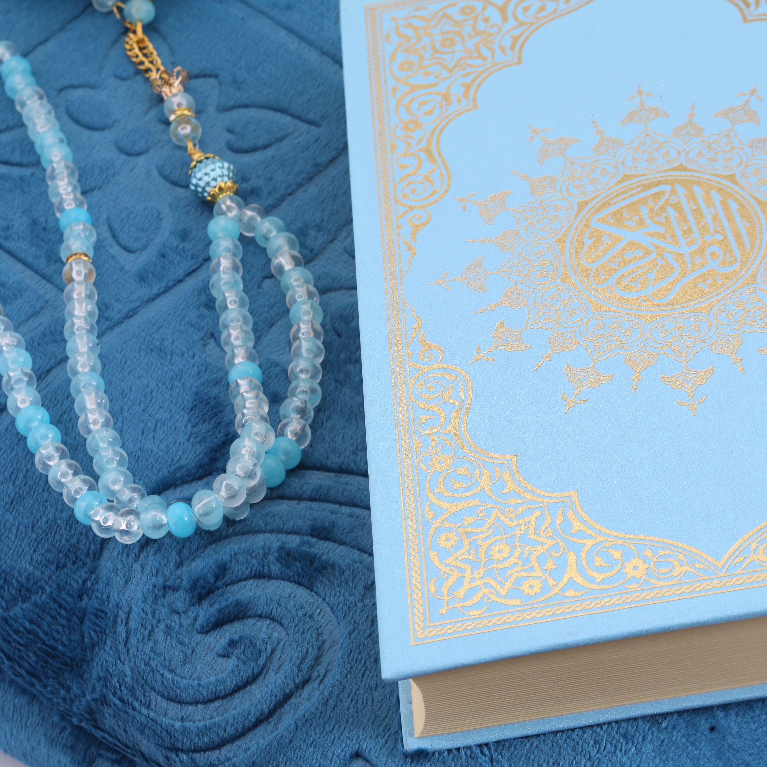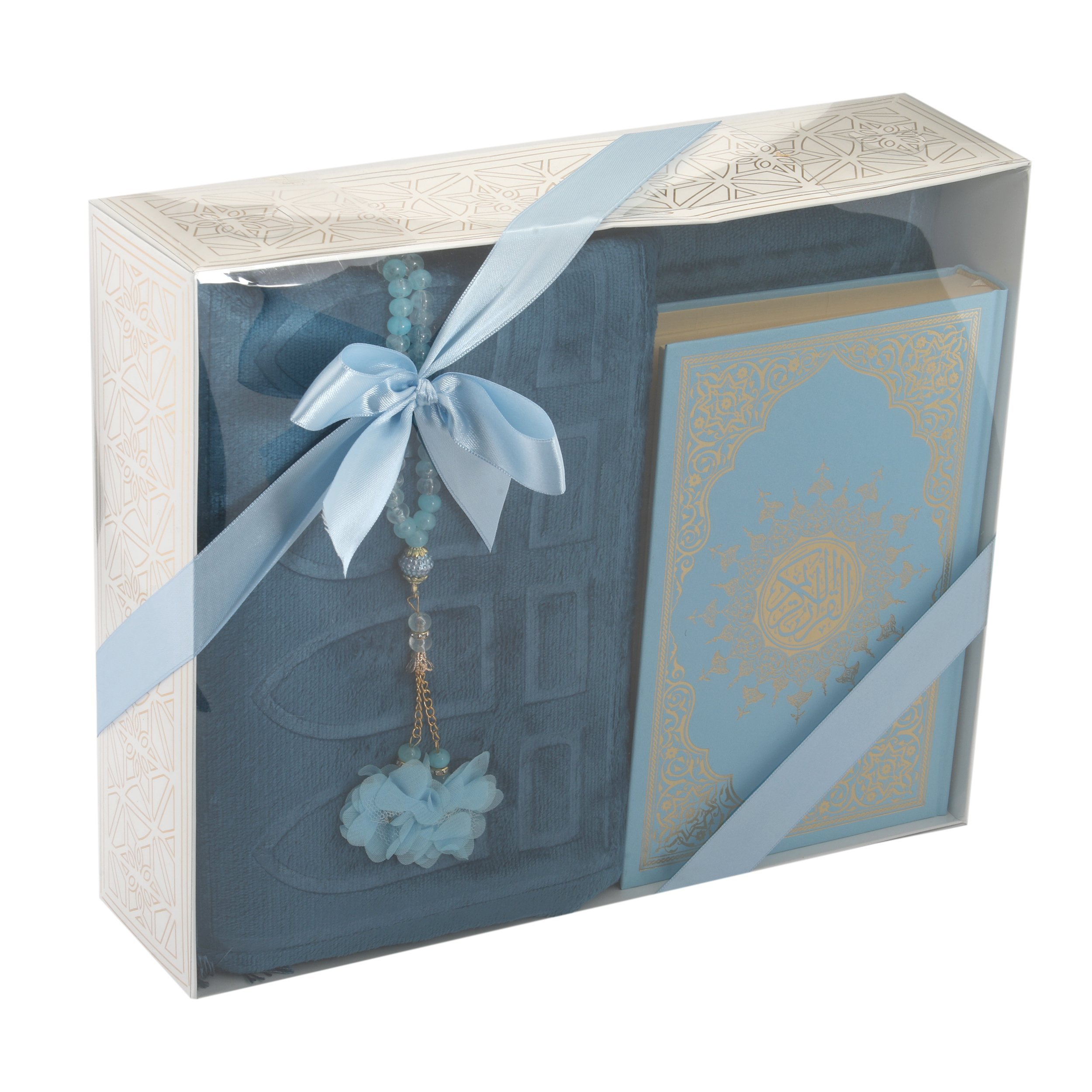 Hediyelik Seccade Kuran-ı Kerim Tesbih Seti Mavi