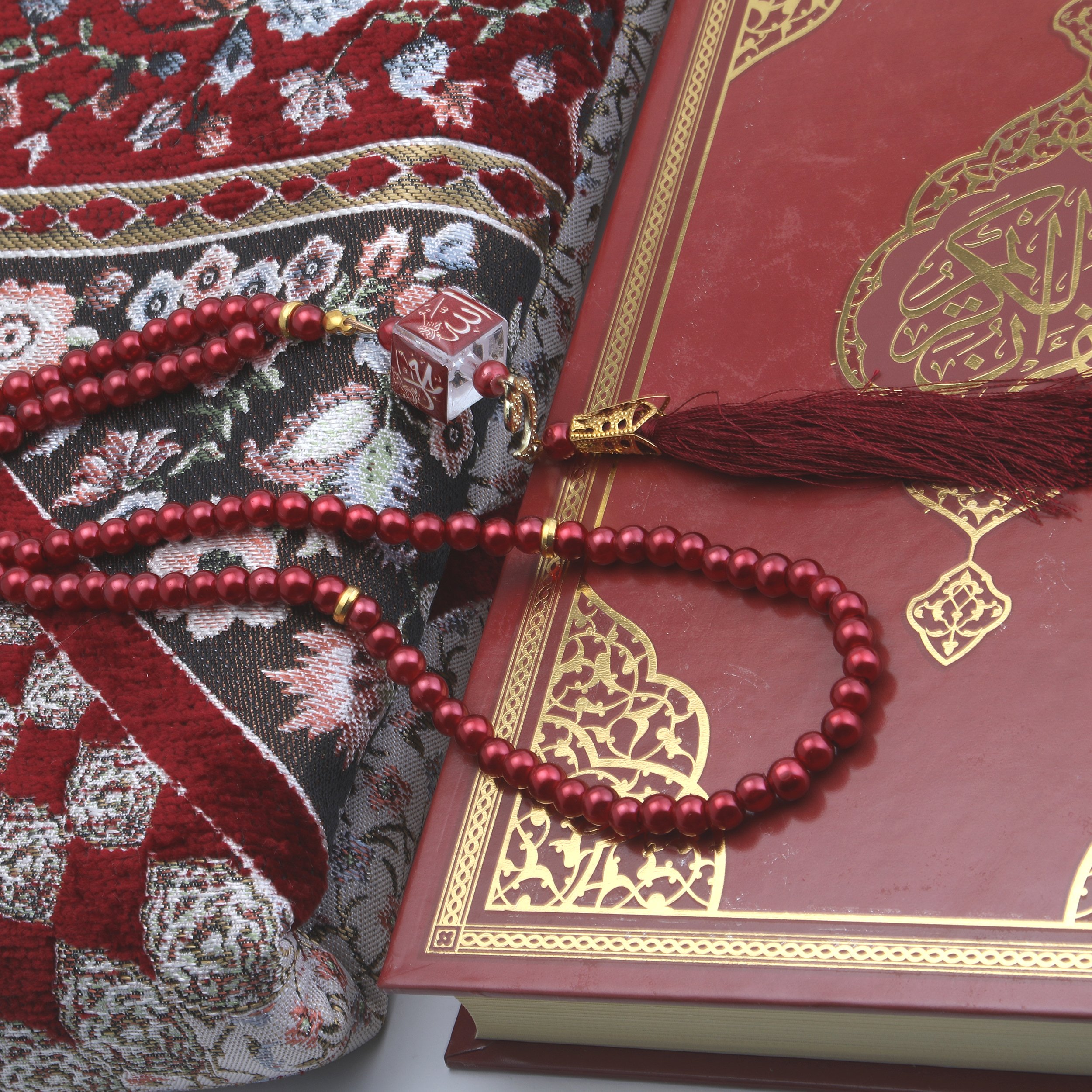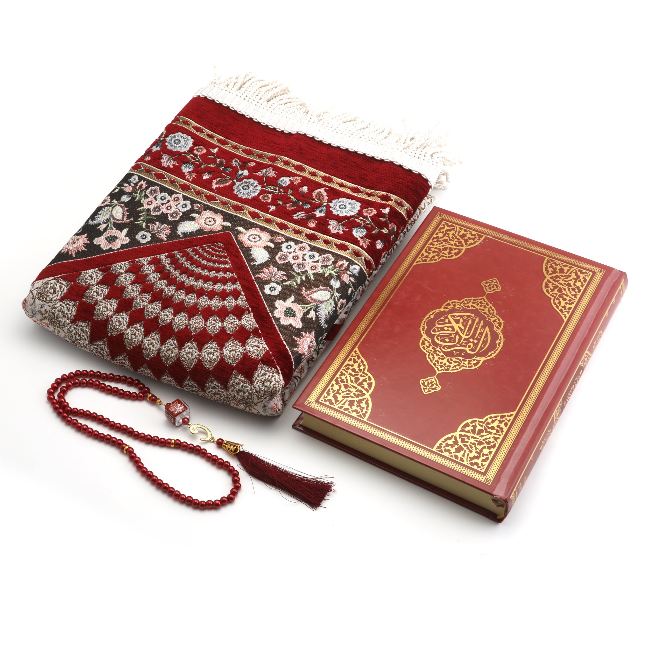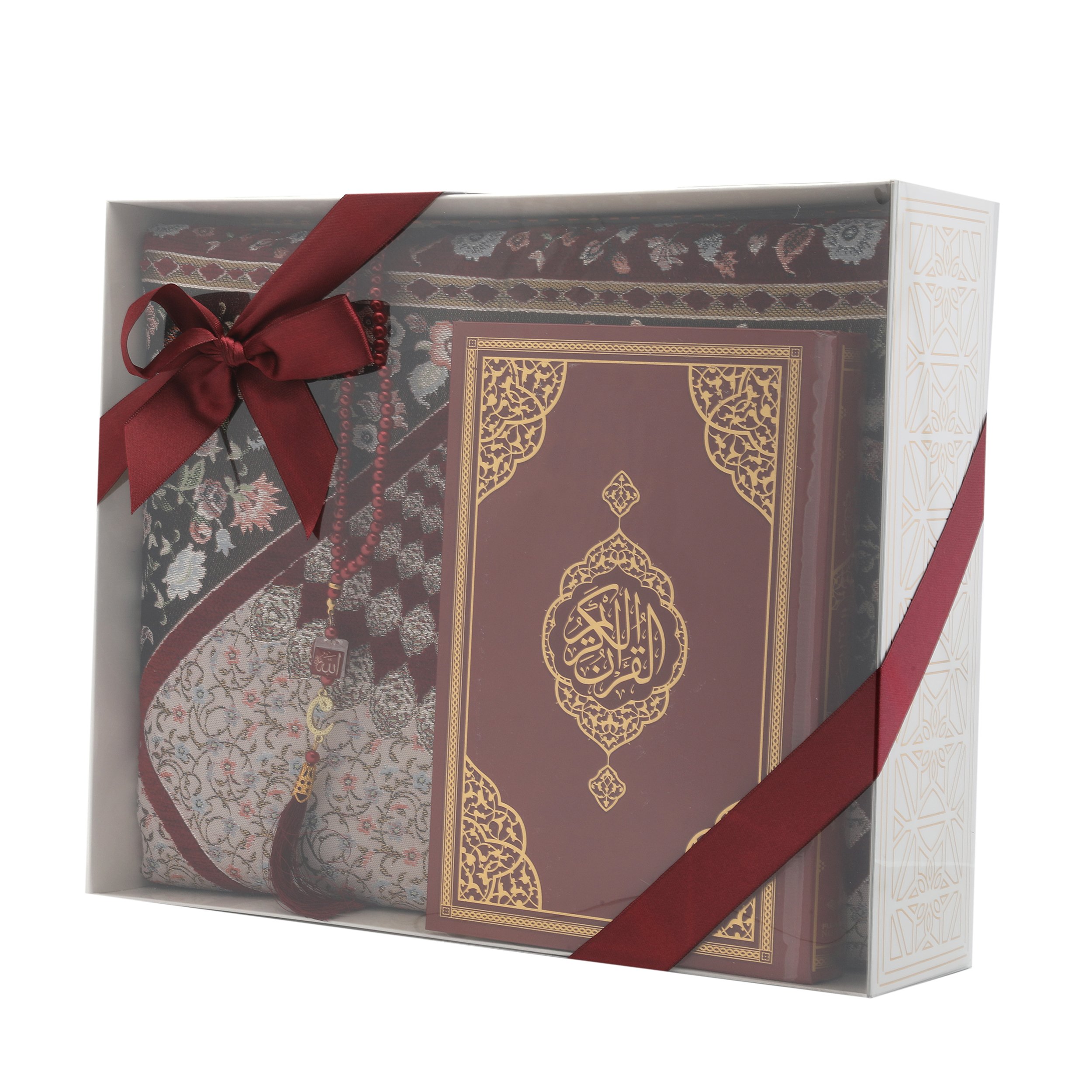 Hediyelik Seccade Kuran-ı Kerim Tesbih Seti Bordo