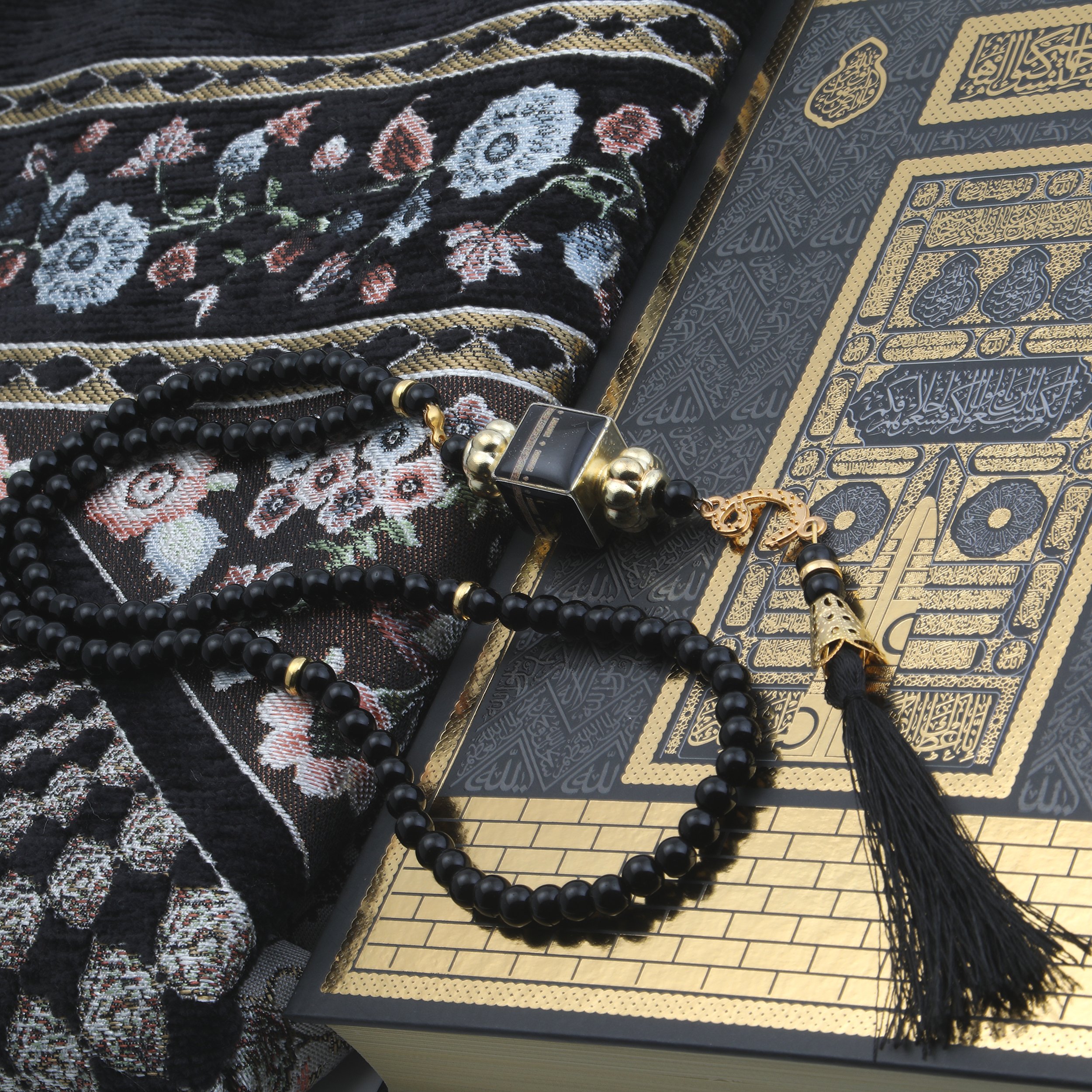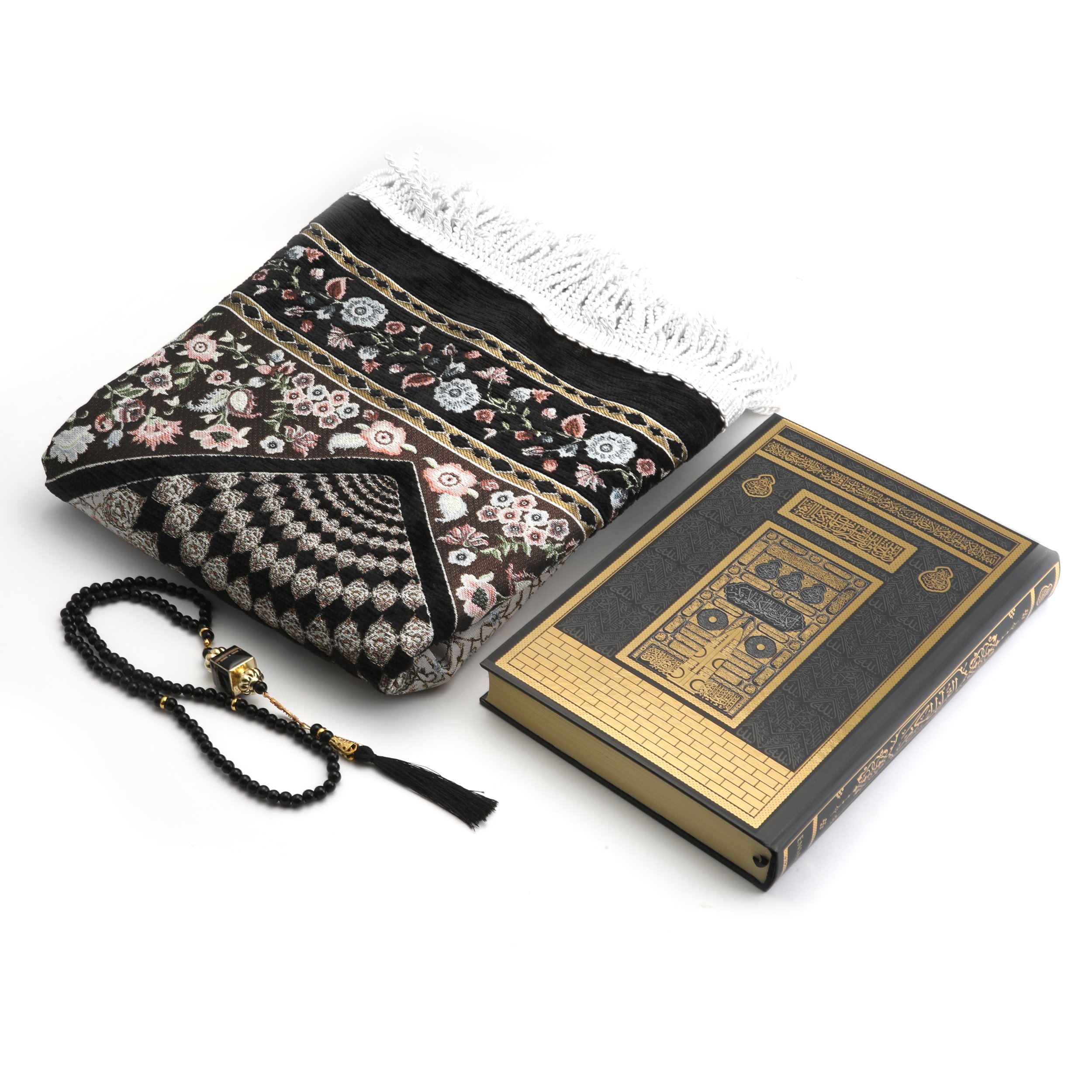 Hediyelik Seccade Kuran-ı Kerim Tesbih Seti Siyah