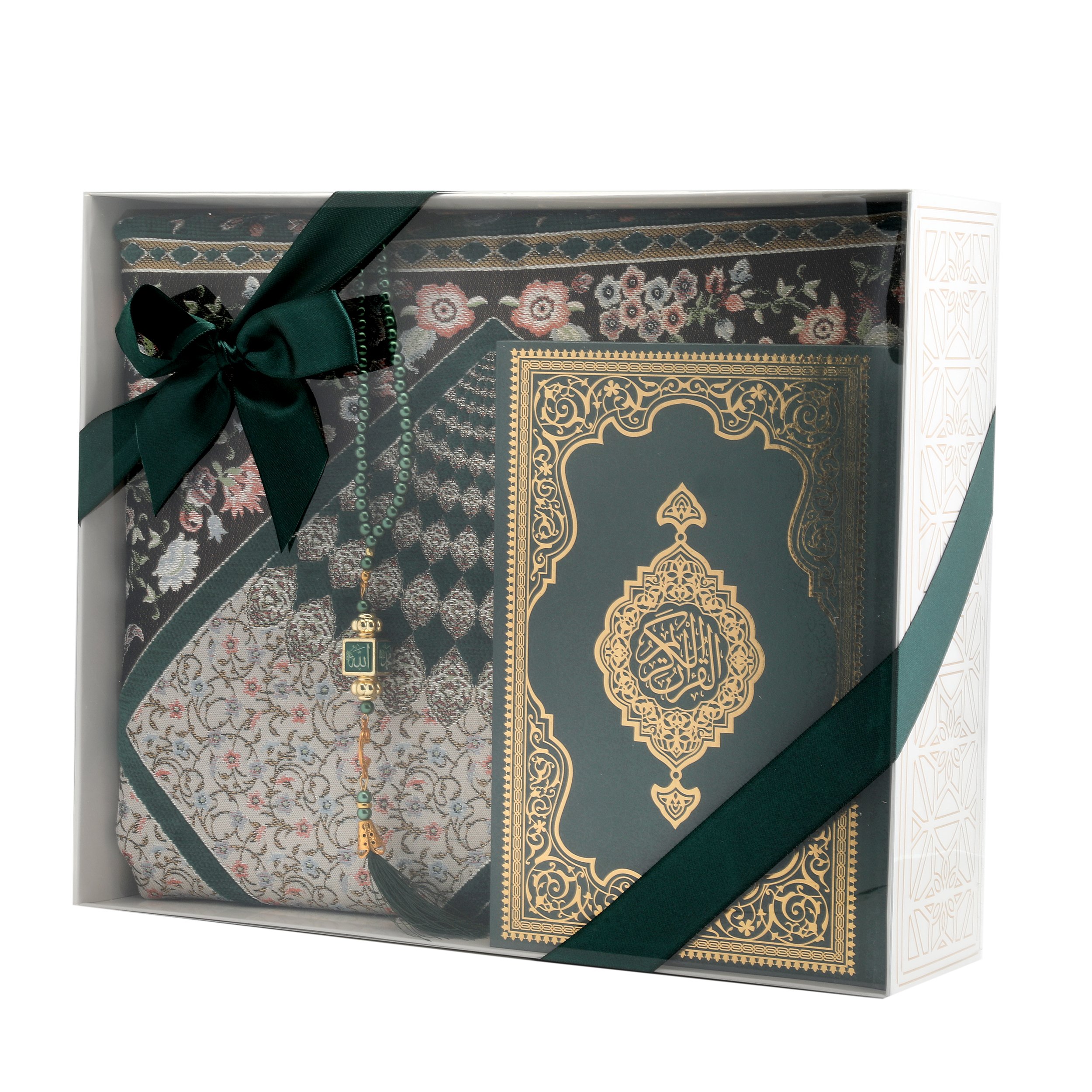 Hediyelik Seccade Kuran-ı Kerim Tesbih Seti Yeşil