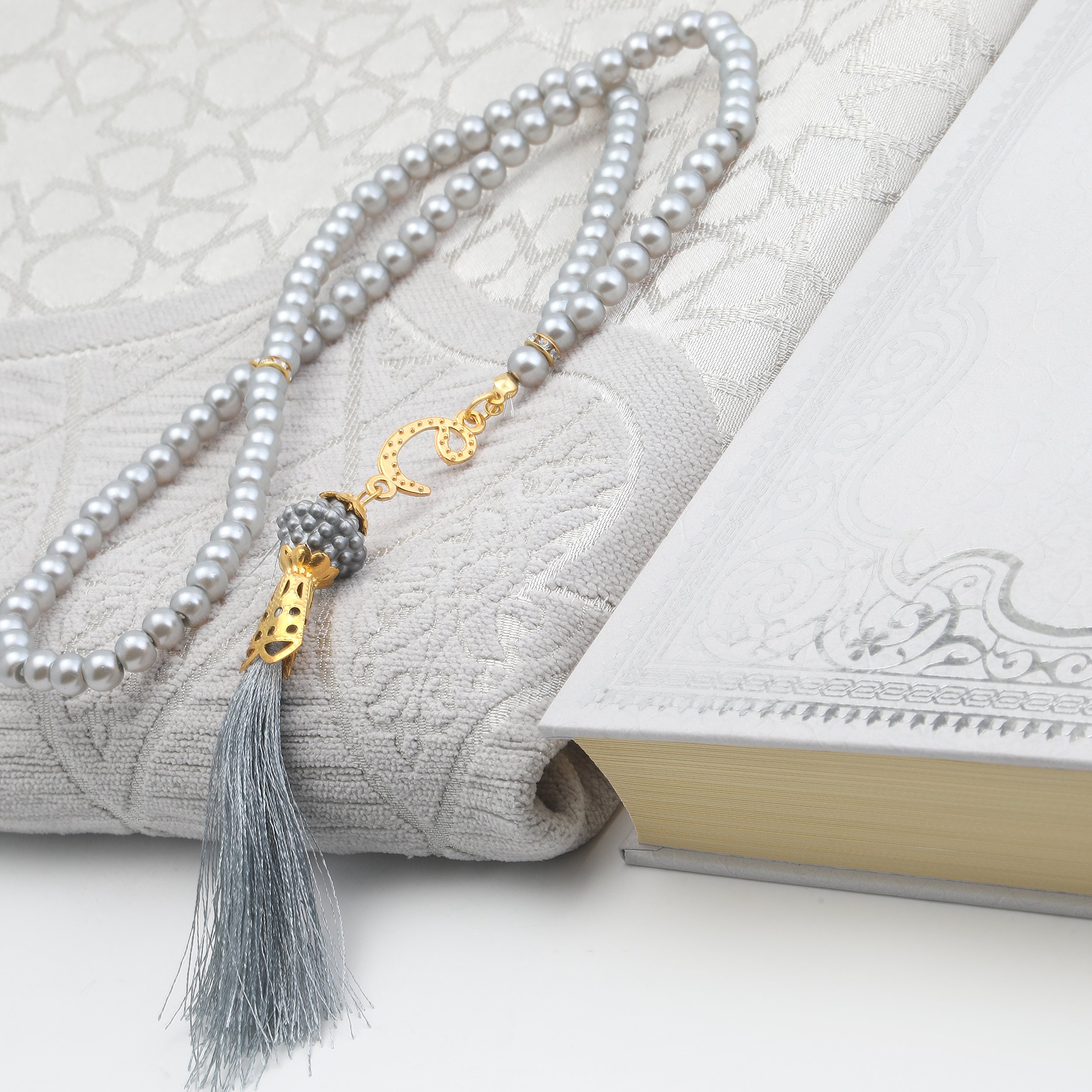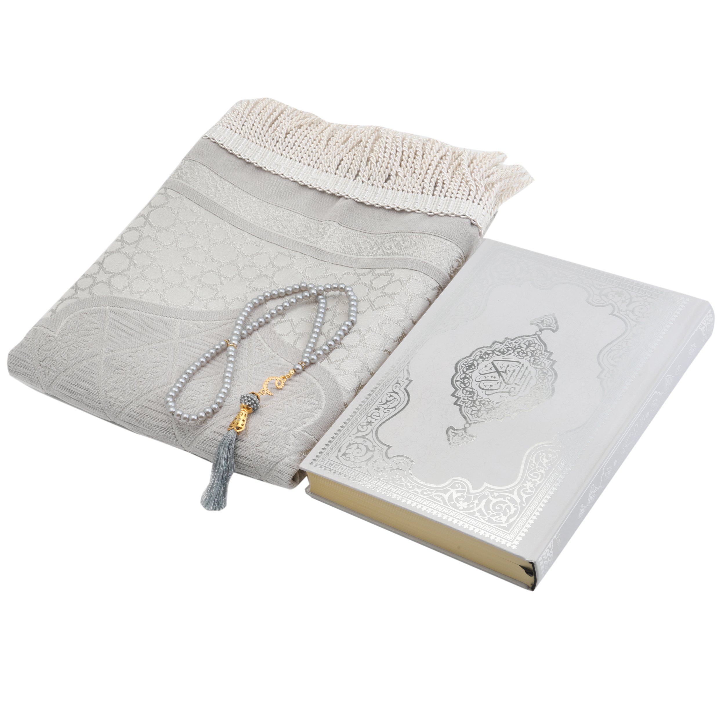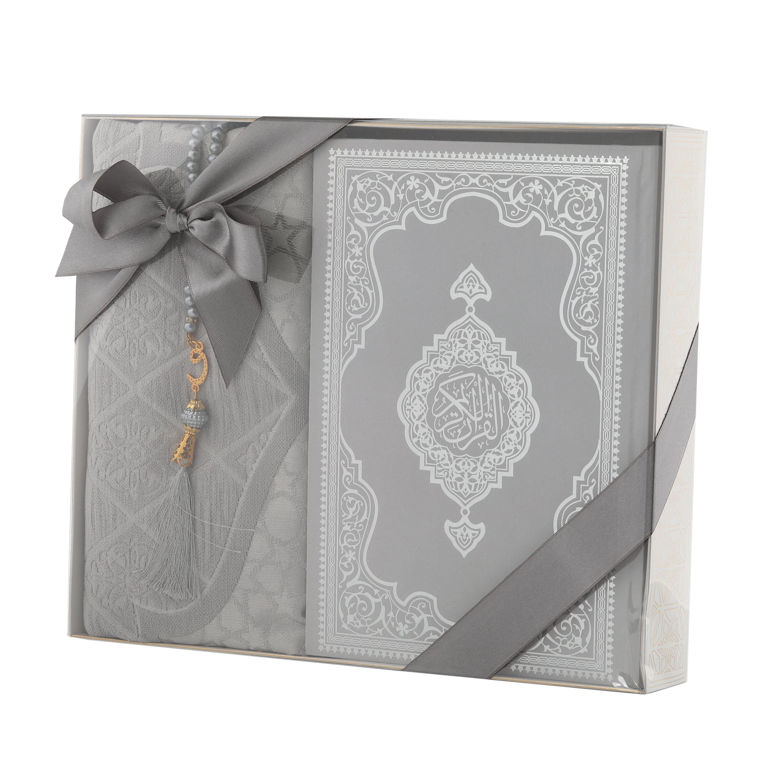 Hediyelik Seccade Kuran-ı Kerim Tesbih Seti Gri