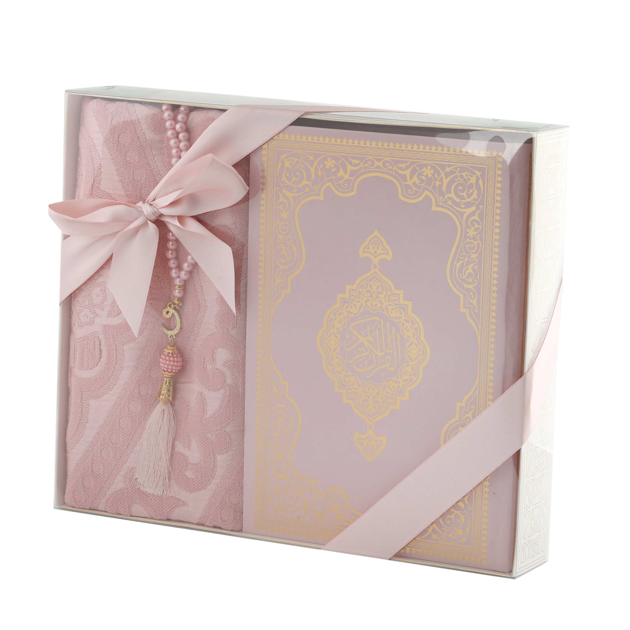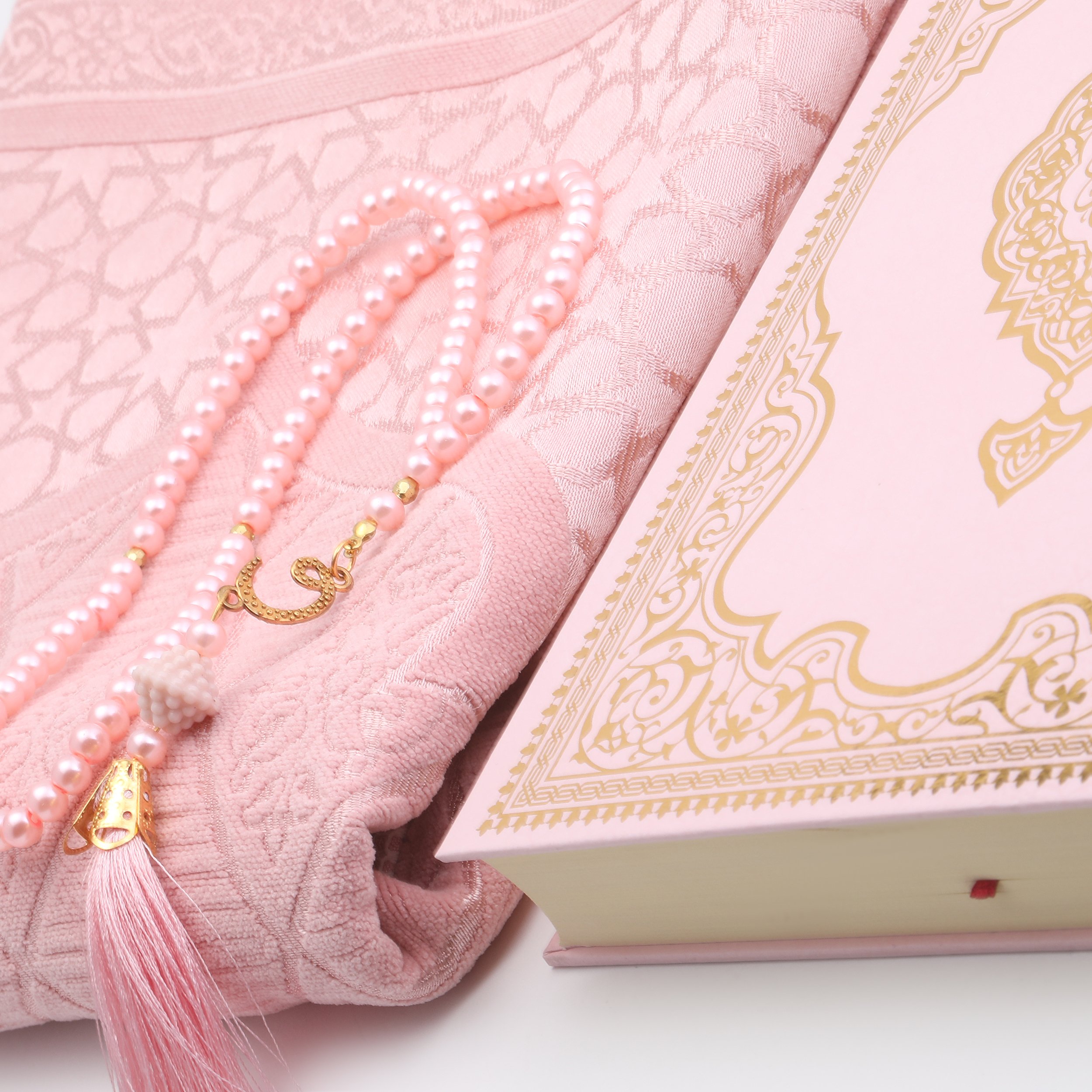 Hediyelik Seccade Kuran-ı Kerim Tesbih Seti Pembe