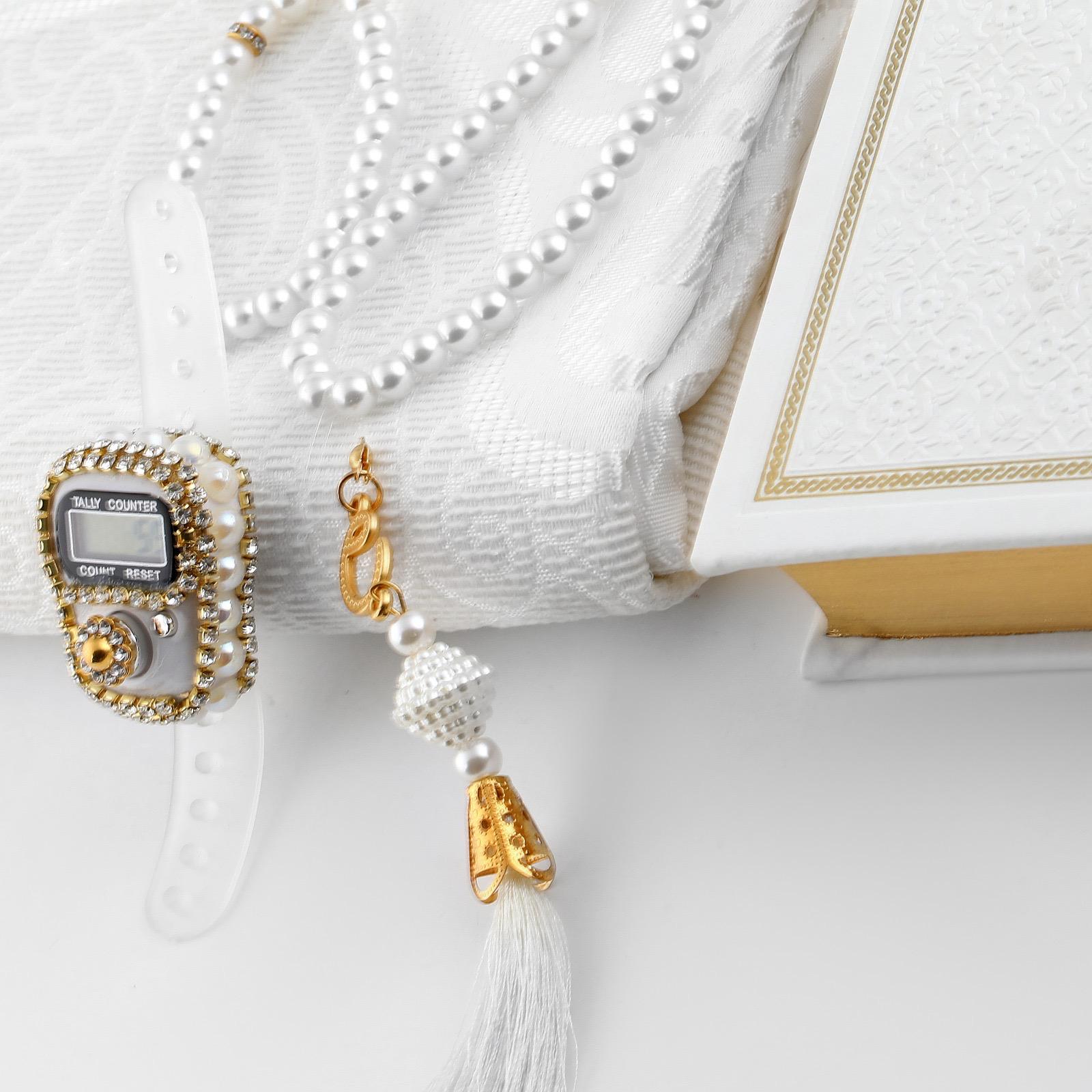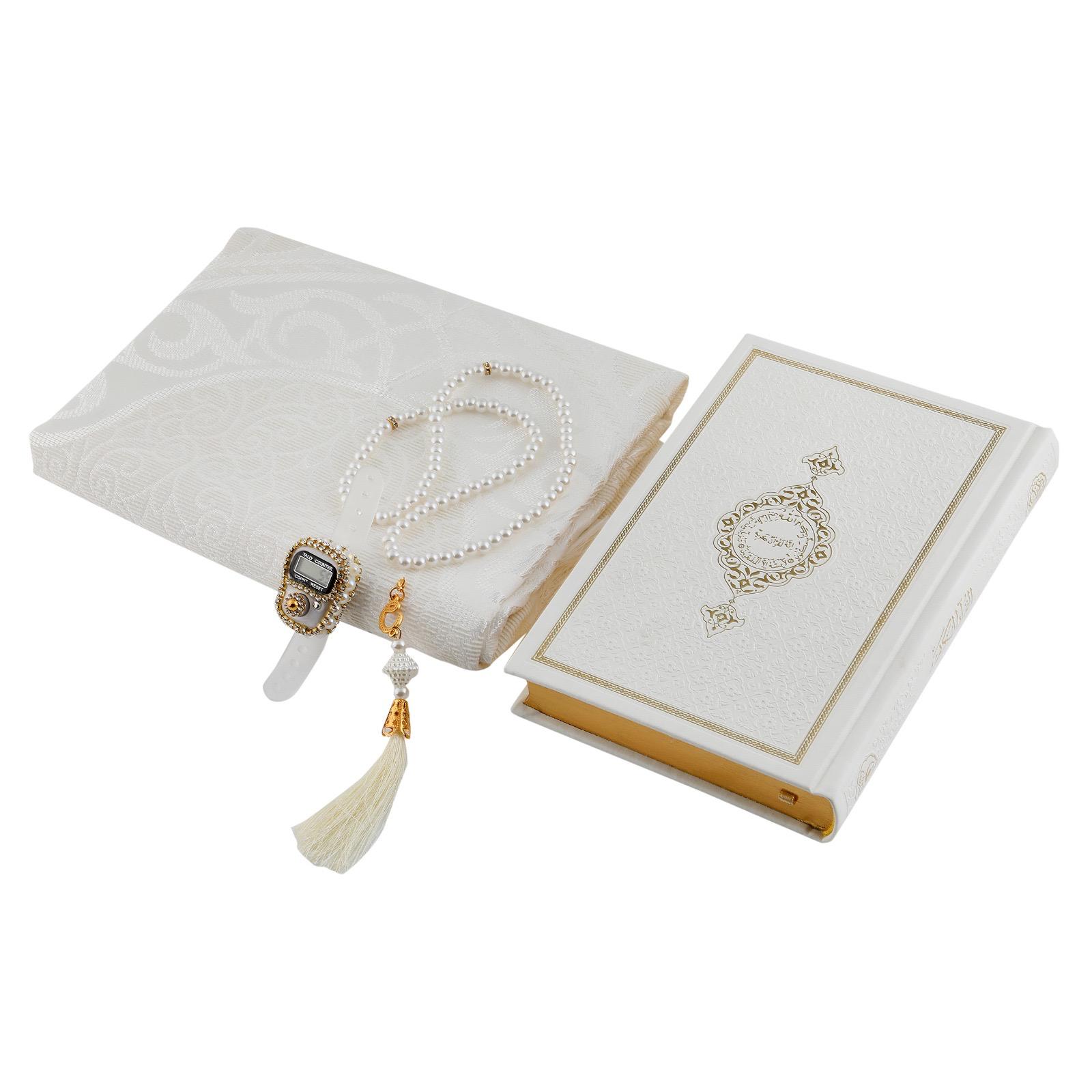 Hediyelik Seccade Kuran-ı Kerim Tesbih Zikirmatik Seti Krem