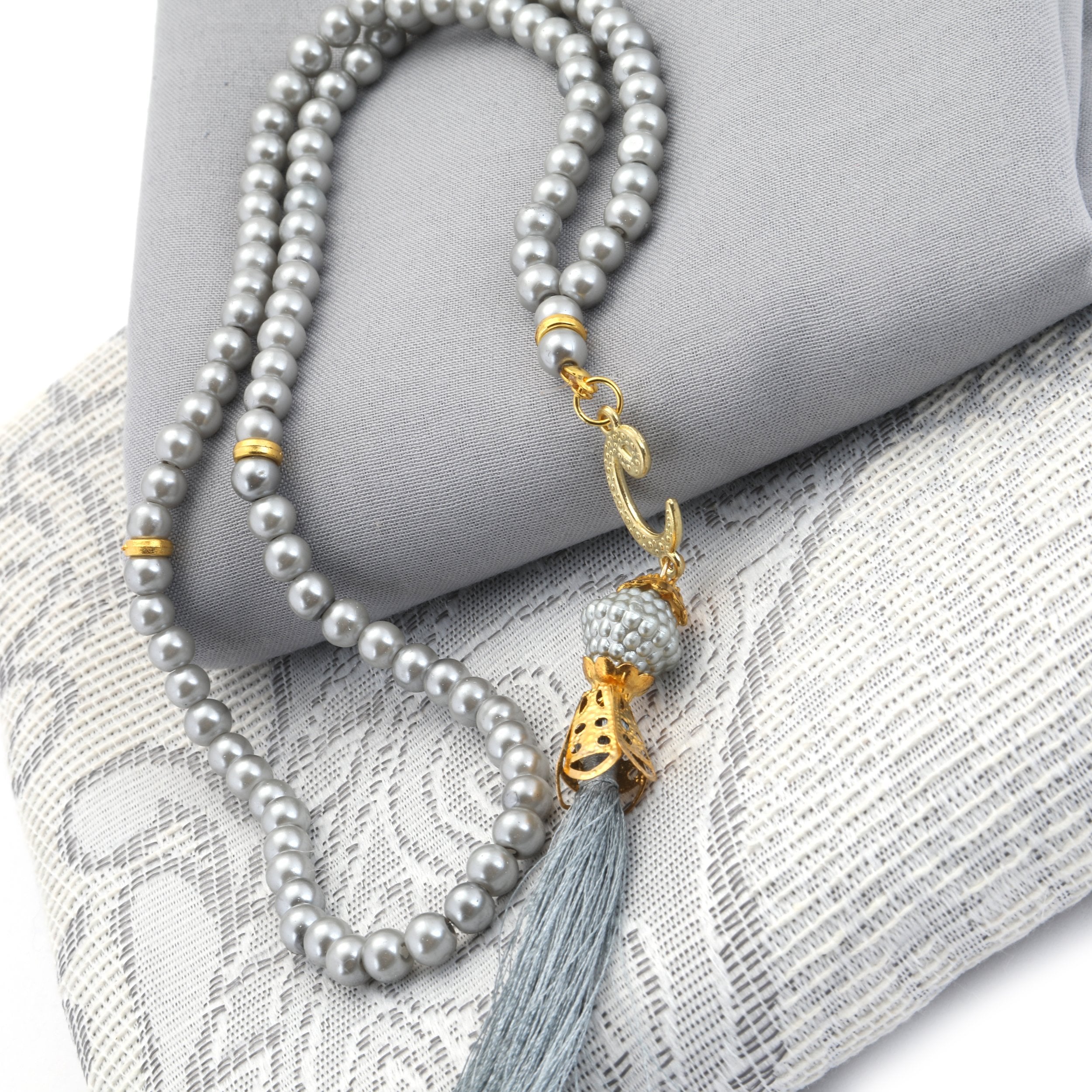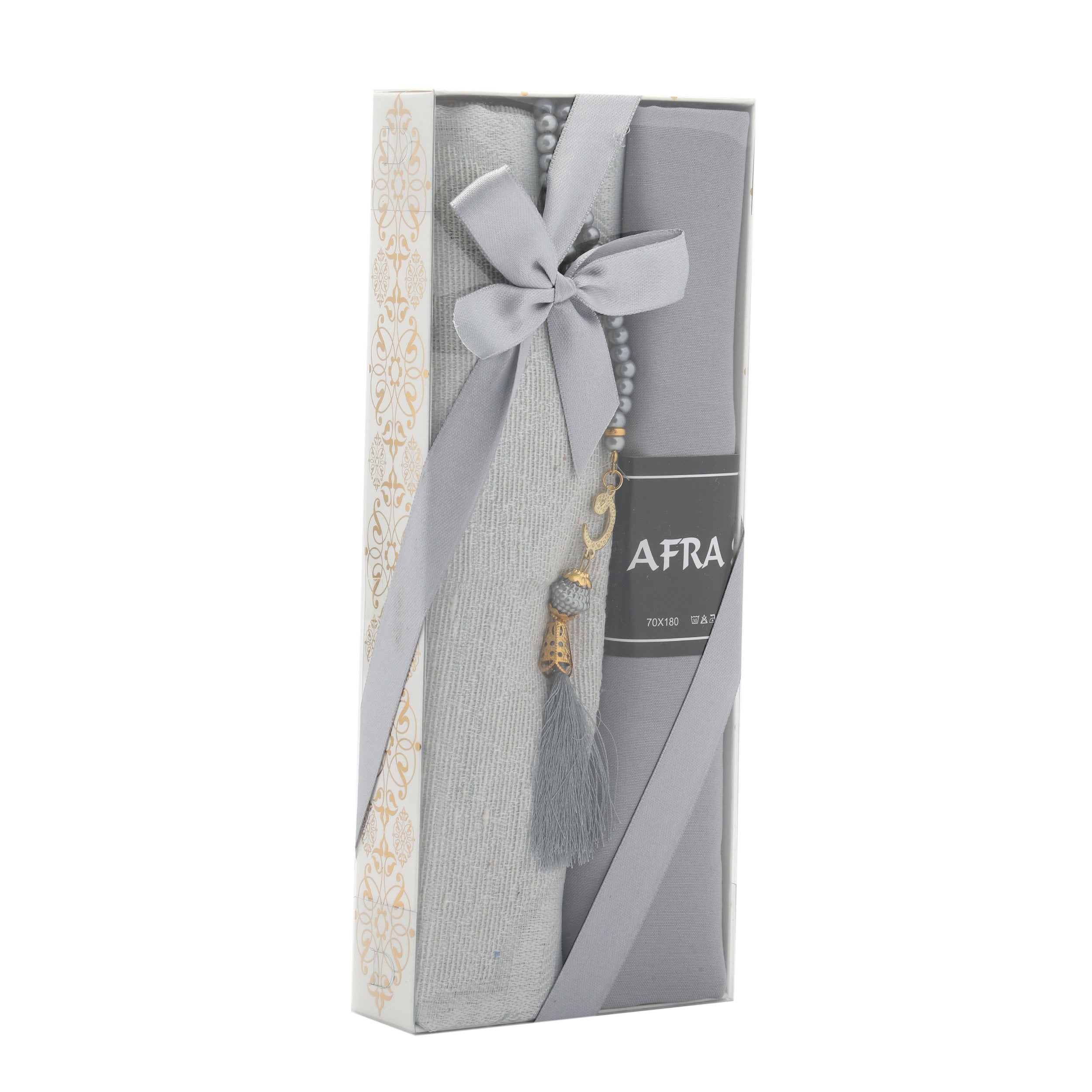 Hediyelik Seccade Şal Tesbih Seti Gri