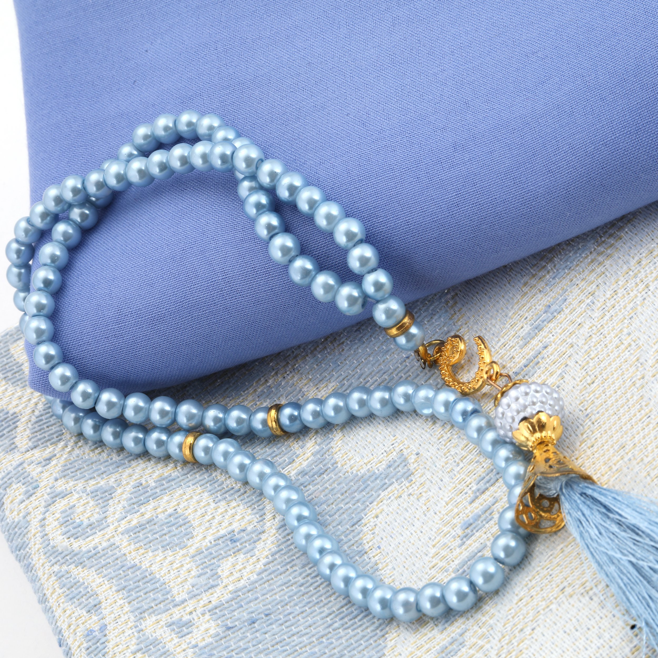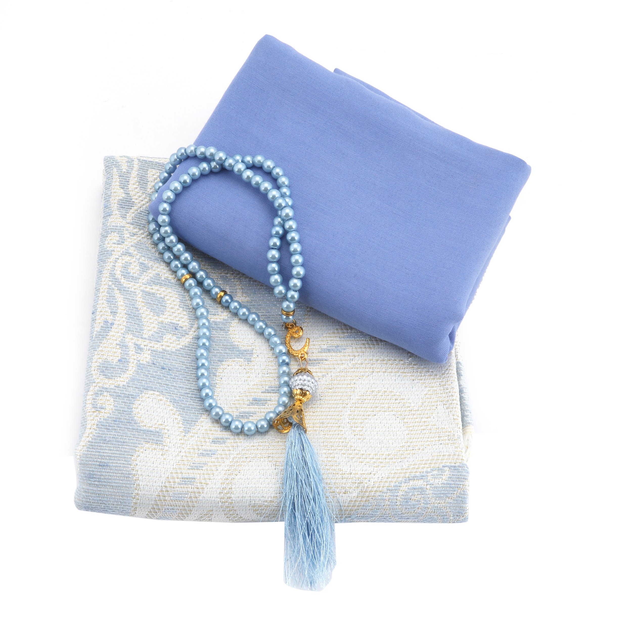 Hediyelik Seccade Şal Tesbih Seti Mavi