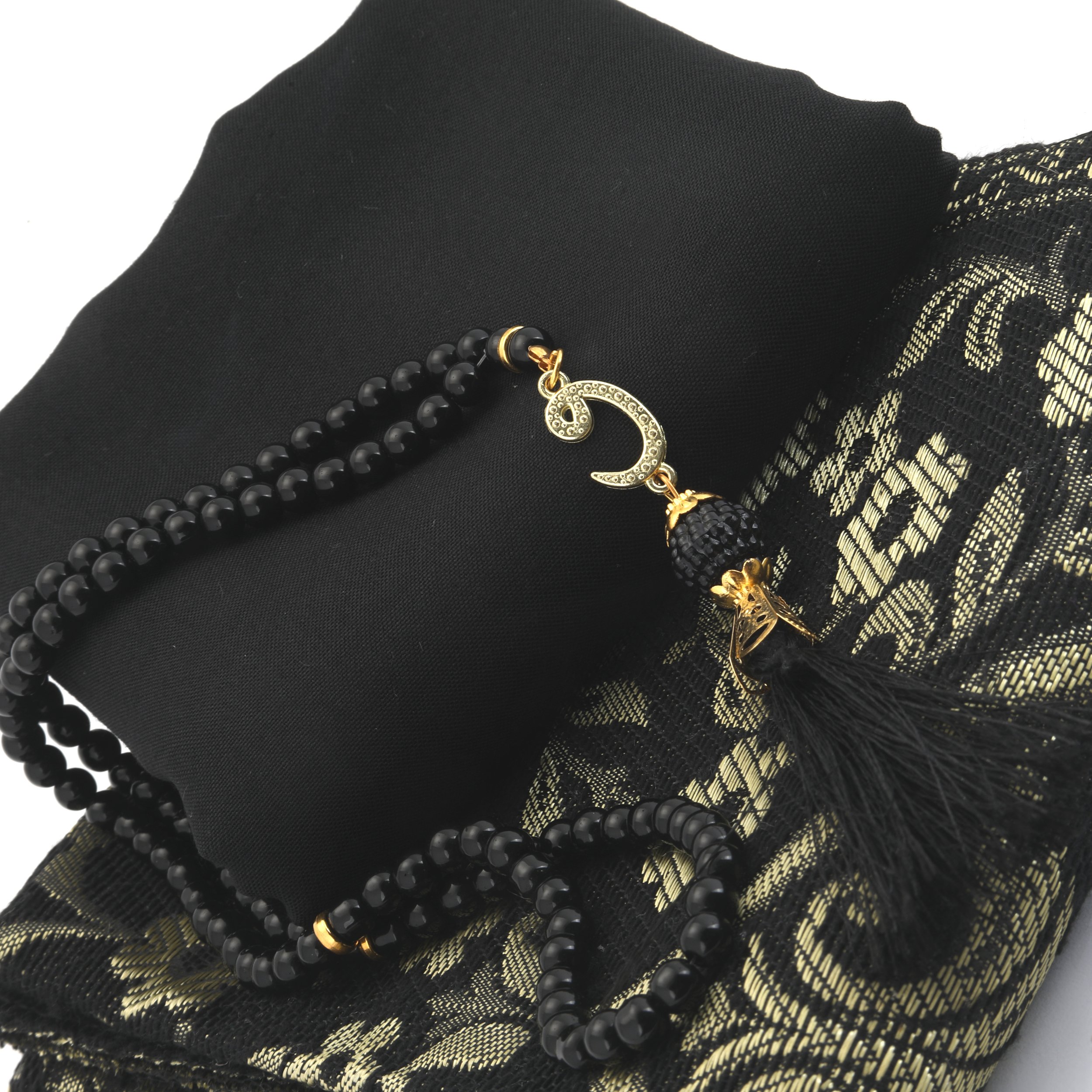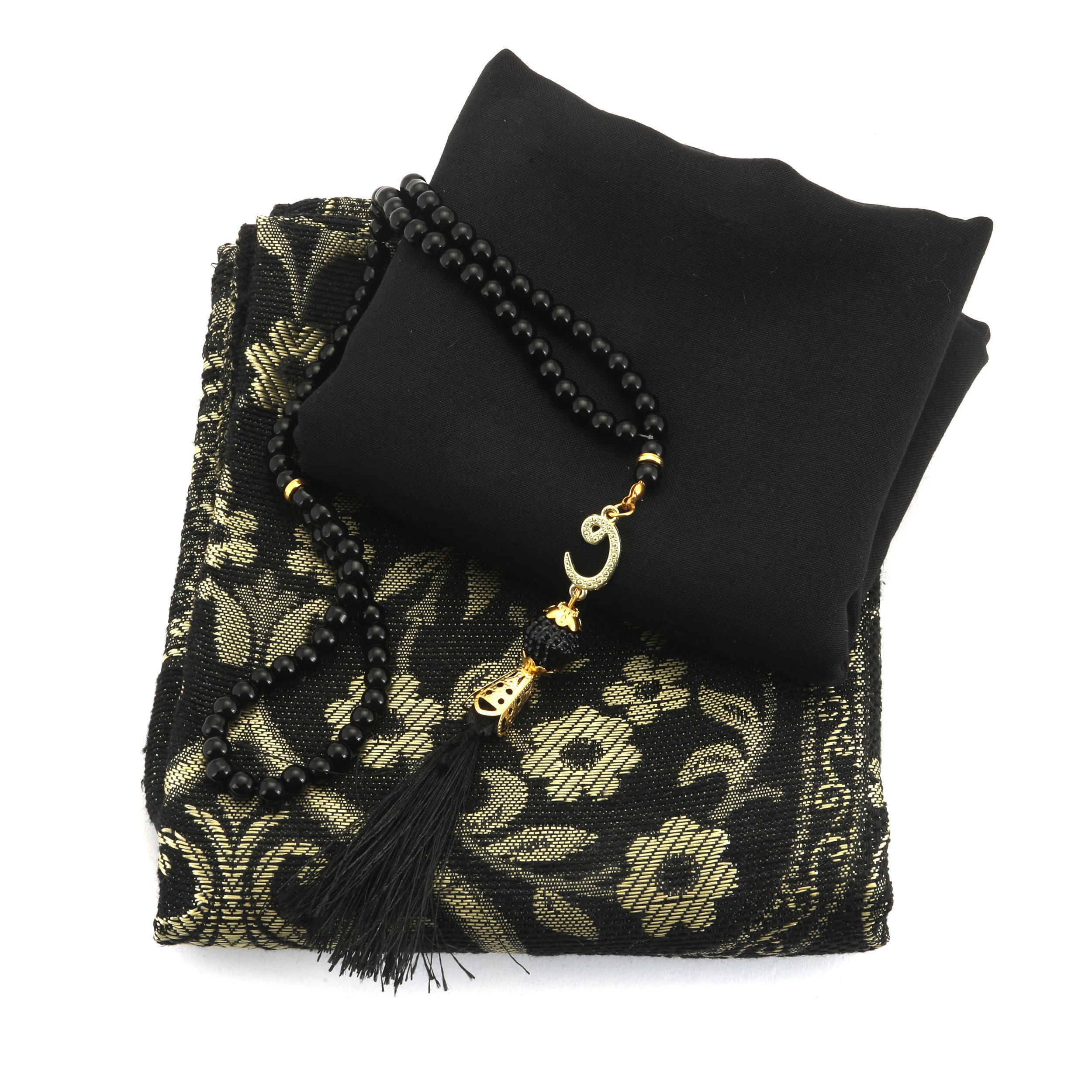 Hediyelik Seccade Şal Tesbih Seti Siyah