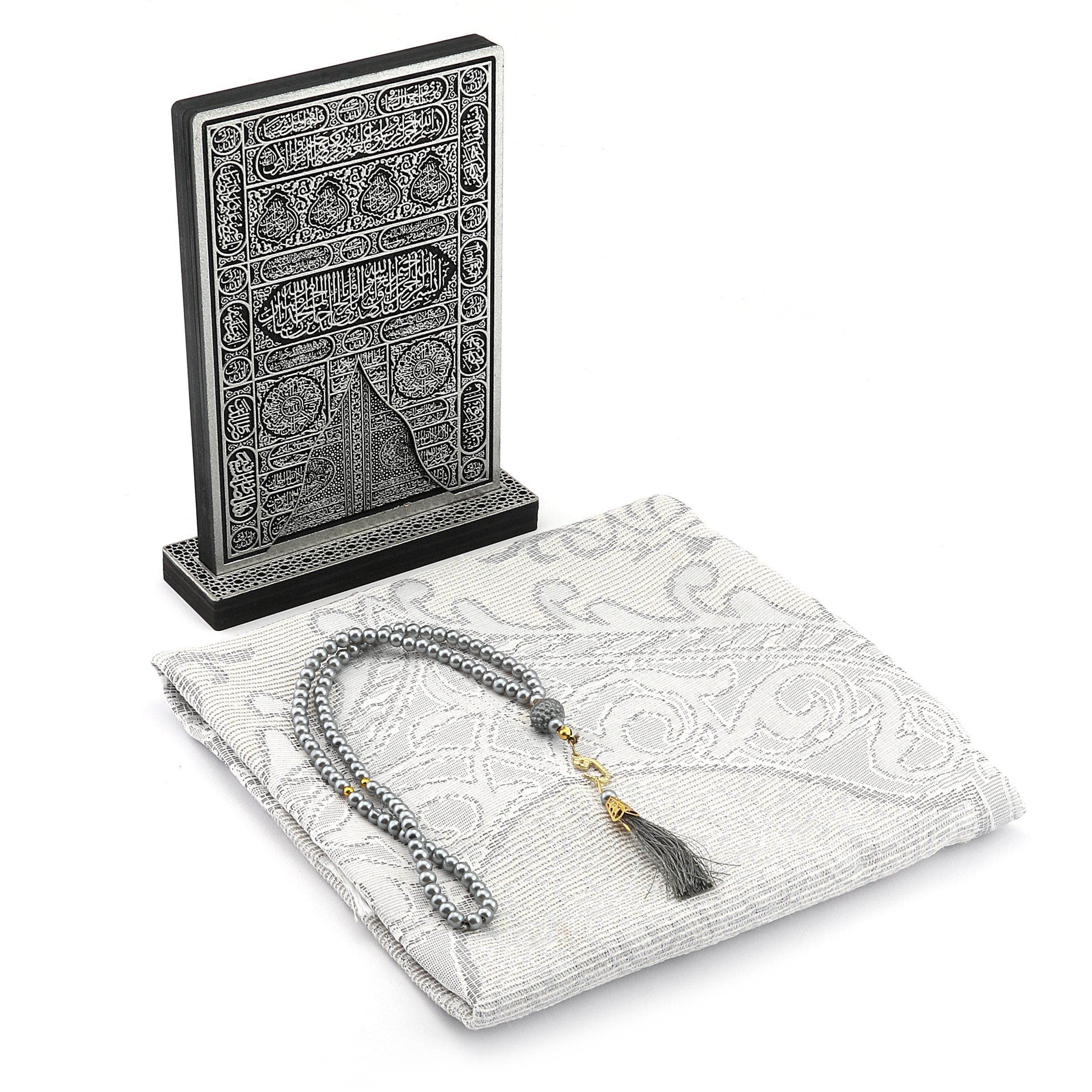 Hediyelik Seccade Tesbih Biblo Seti Gri
