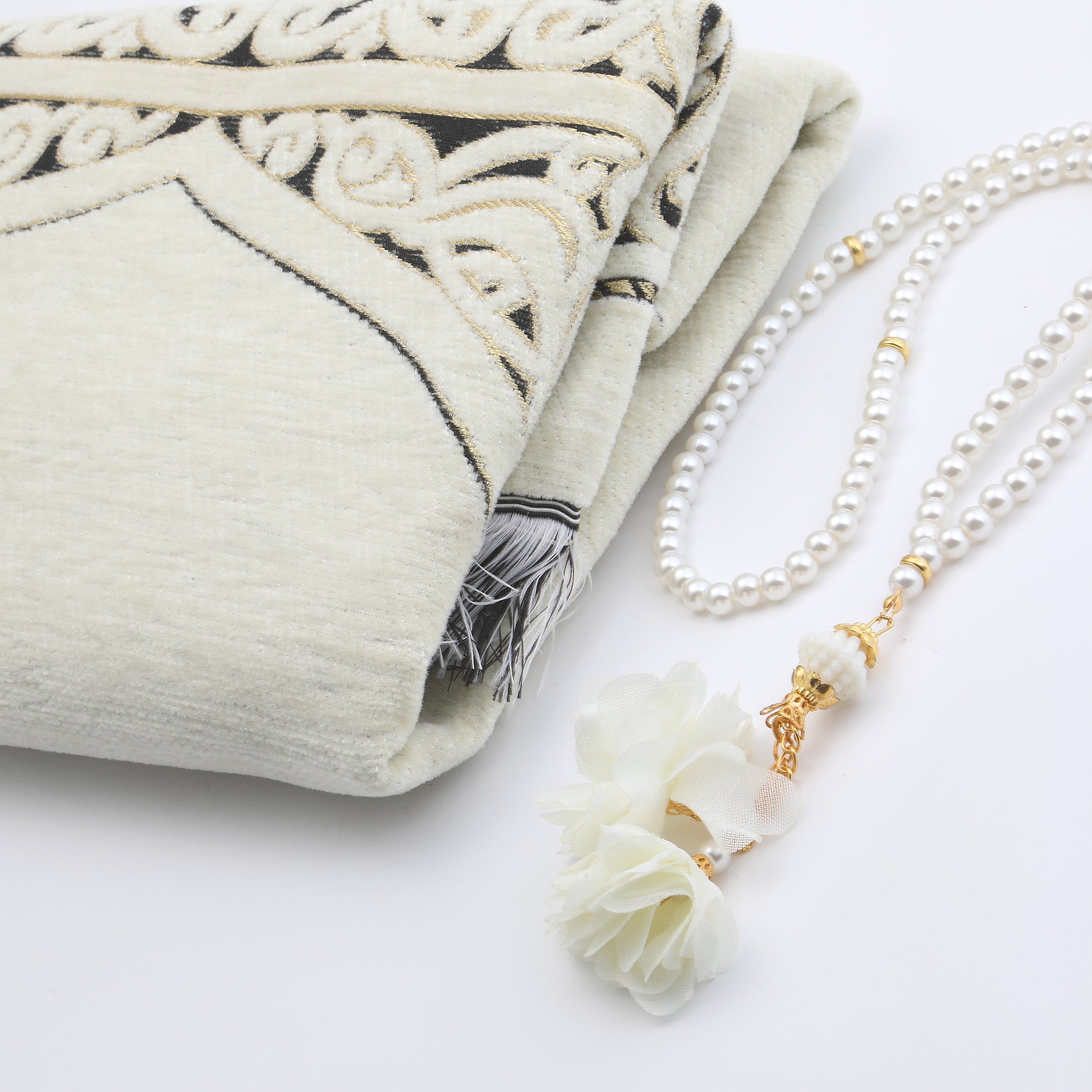 Hediyelik Seccade Tesbih Seti Krem