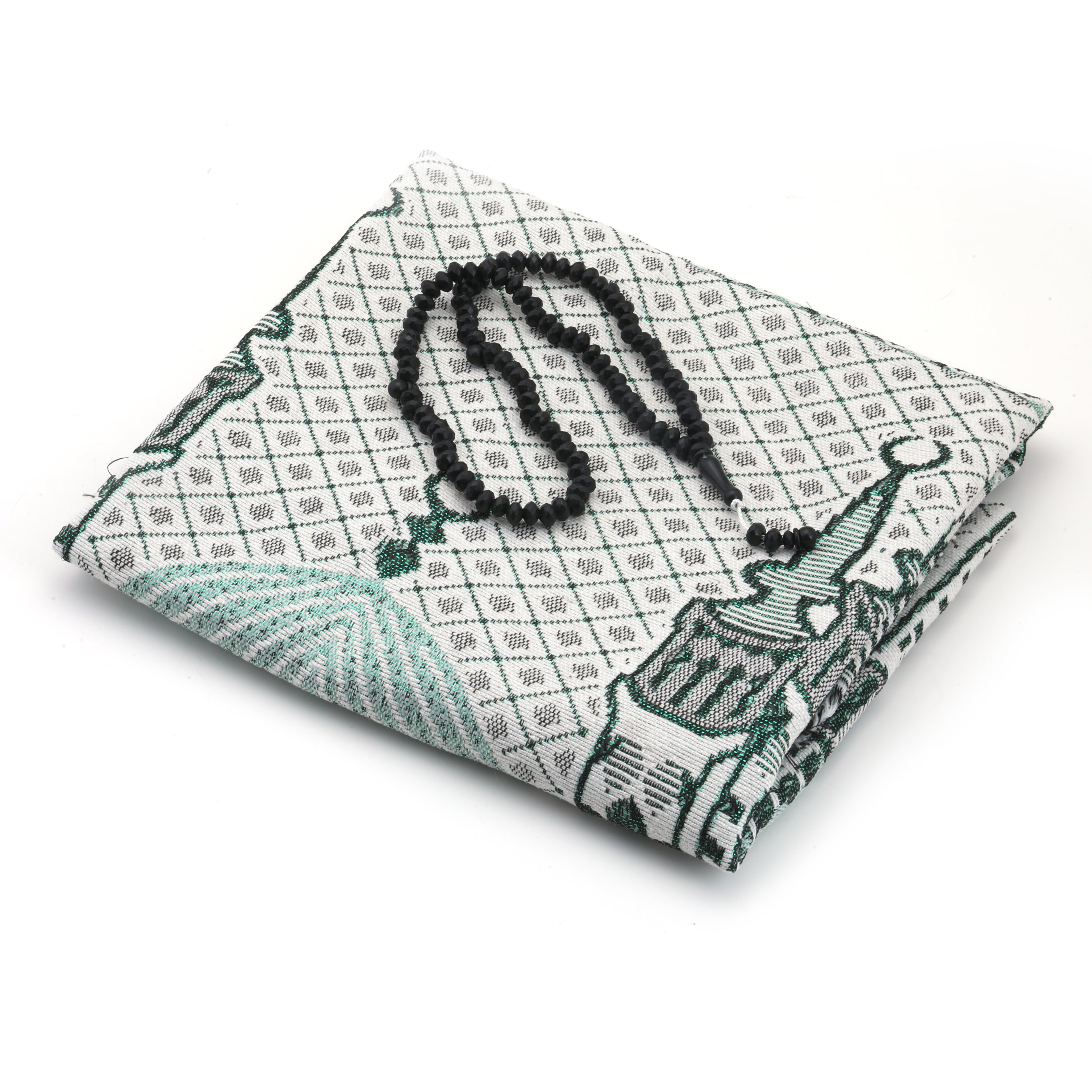- Kraft kutu içerisinde 99'luk 7 mm Kokulu Zümrüt Tesbih, 70x110 Simli Brokar Seccade ile beraber sunulur.