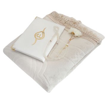 - Asetat kutu içerisinde 80x120 Cm Birinci Kalite Peluş Seccade 1100 Gr, 17x25 Cm 80 Sayfa Orta Boy Medine Hatlı Yasin Kitabı ve 99'luk 10 mm İki Tül Güllü Tesbih ile beraber sunulur.