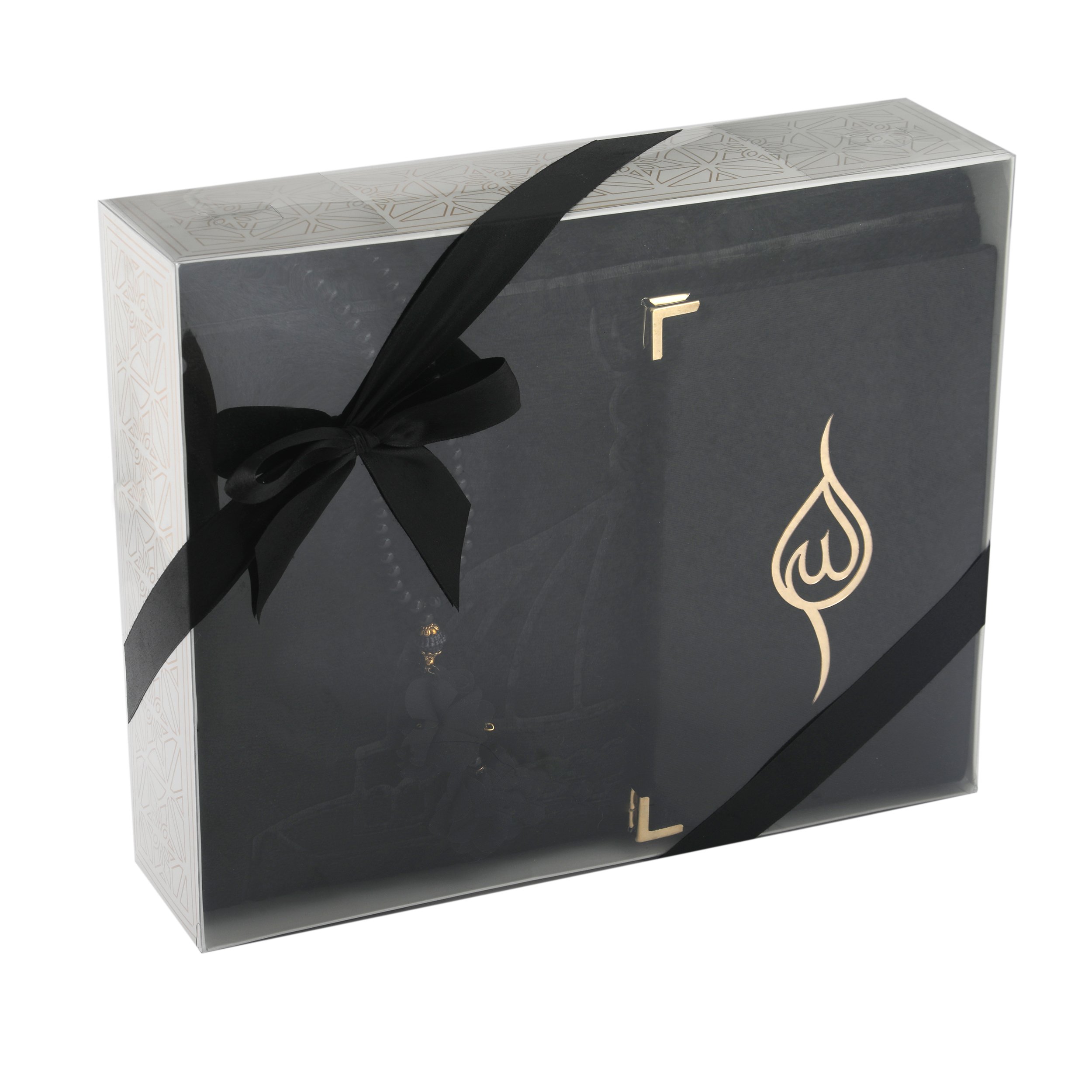 - Asetat kutu içerisinde 80x120 Cm Birinci Kalite Peluş Seccade 1100 Gr, 17x25 Cm 80 Sayfa Orta Boy Medine Hatlı Yasin Kitabı ve 99'luk 10 mm İki Tül Güllü Tesbih ile beraber sunulur.