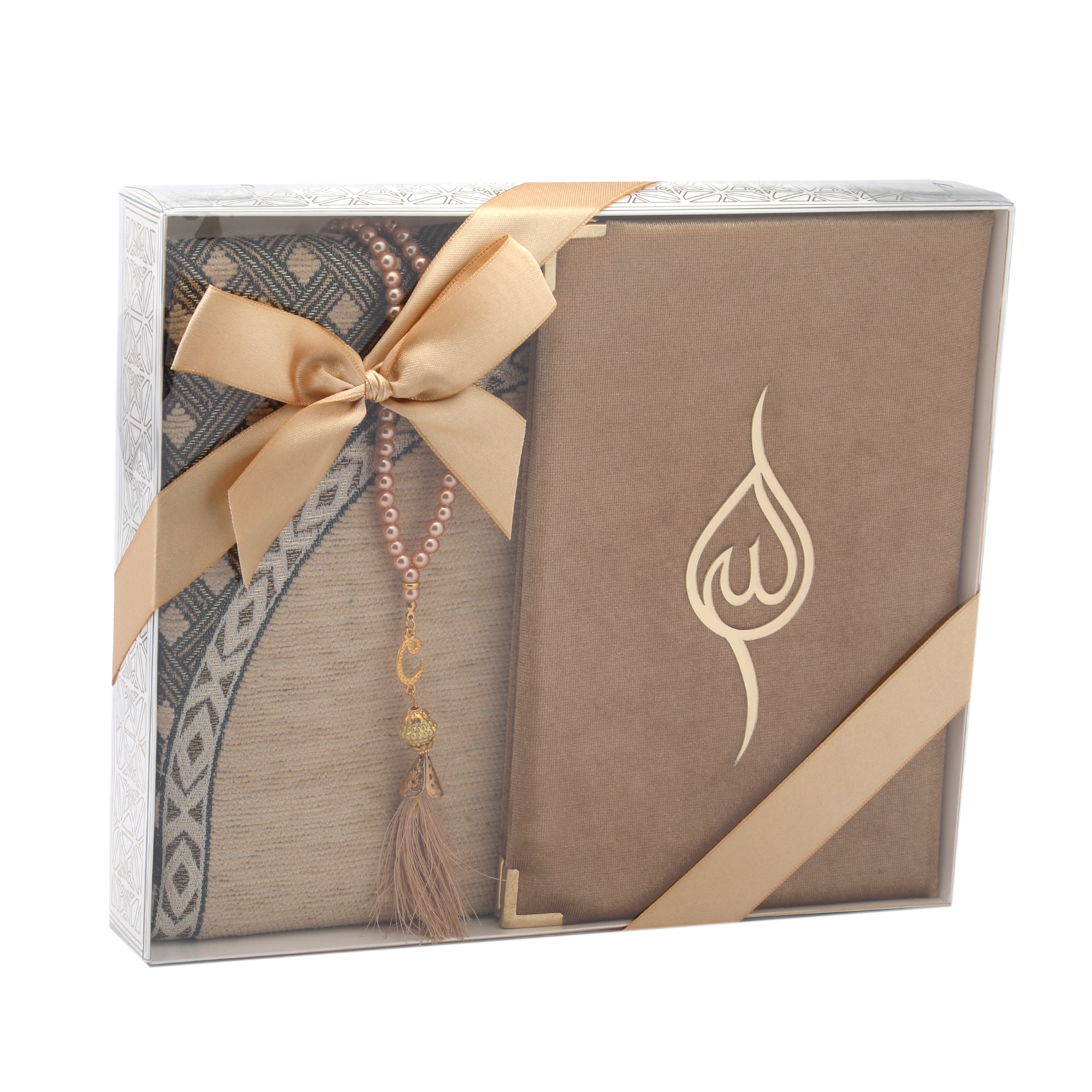 - Asetat kutu içerisinde 99'luk 6 mm Vavlı İnci Tesbih, 70x120 Cm Ensar Safa Eko Şönil Seccade ve 17x25 Cm Orta Boy 80 Sayfa Medine Hatlı Kadife Kaplı Yasin Kitabı ile beraber sunulur.