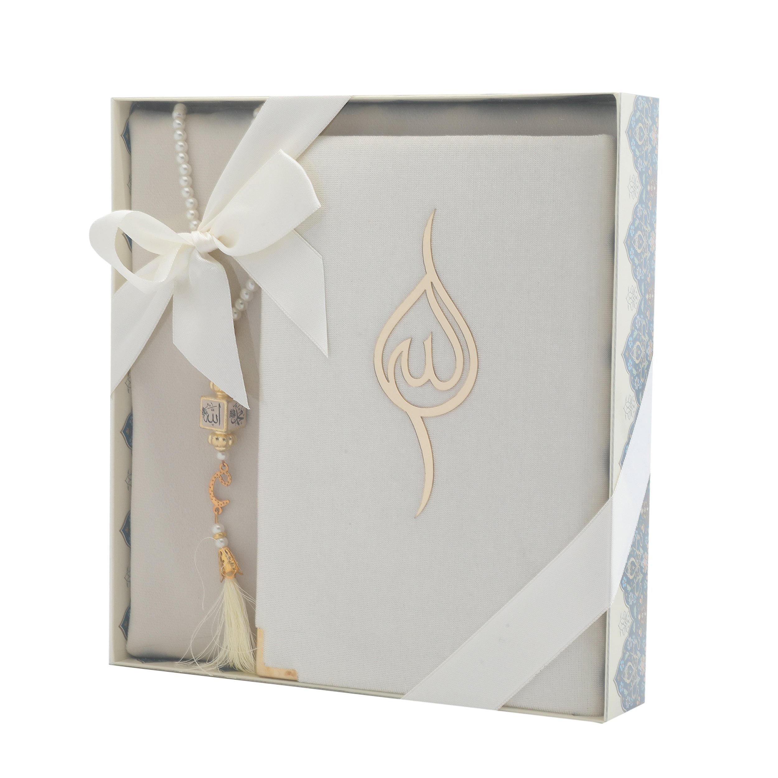 - Asetat kutu içerisinde 65x110 Cm Astarlı Baby Face Seccade, 17x25 Cm Kadife Orta Boy Medine Hatlı Yasin ve 99'luk Küp Ayetli İnci Tesbih ile beraber sunulur.