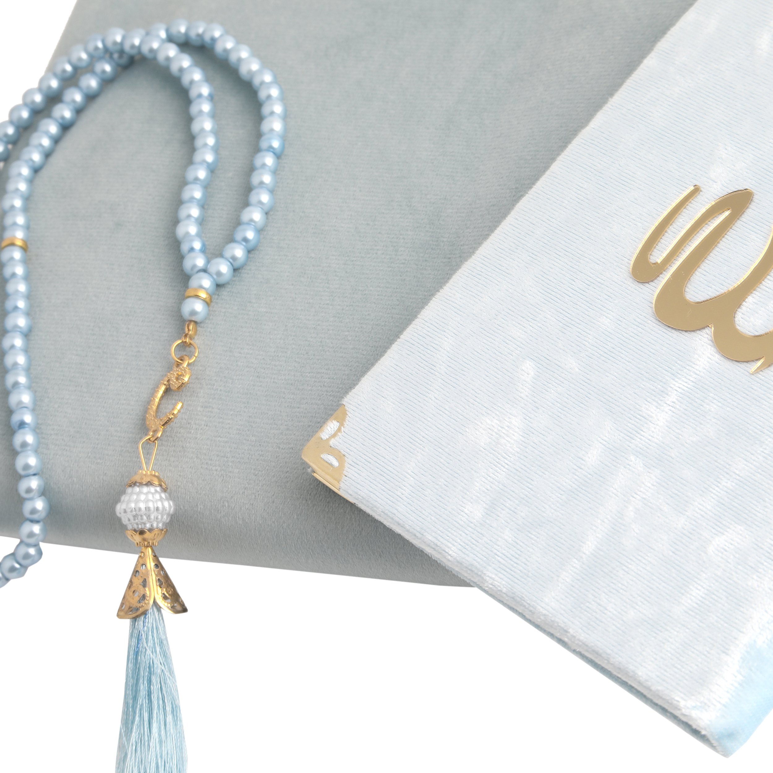 Hediyelik Seccade Yasin Tesbih Seti Mavi