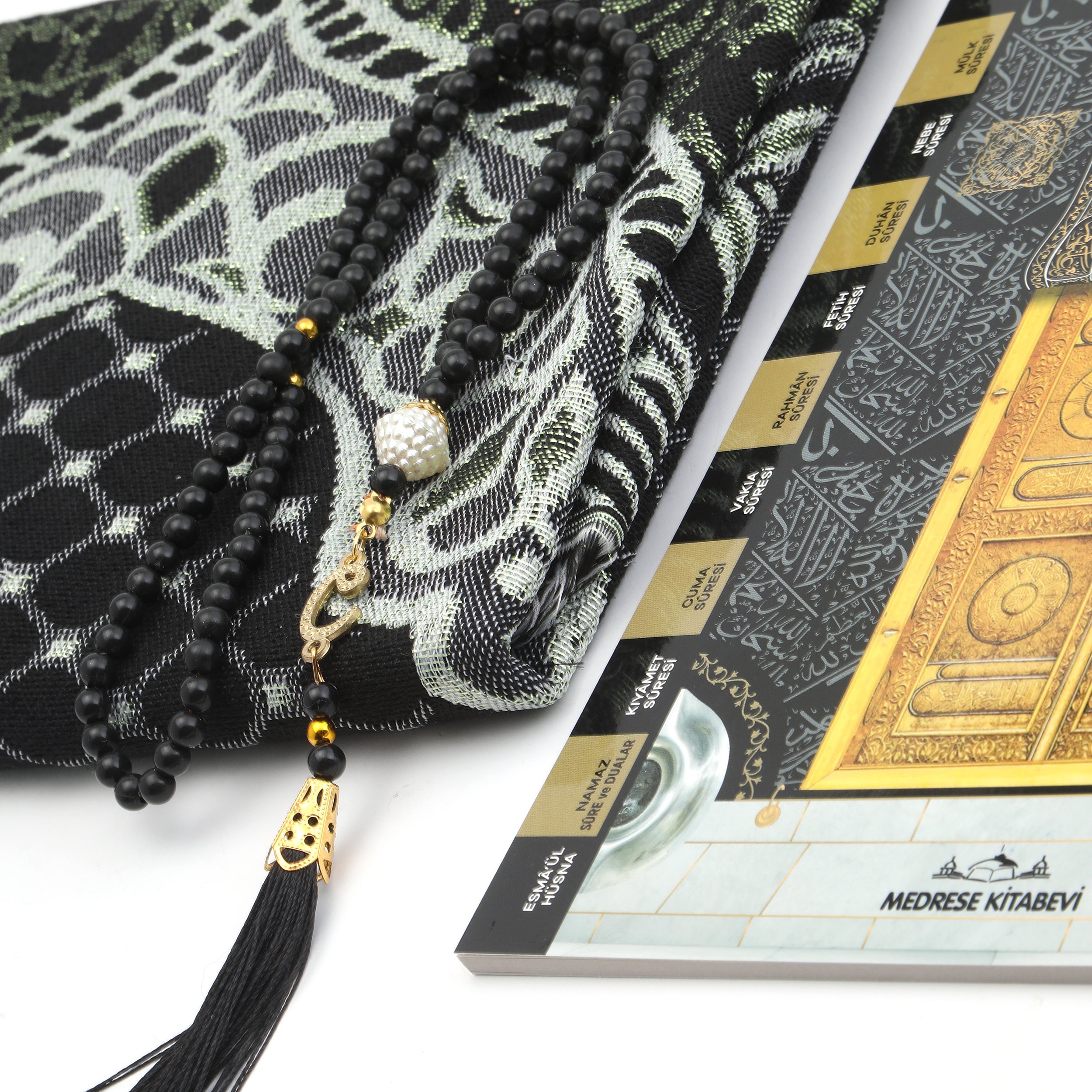 Hediyelik Seccade Yasin Tesbih Tül Kese Seti Siyah