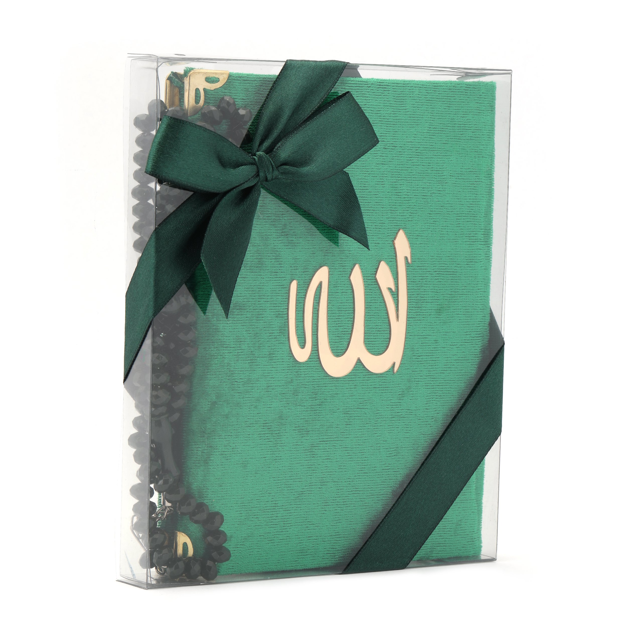 - Asetat kutu içerisinde 12x17 Cm 128 Sayfa Çanta Boy Süngerli Arapça/Türkçe Yasin Kitabı ve 99'luk 8 mm Zümrüt Tesbih ile beraber sunulur.