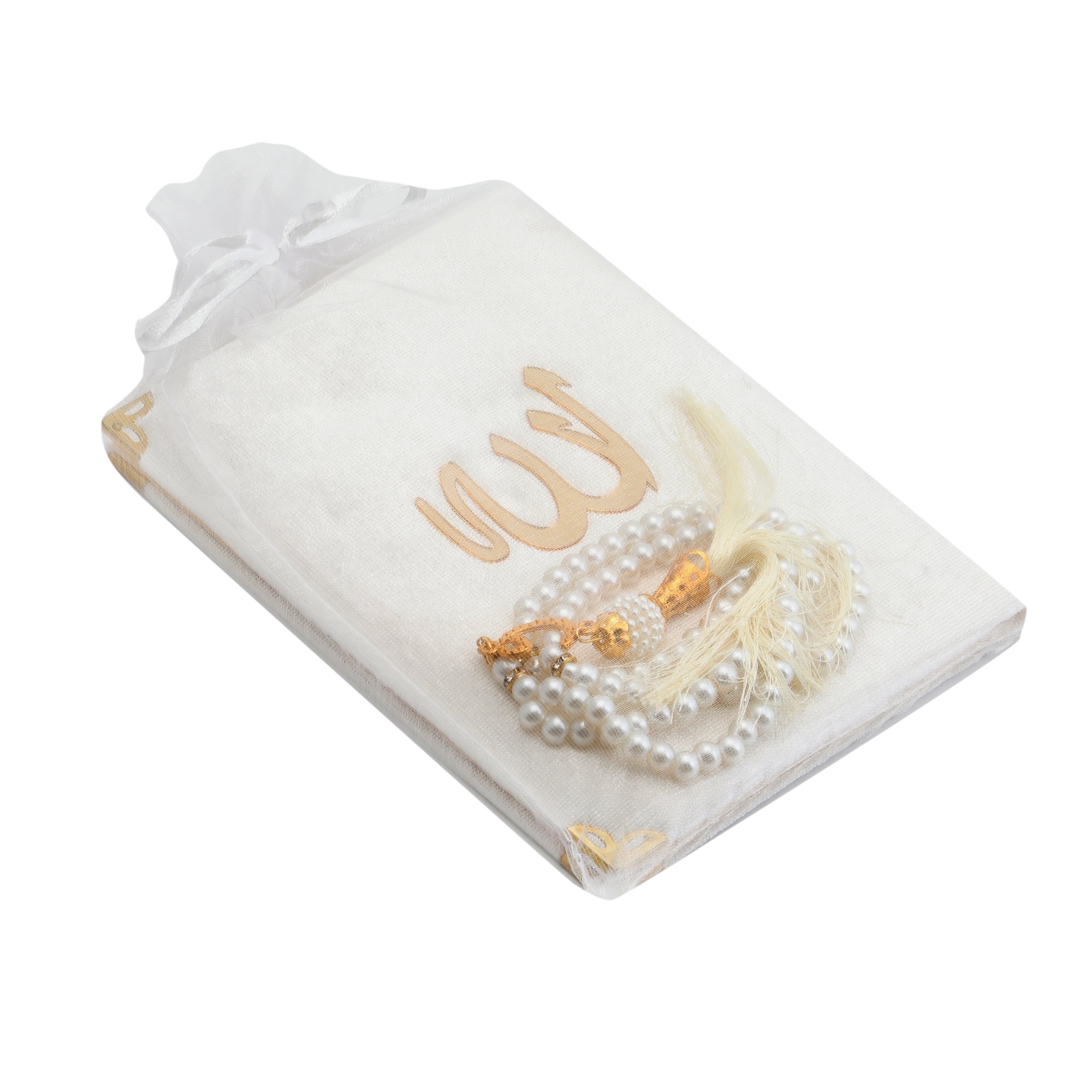 Hediyelik Yasin Tesbih Tül Kese Seti Krem
