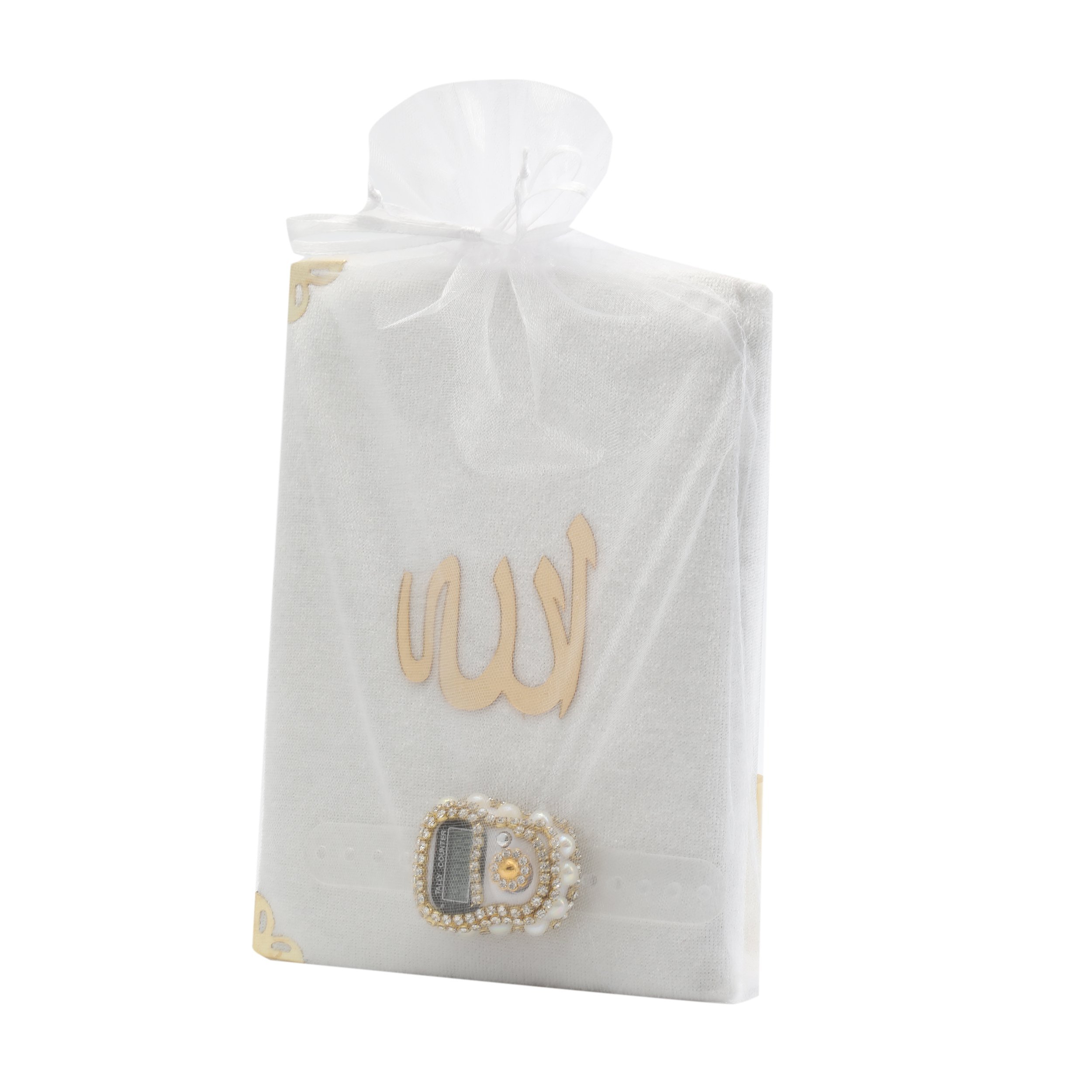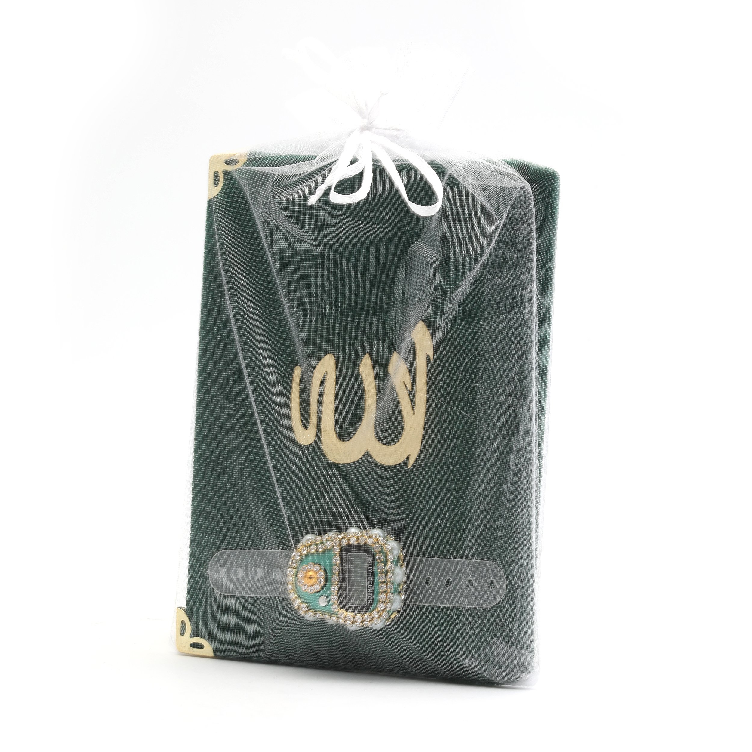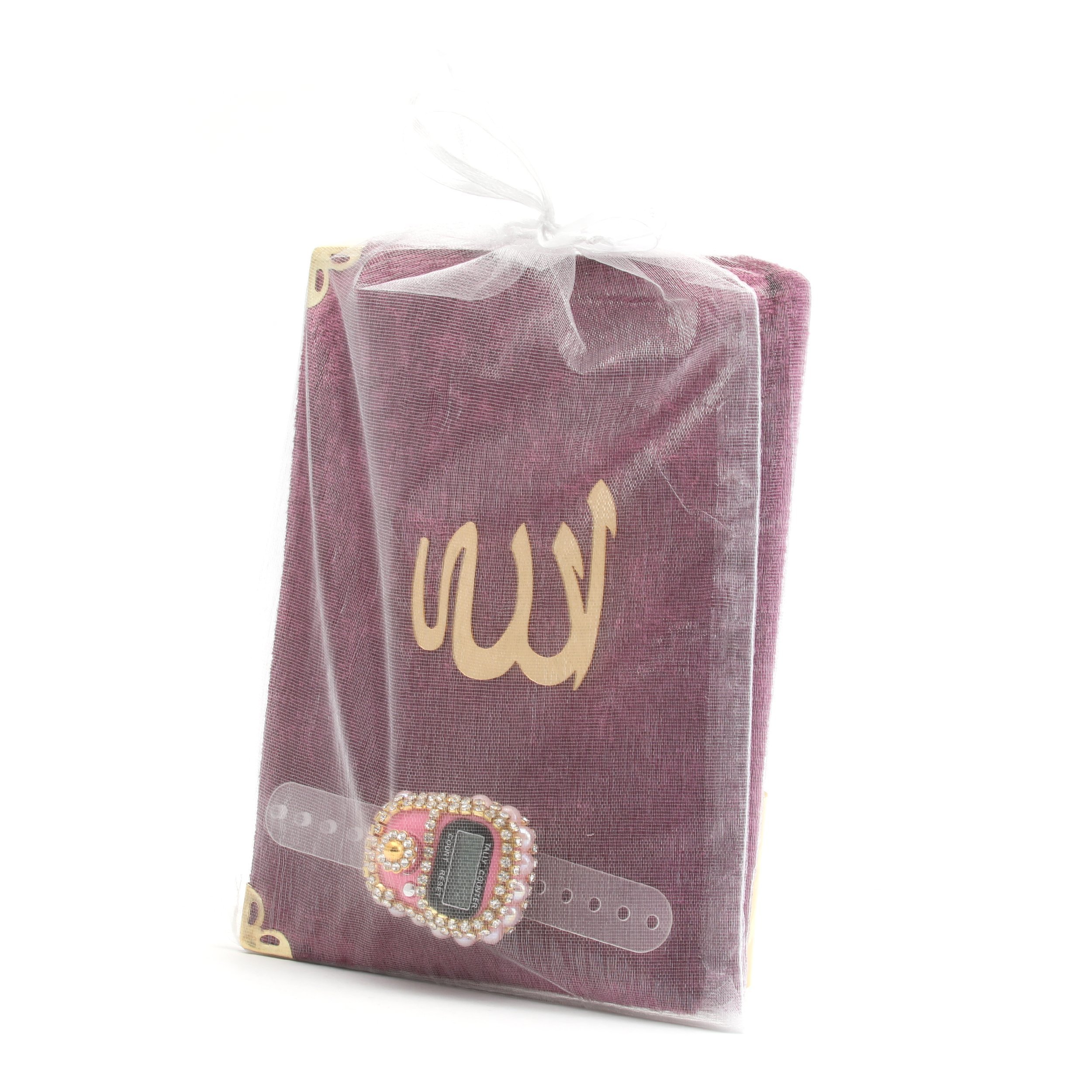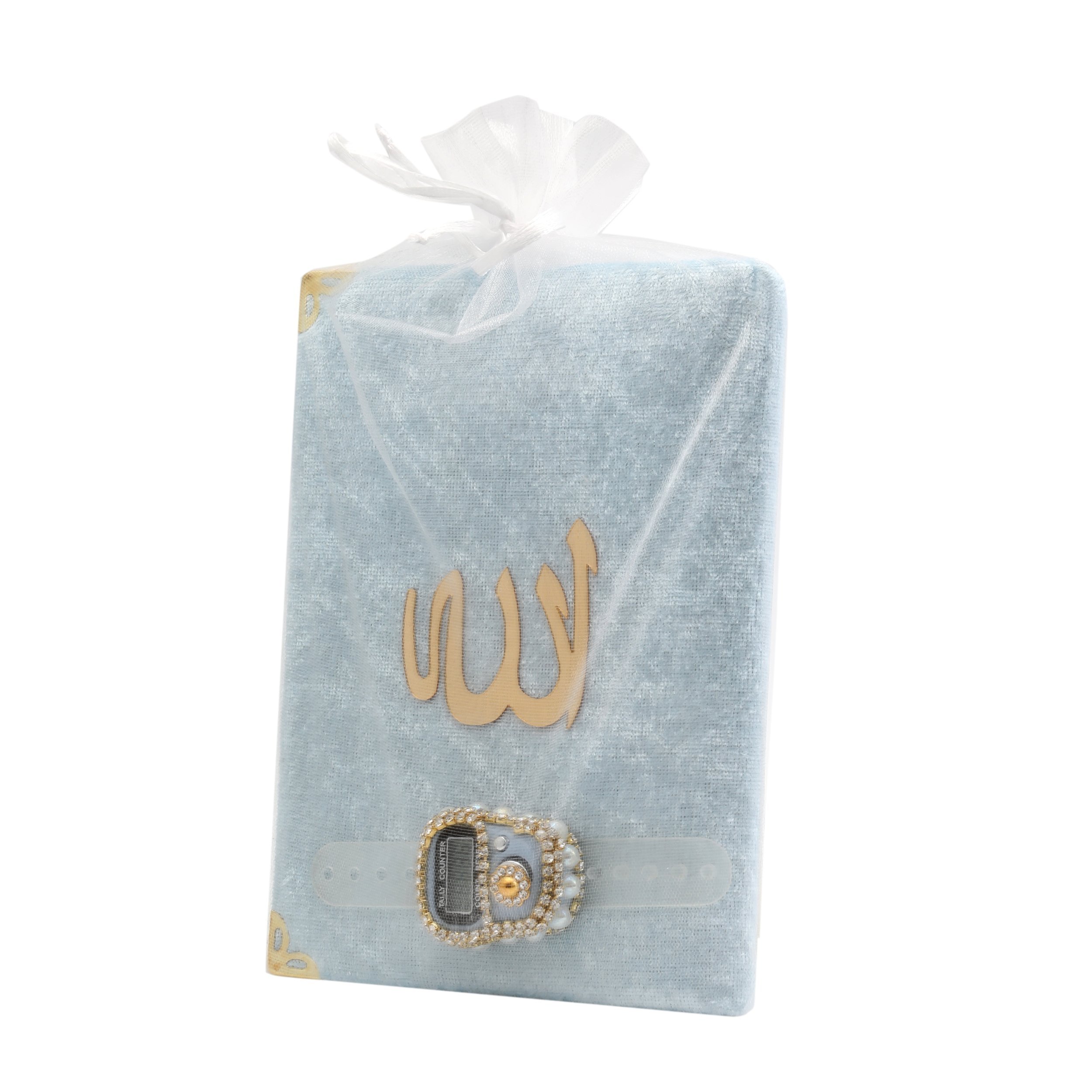 - Tül Kese içerisinde 12x17 Cm 80 Sayfa Sayfa Kadife Çanta Boy Arapça/Türkçe Yasin Ve Taşlı Zikirmatik ile beraber sunulur.