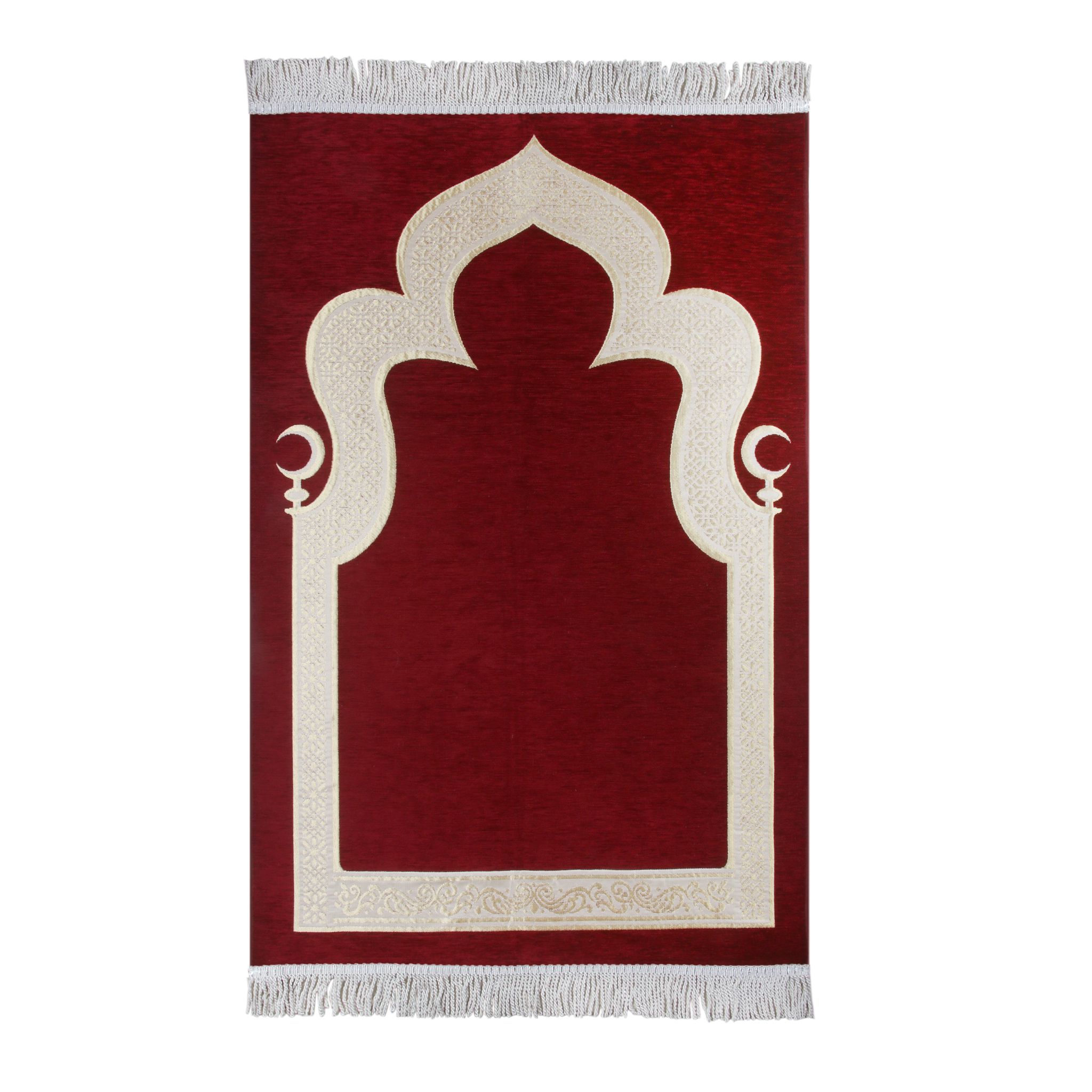 Hilalli Mihrap Desenli Lüks Saçaklı Şönil Seccade Bordo