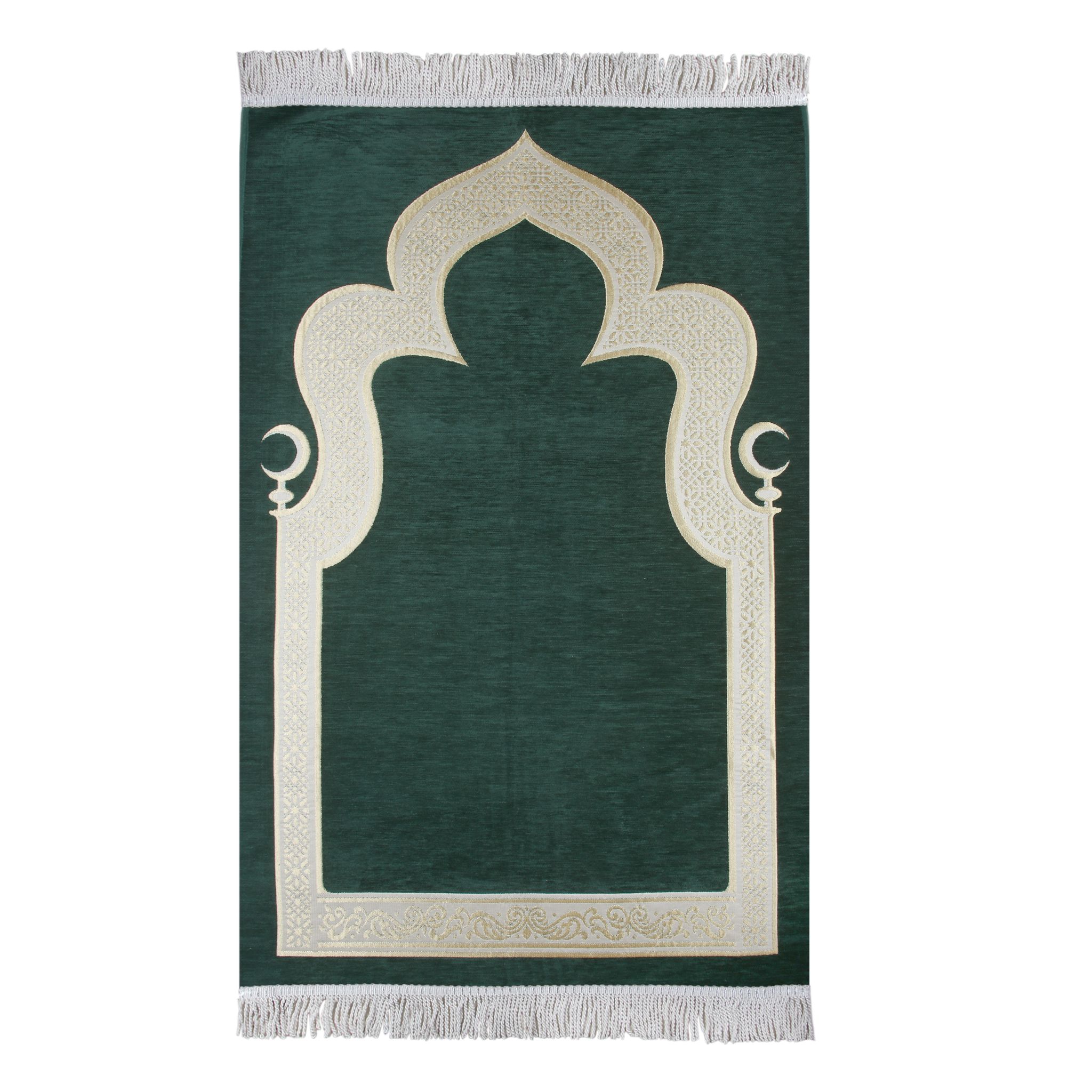 Hilalli Mihrap Desenli Lüks Saçaklı Şönil Seccade Yeşil