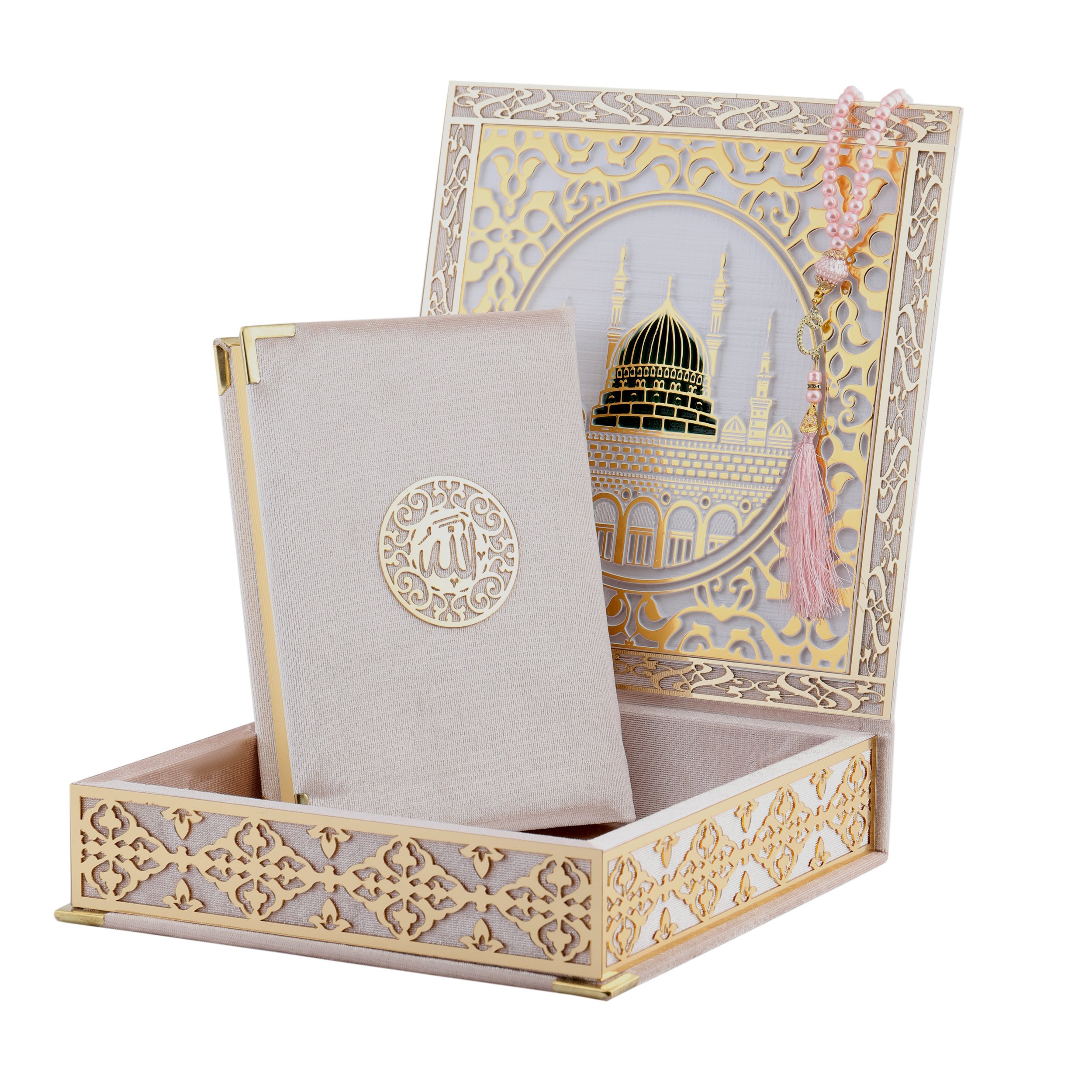 Kabe Ayrıntılı Gold Pleksili Kuran-ı Kerim Tesbih Kutusu