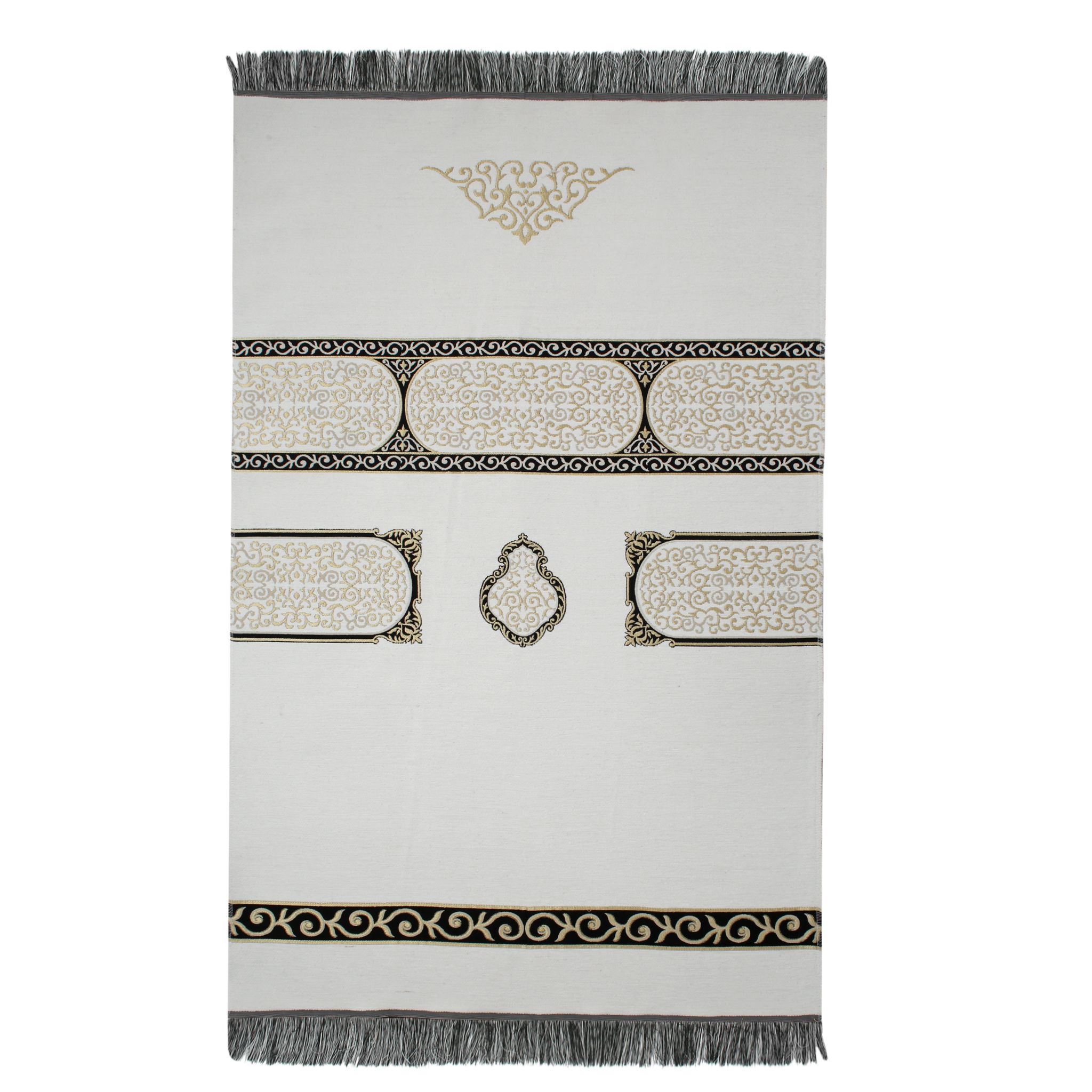 - Seccadenin üzerinde kabe deseni bulunmaktadır ayet içermez. Namaz kılınmasına engel değildir.