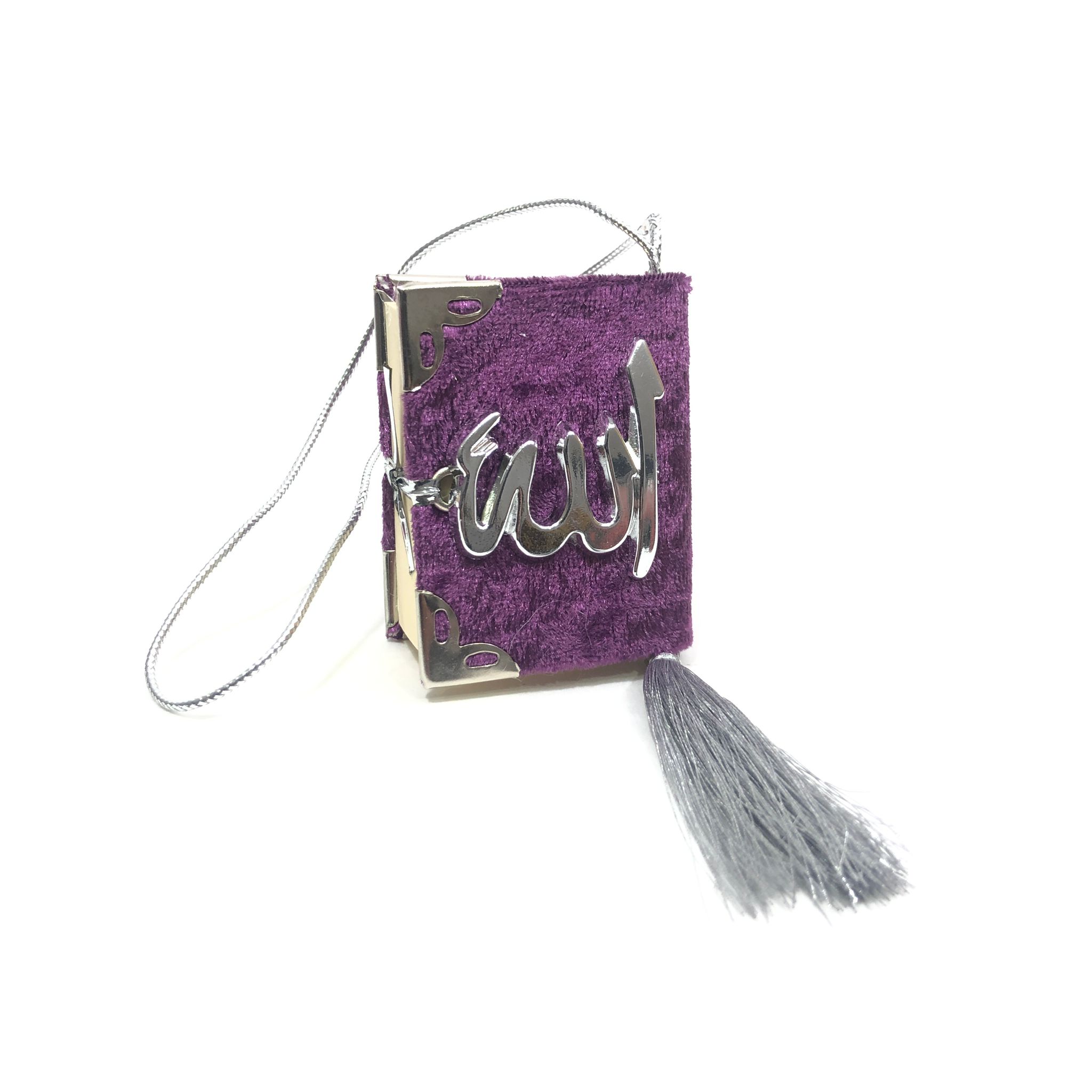 Kadife Kaplı Gümüş Lafızlı Tam Mini Kuran-ı Kerim Oto Süs 10'lu Mürdüm