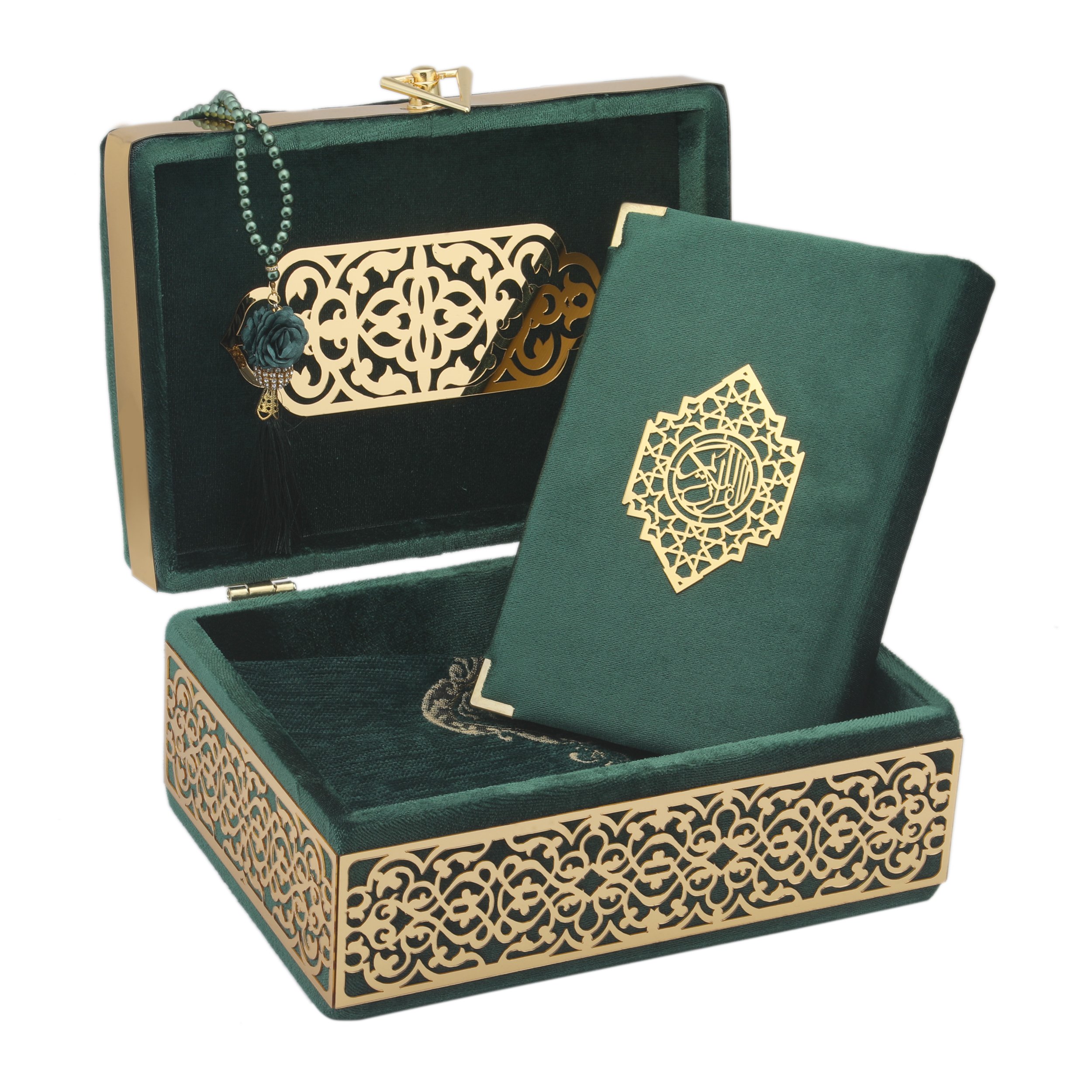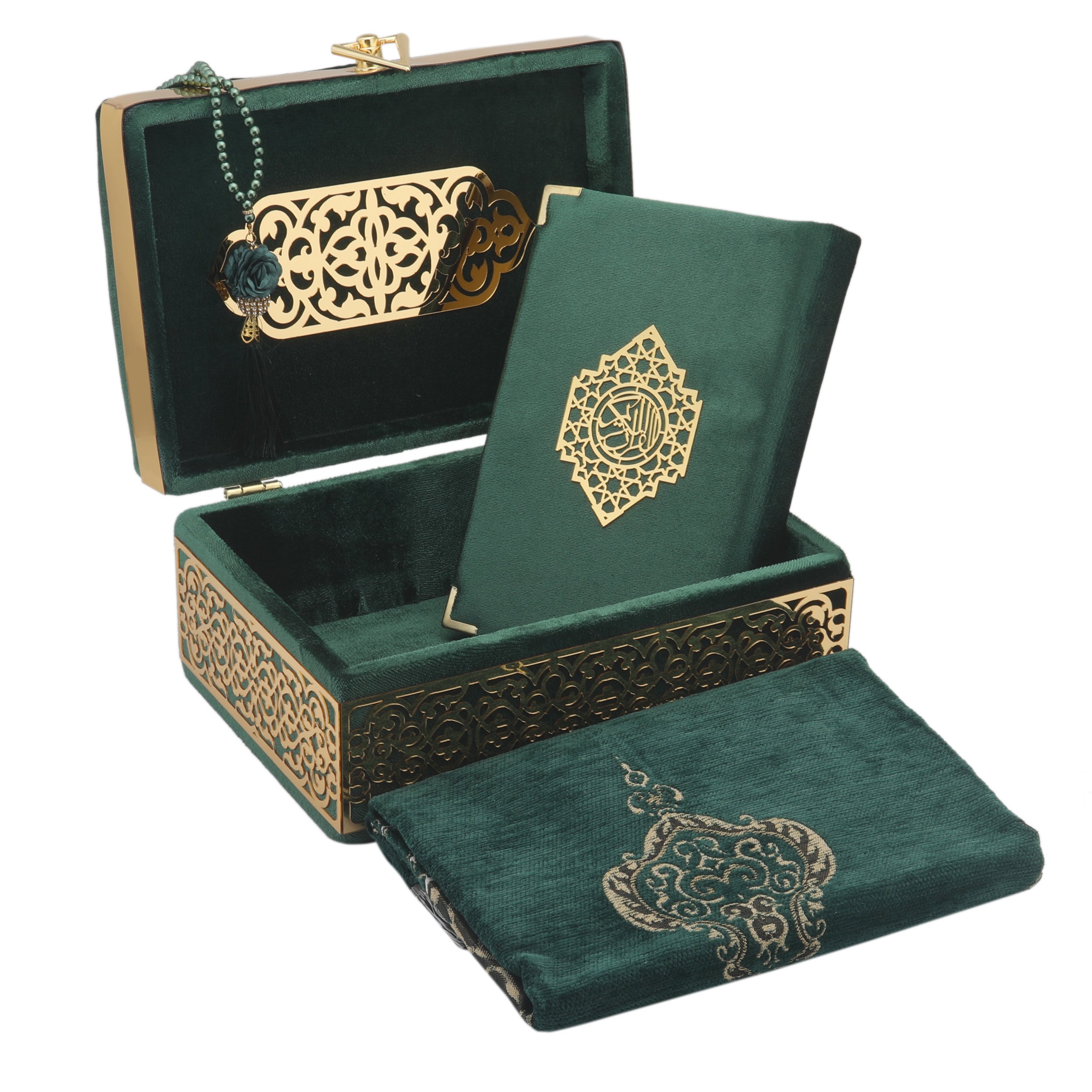 Hediyelik Kuran-ı Kerim Seccade Tesbih Sandık Seti Yeşil