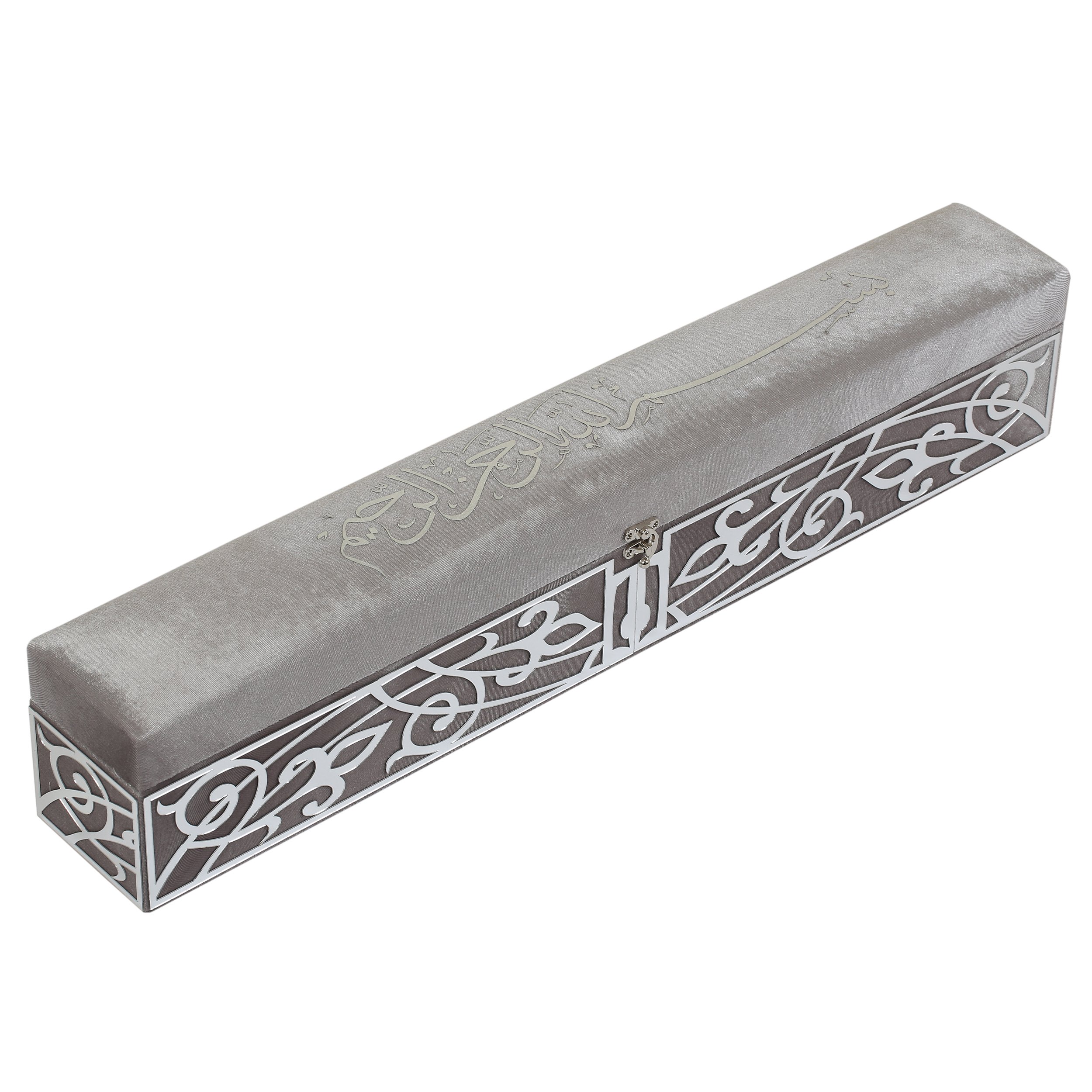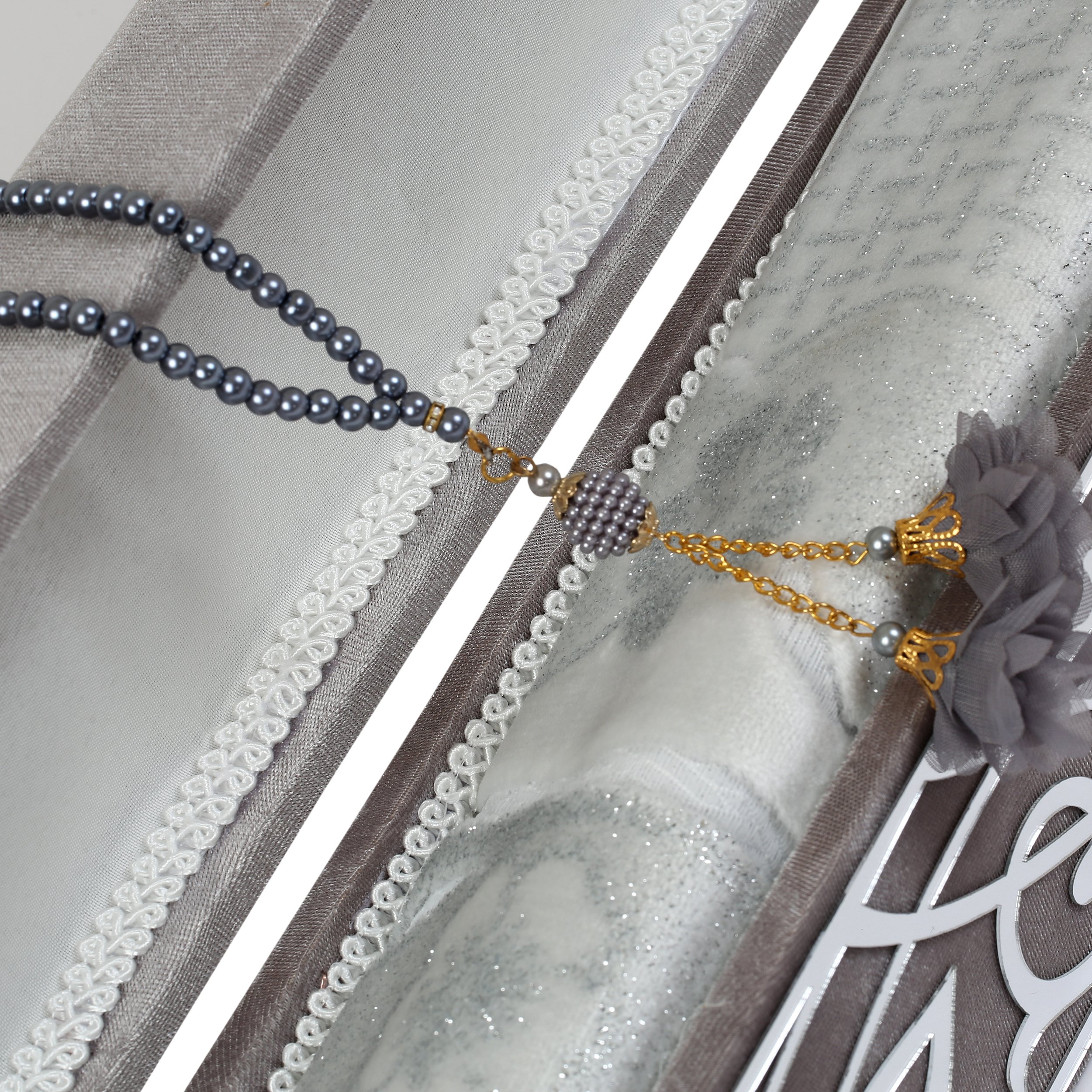Kadife Pleksi Sandıklı Lüks Seccade Tesbih Seti Gri