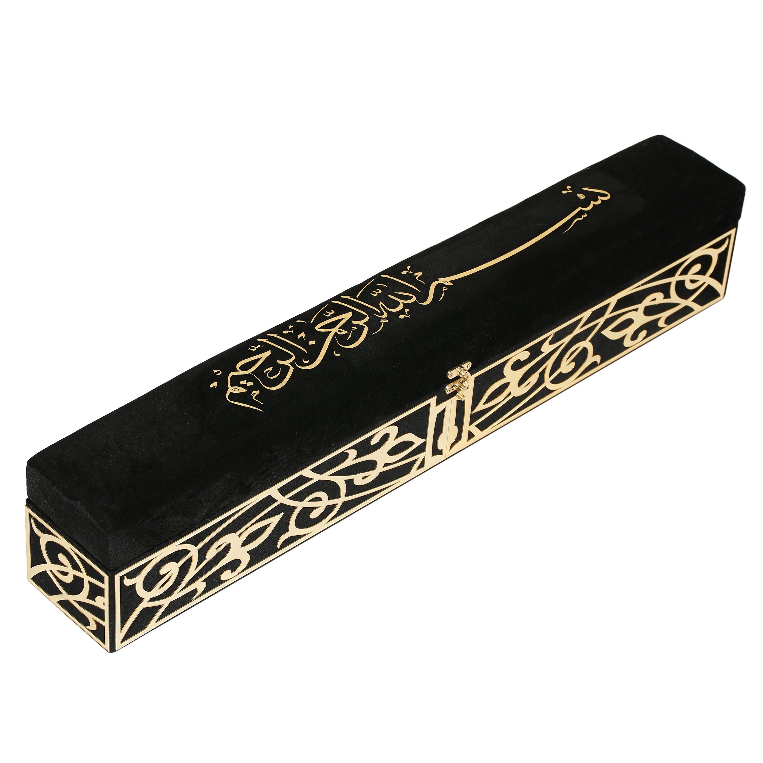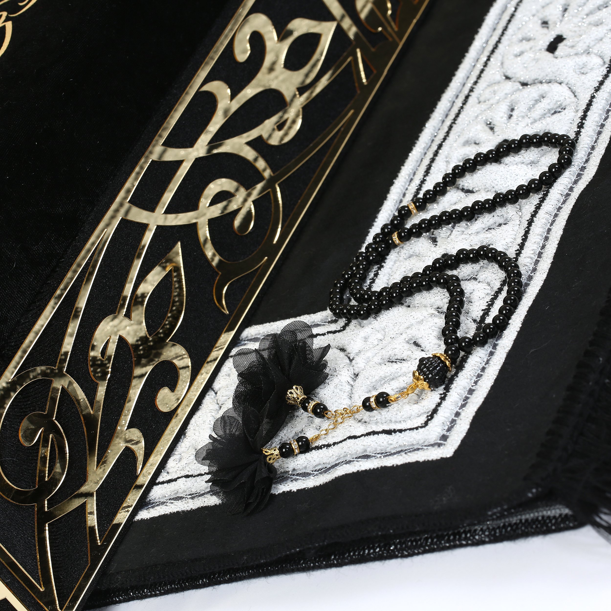 Kadife Pleksi Sandıklı Lüks Seccade Tesbih Seti Siyah