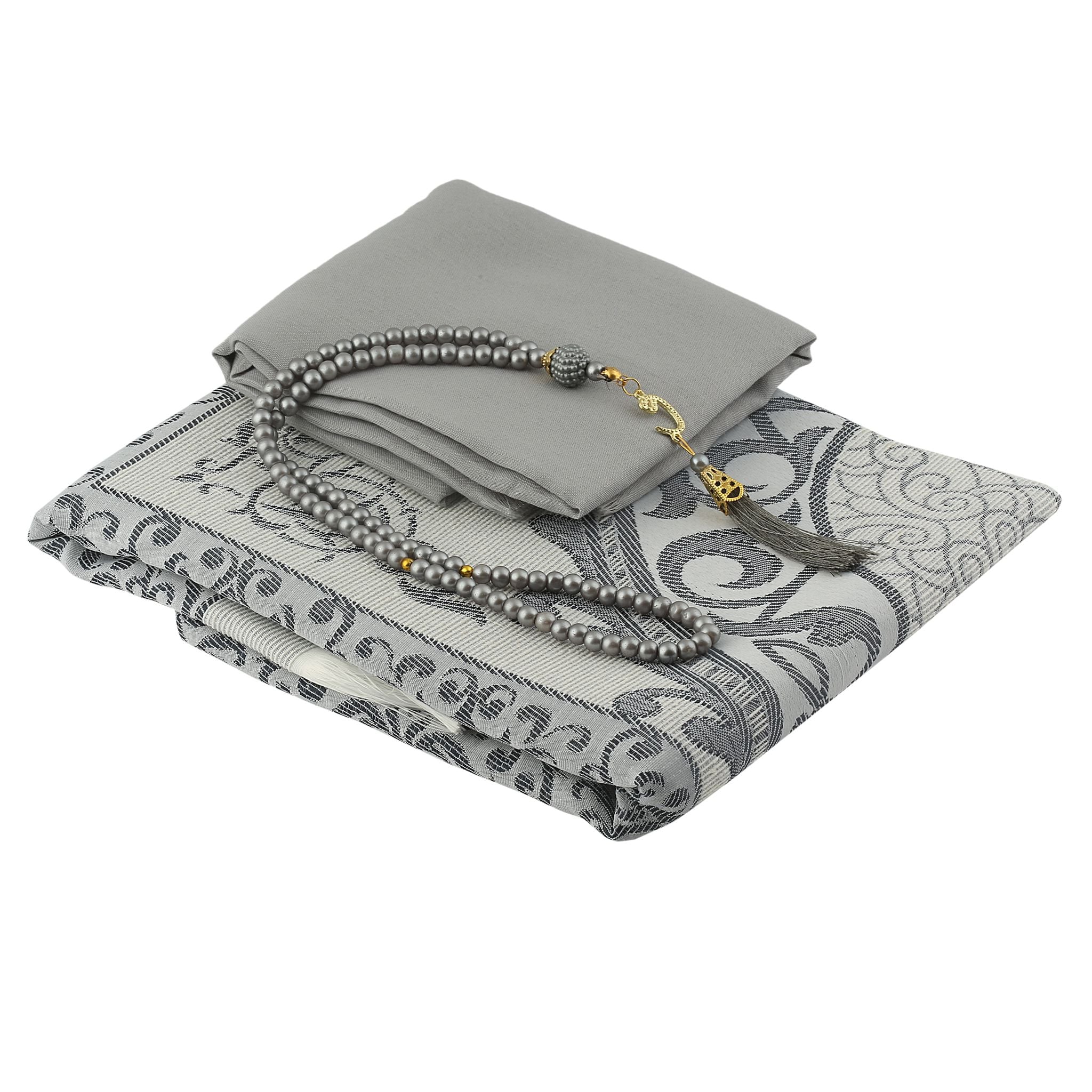 Kadınlara Özel Seccade Eşarp Tesbih Hac Ve Umre Seti Gri