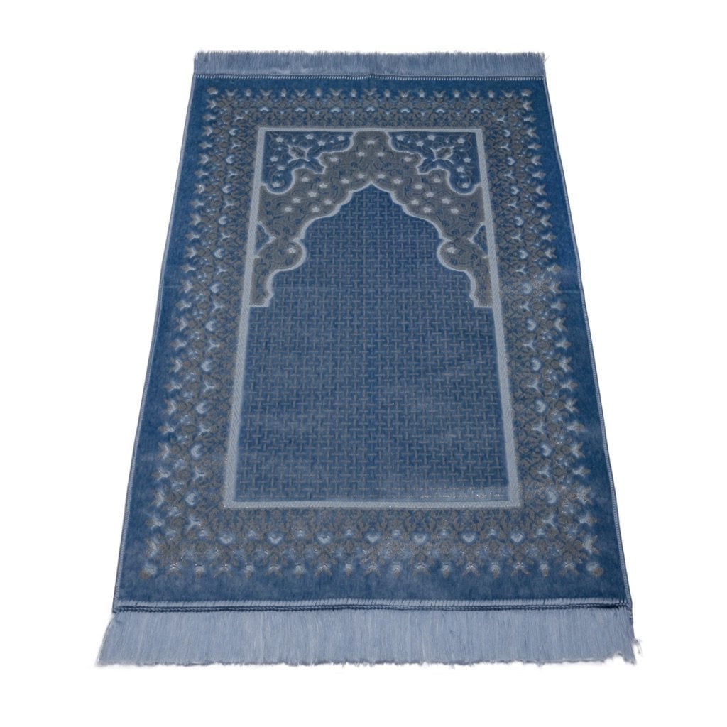 Lüks Kadife Simli Seccade Mavi
