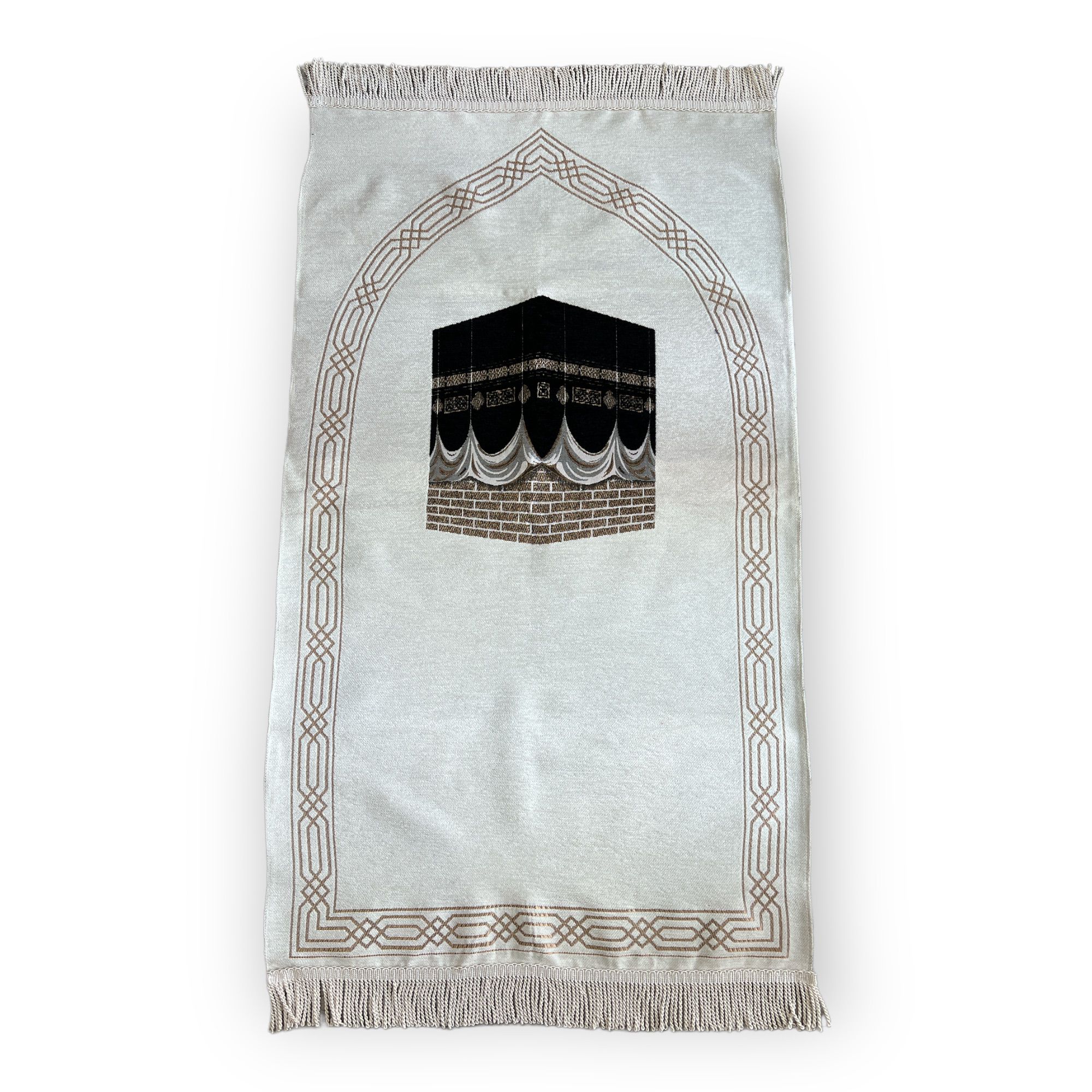 - Seccadenin üzerinde kabe deseni bulunmaktadır ayet içermez. Namaz kılınmasına engel değildir.