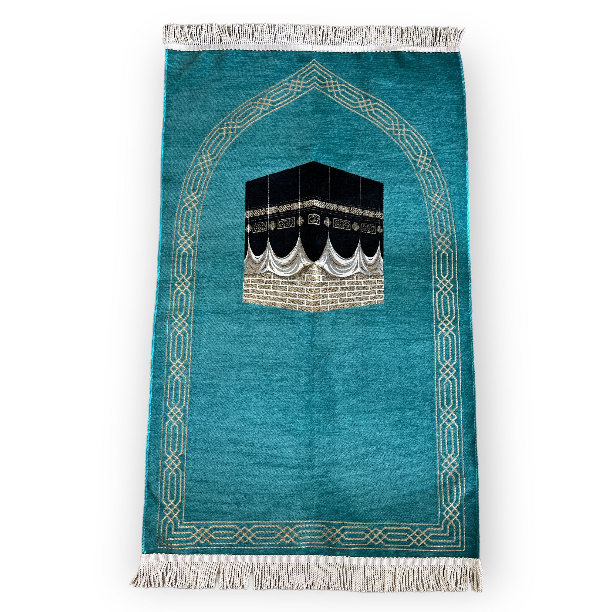 Lüks Saçaklı Kabeli Şönil Seccade Turkuaz