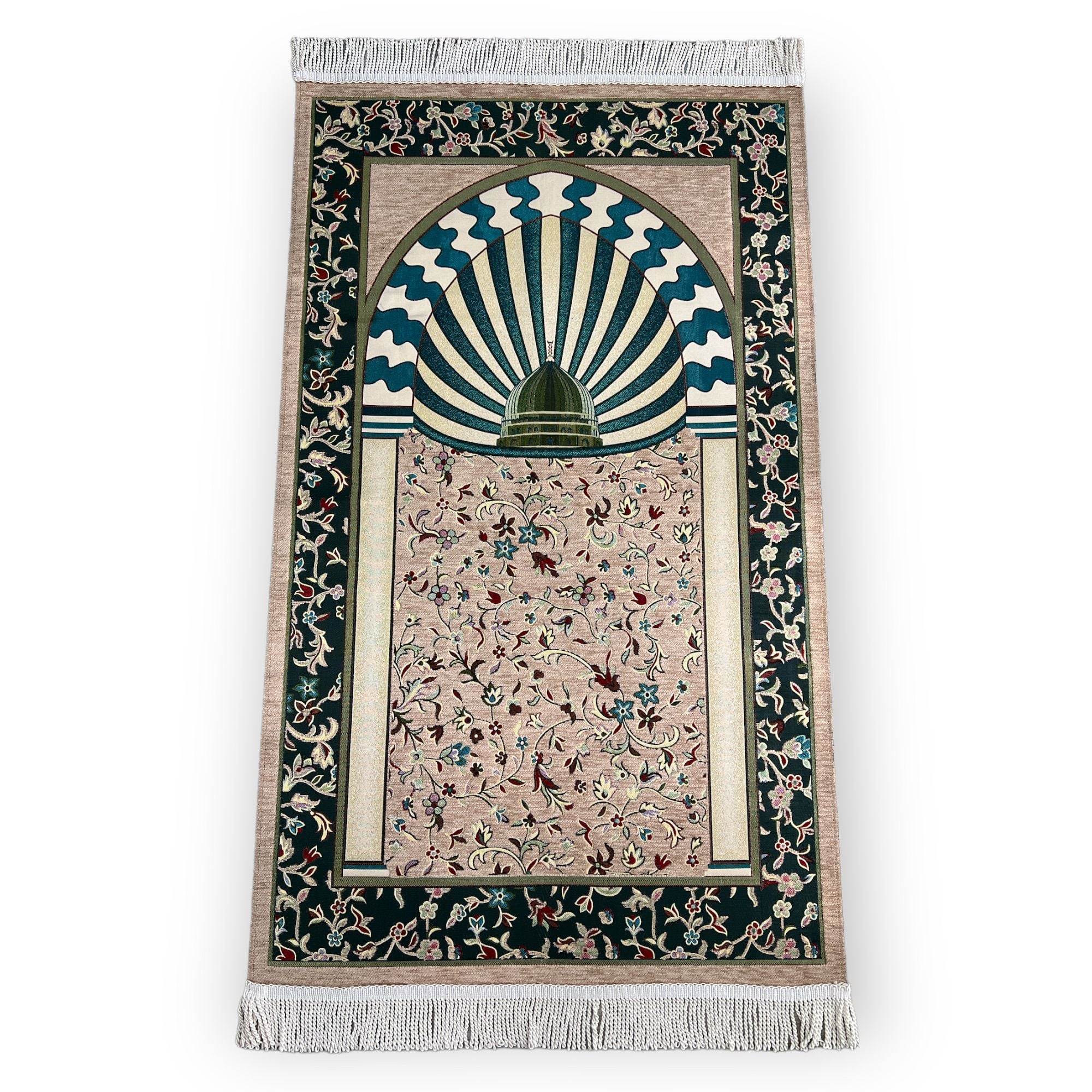 Lüks Saçaklı Şönil Kubbeli Ravza Model Seccade Bej