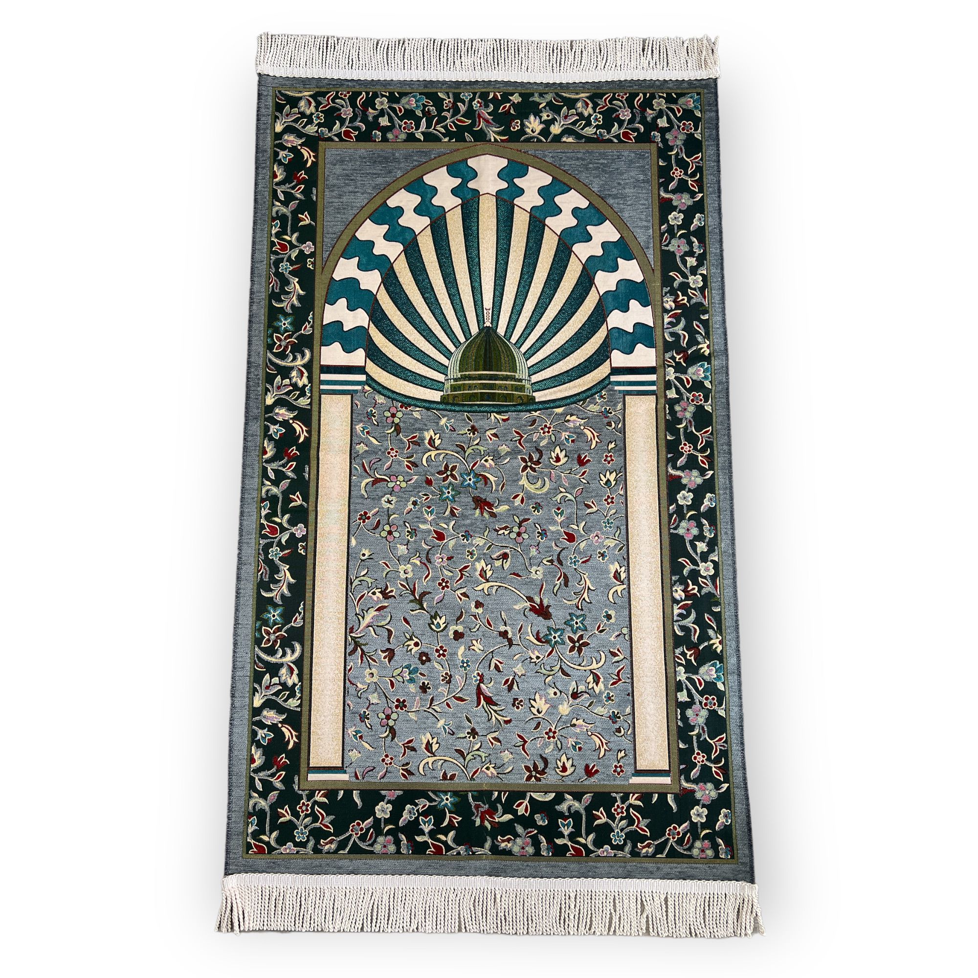 Lüks Saçaklı Şönil Kubbeli Ravza Model Seccade Gri